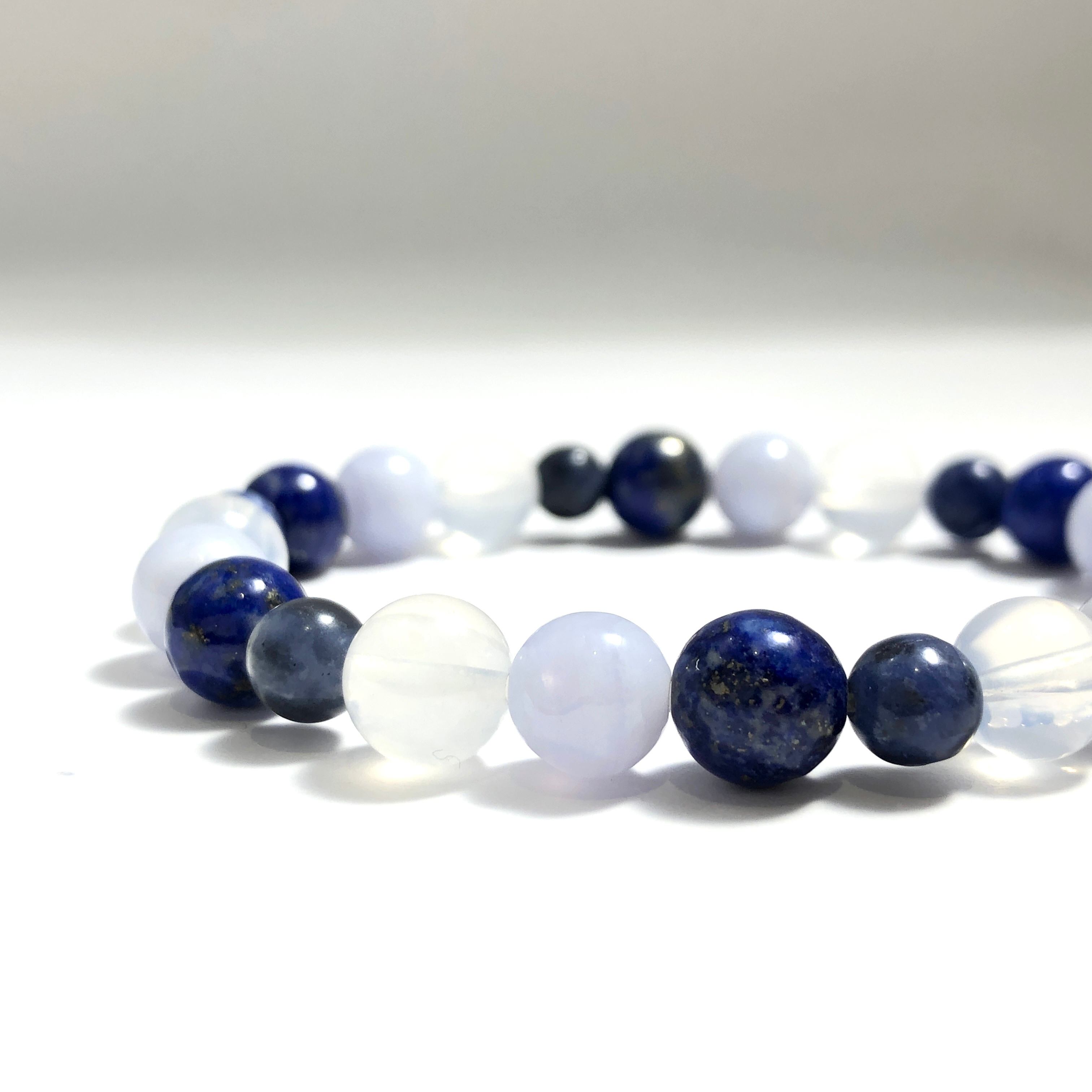 ■使用している石 ラピスラズリ、ブルーレースアゲート、ソーダライト、ミルキークォーツ