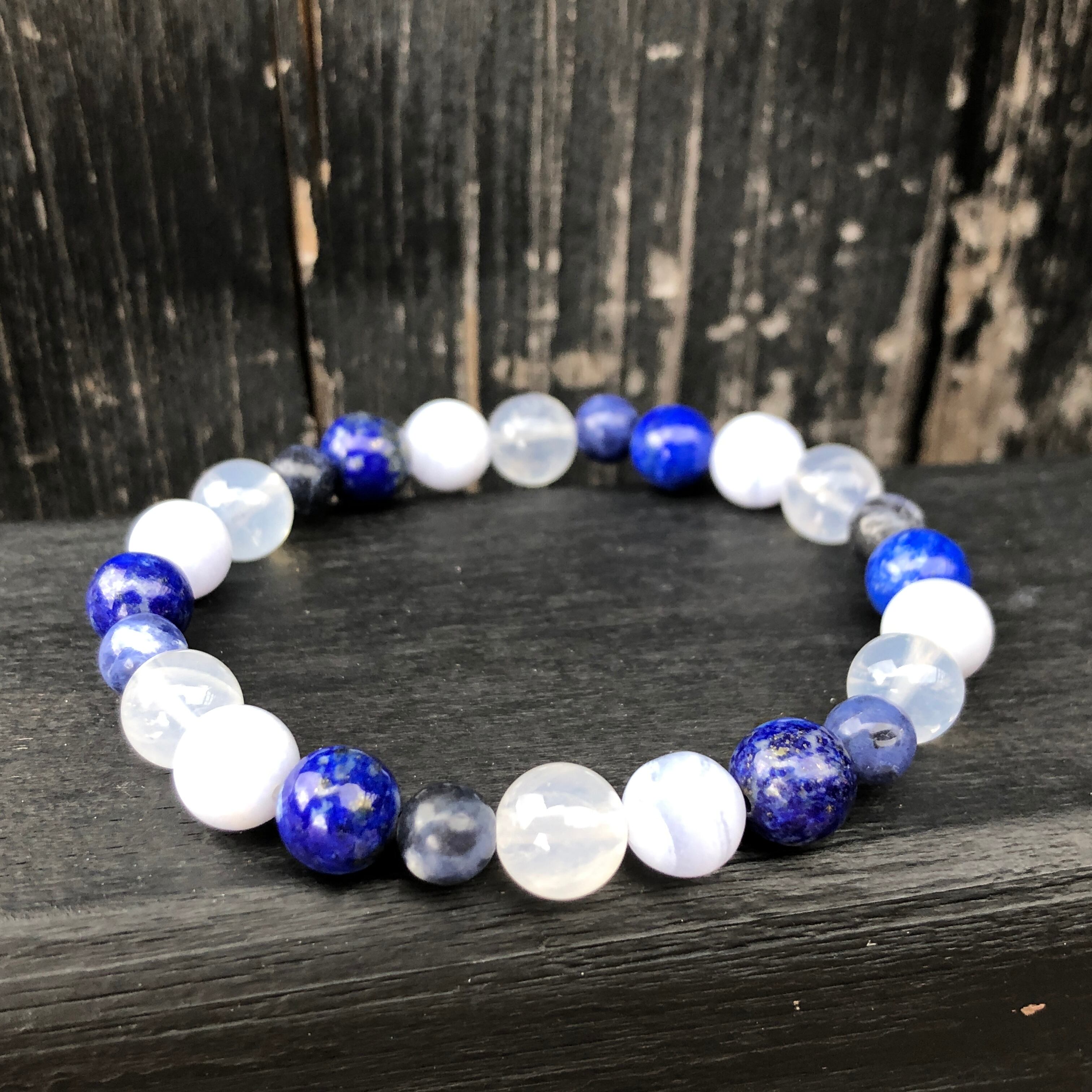 ラピスラズリと様々な天然石が入ったブレスレットです。