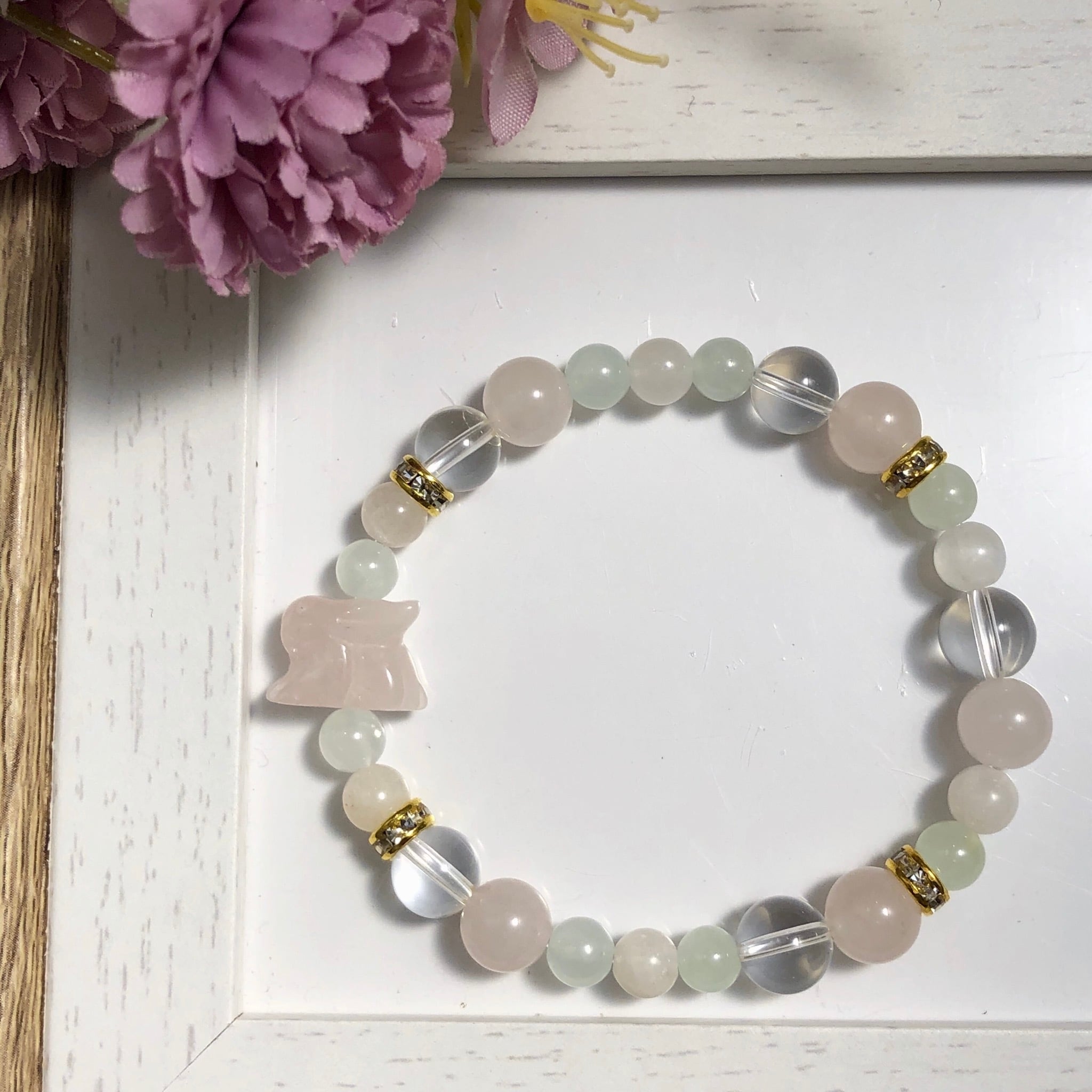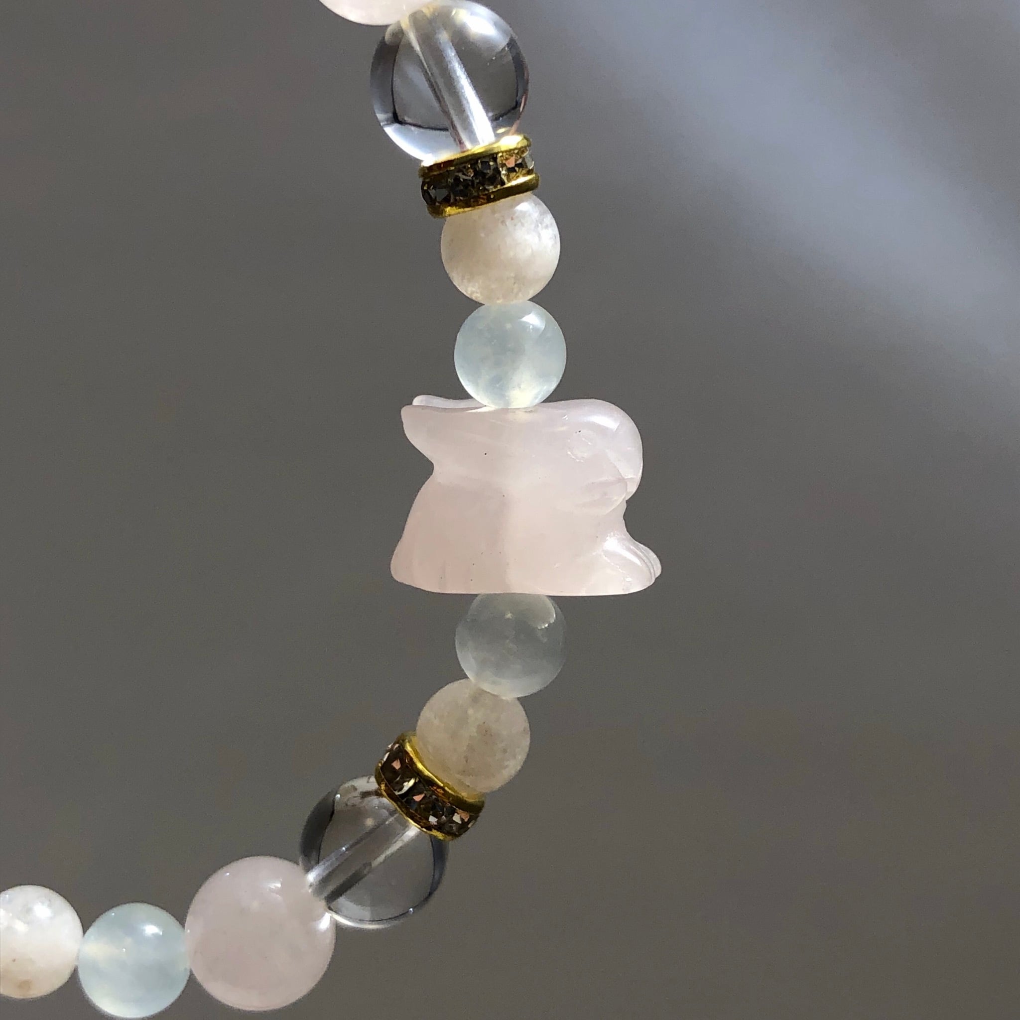 【h256d】天然石うさぎ入りブレスレット[ローズクォーツ]縁結び・恋愛成就・家庭円満