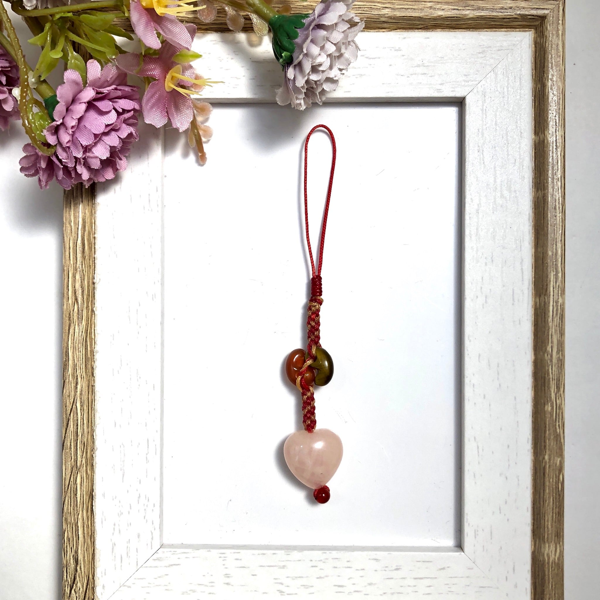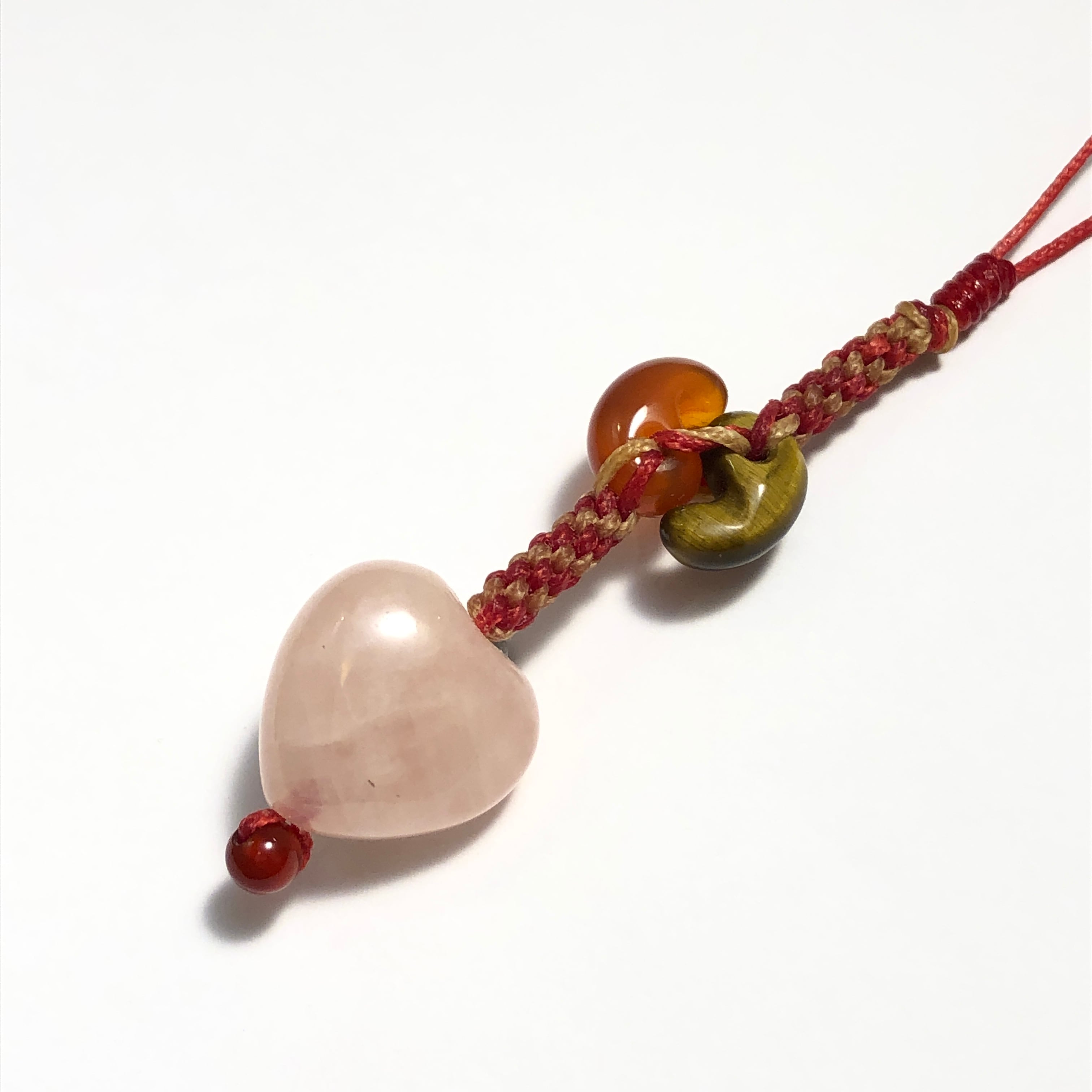 ■使用している石 ローズクォーツ(ハート)、赤めのう、タイガーアイ(勾玉)