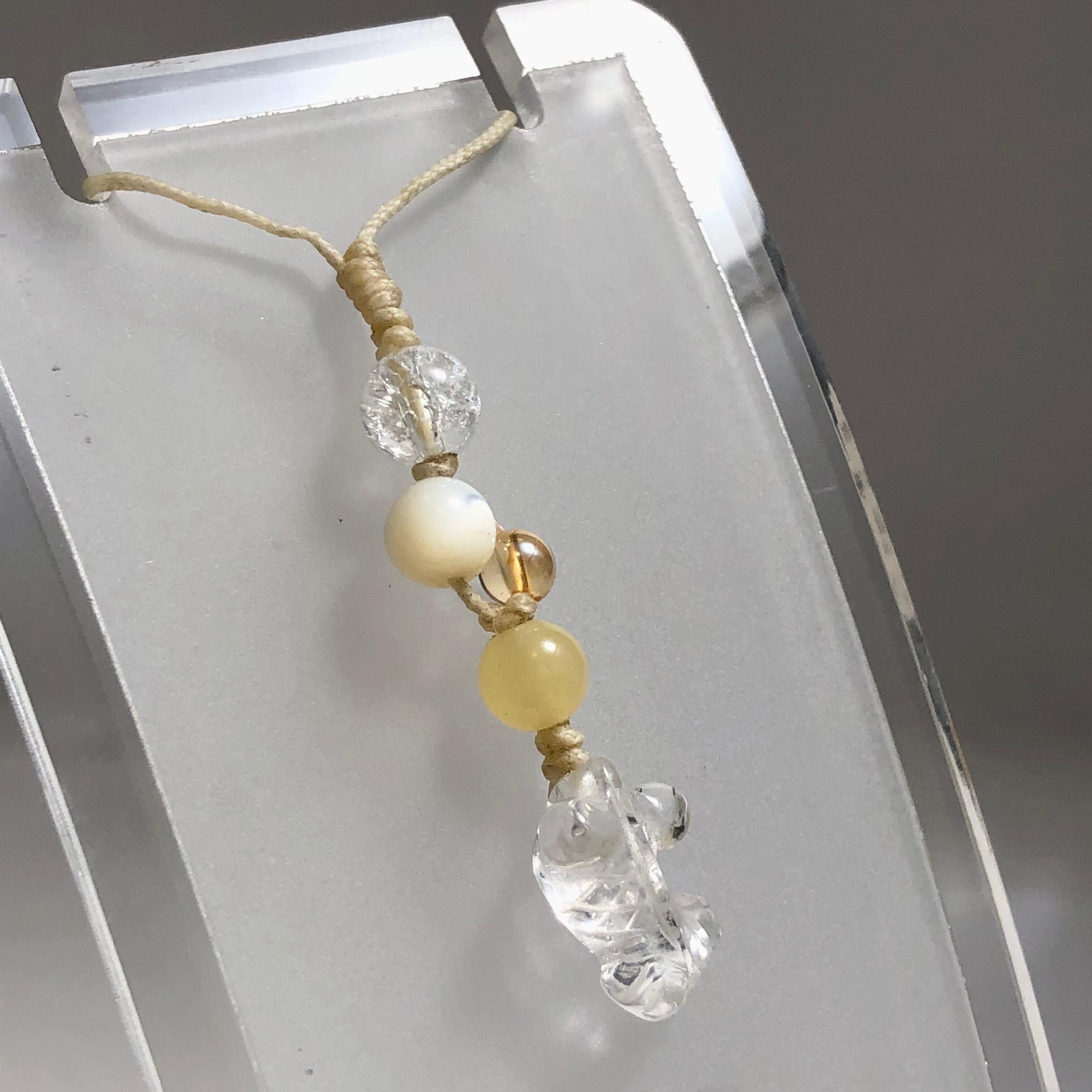 ■使用している石 水晶(金魚)、マザーオブパール、クラック水晶、ゴールデンオーラ、アラゴナイト