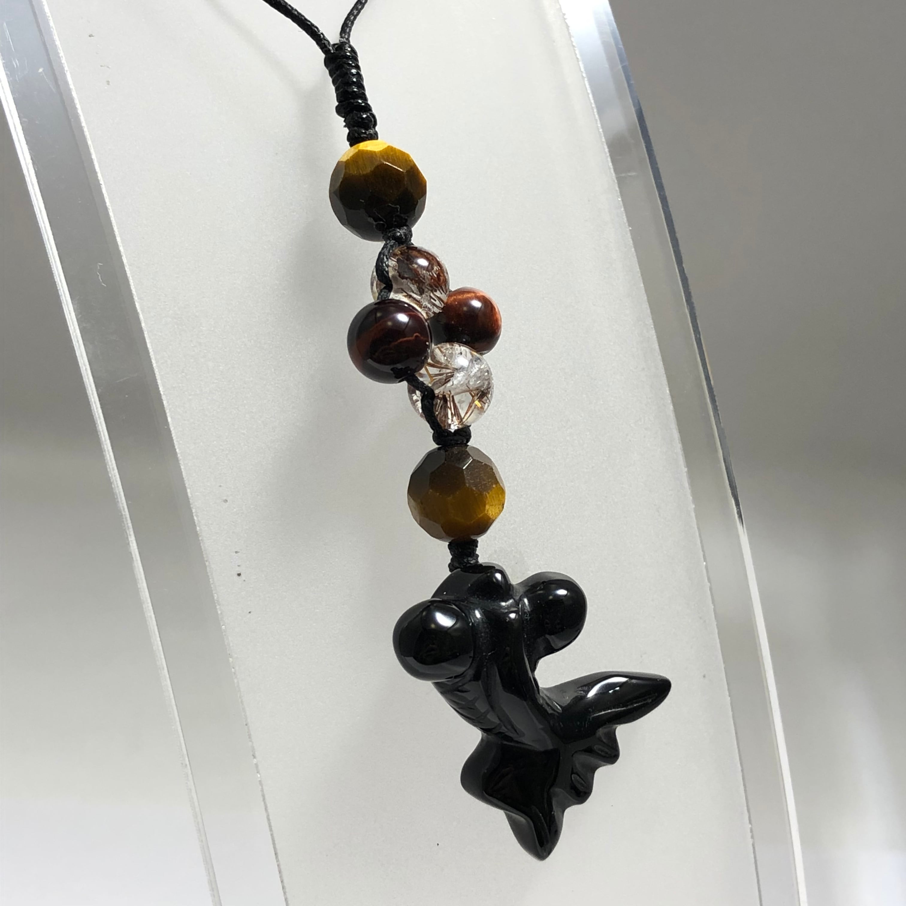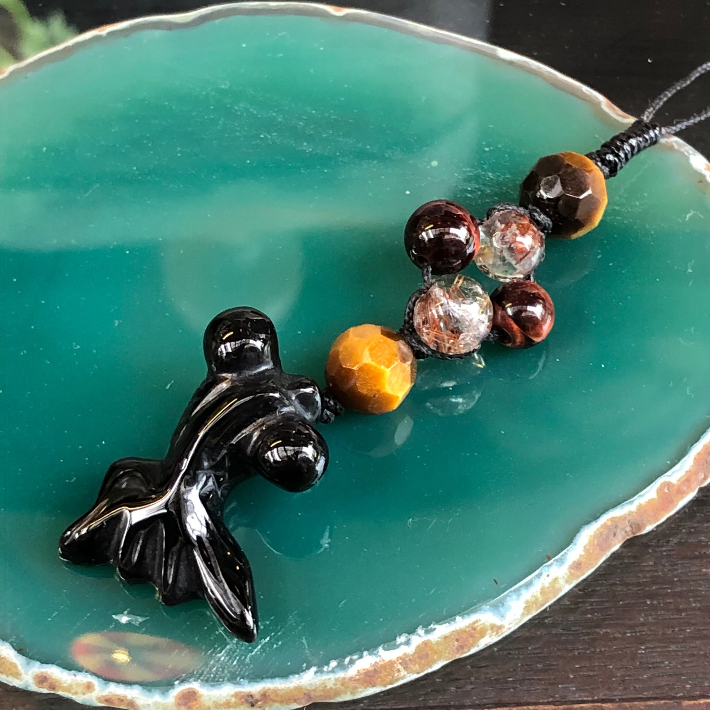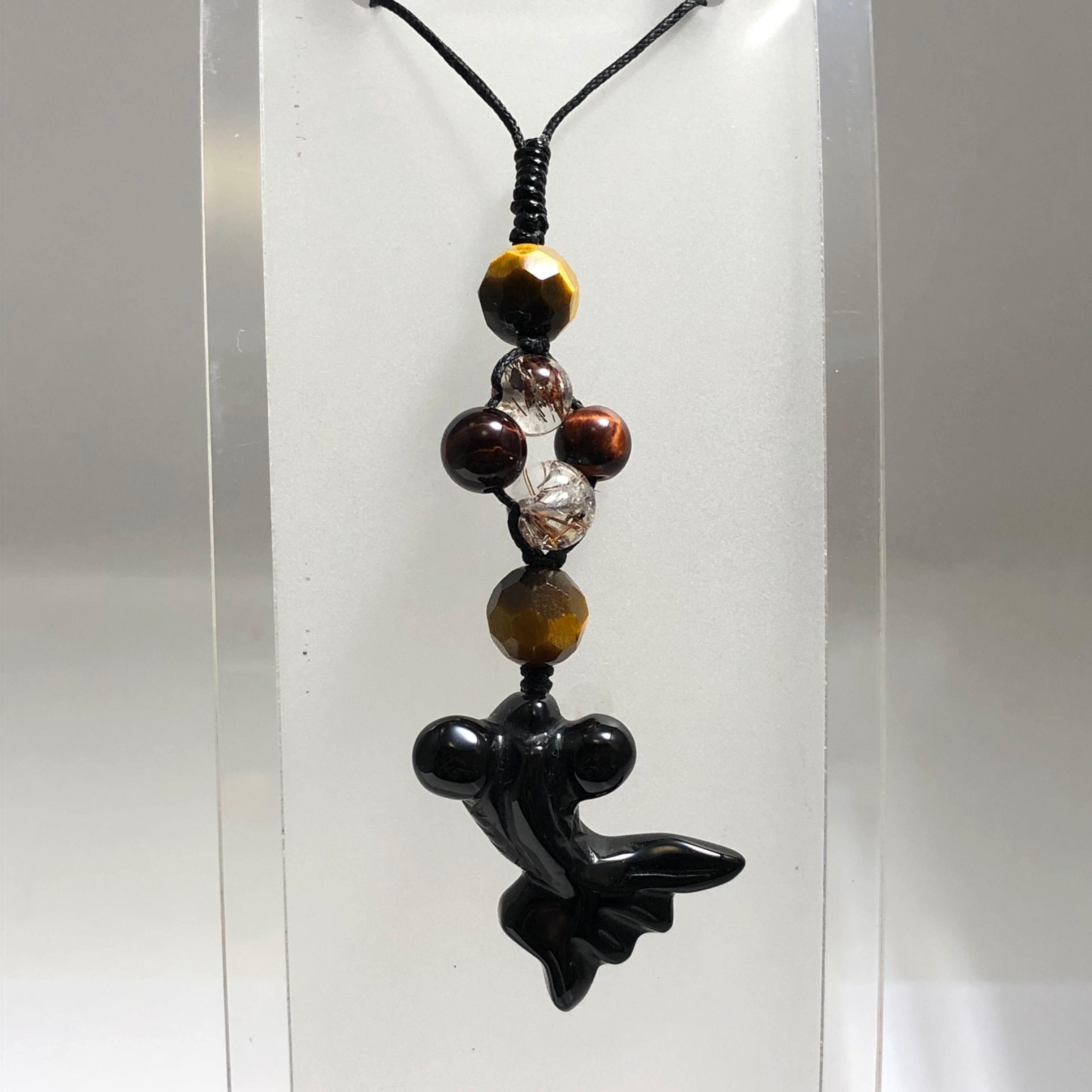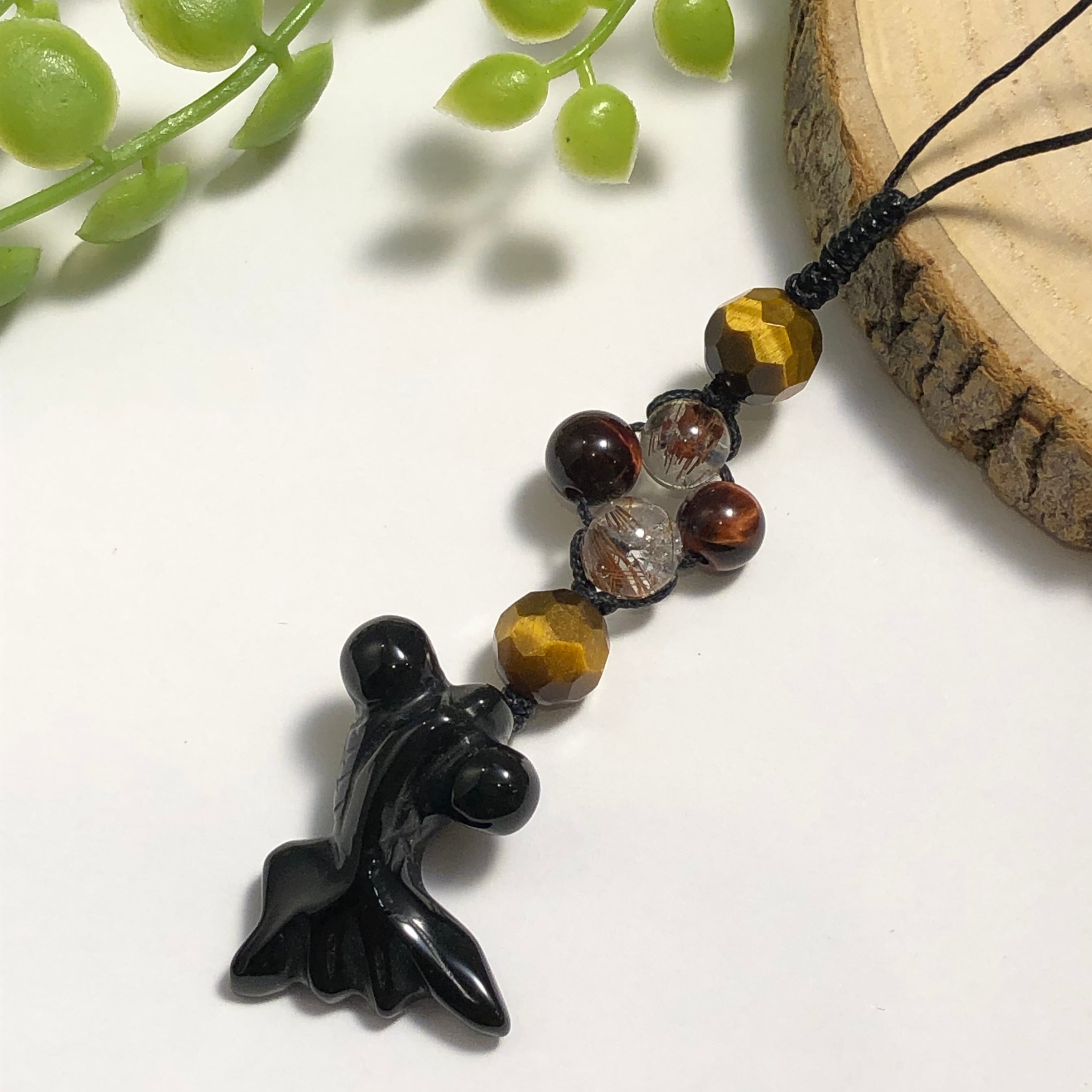 【h271d】天然石金魚ストラップ オニキス[潜在能力開花・厄除け]