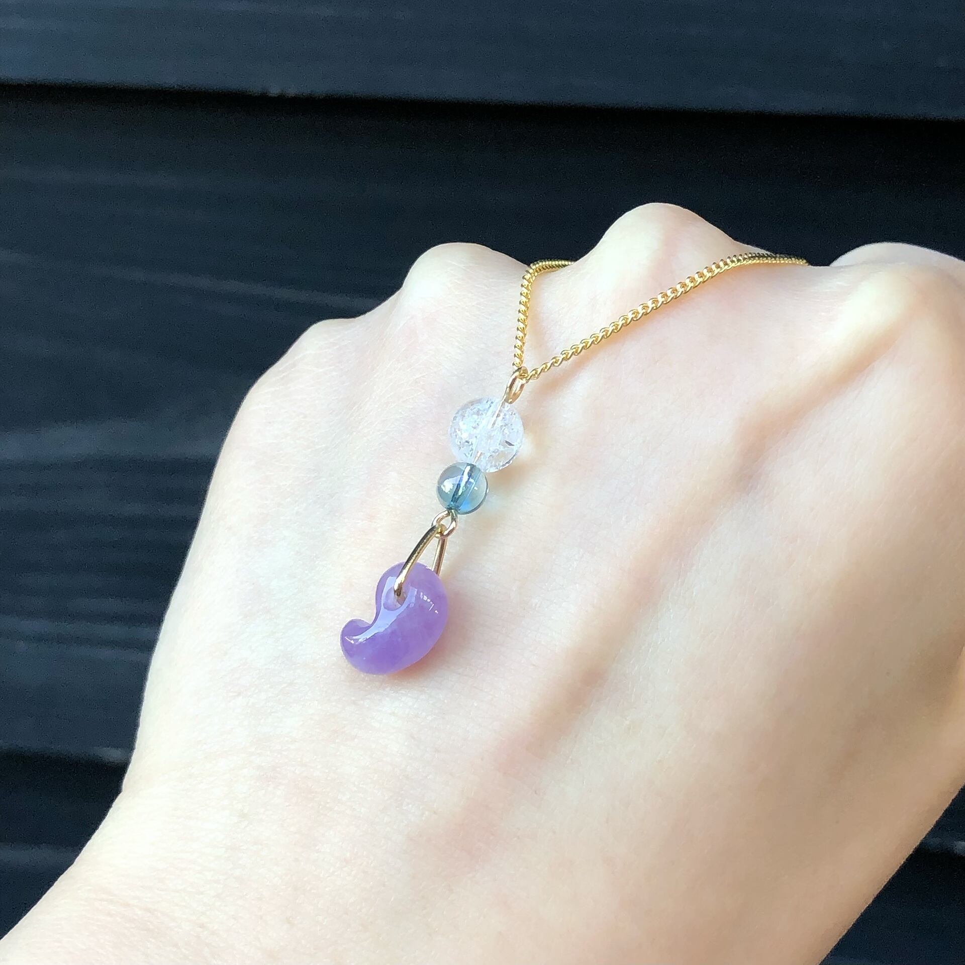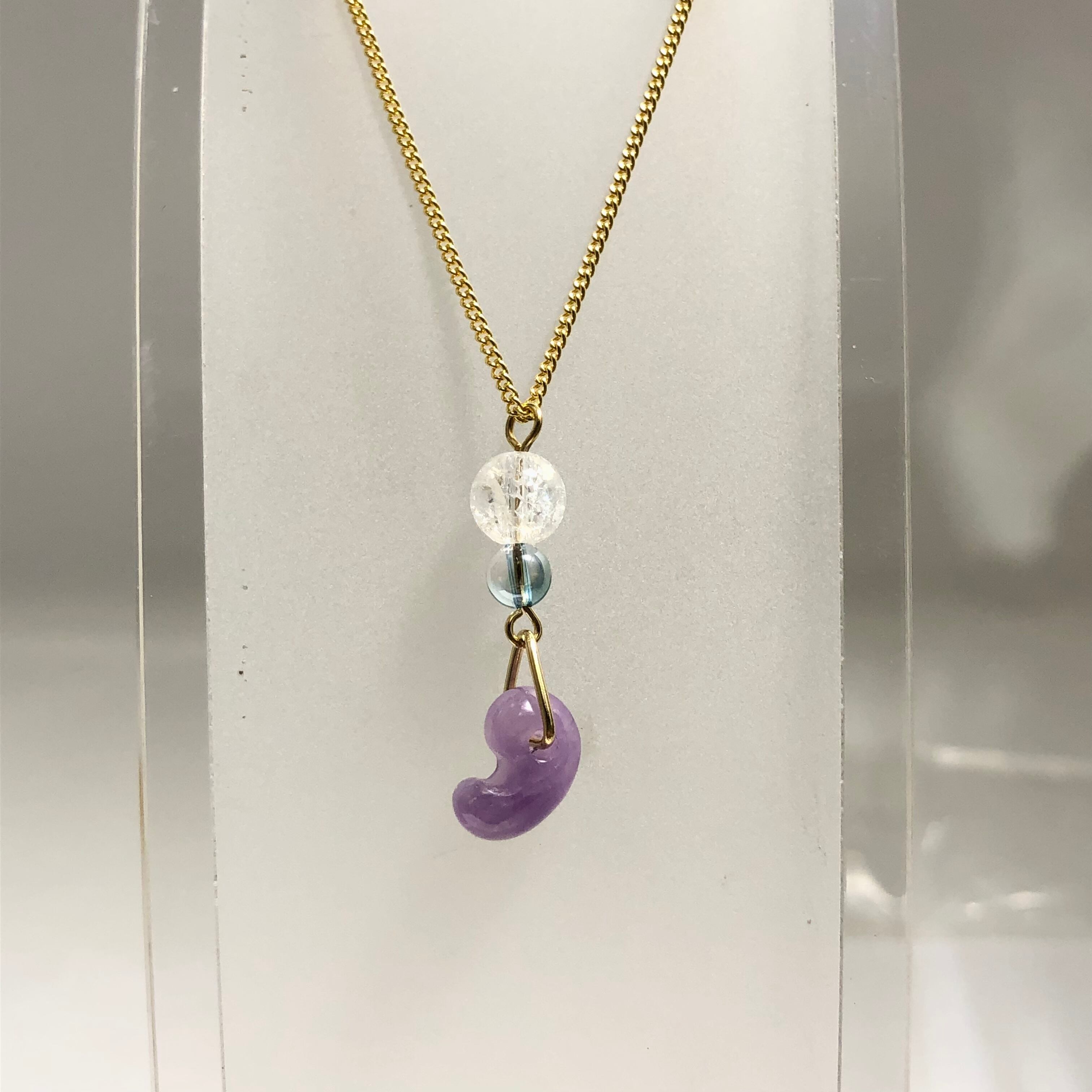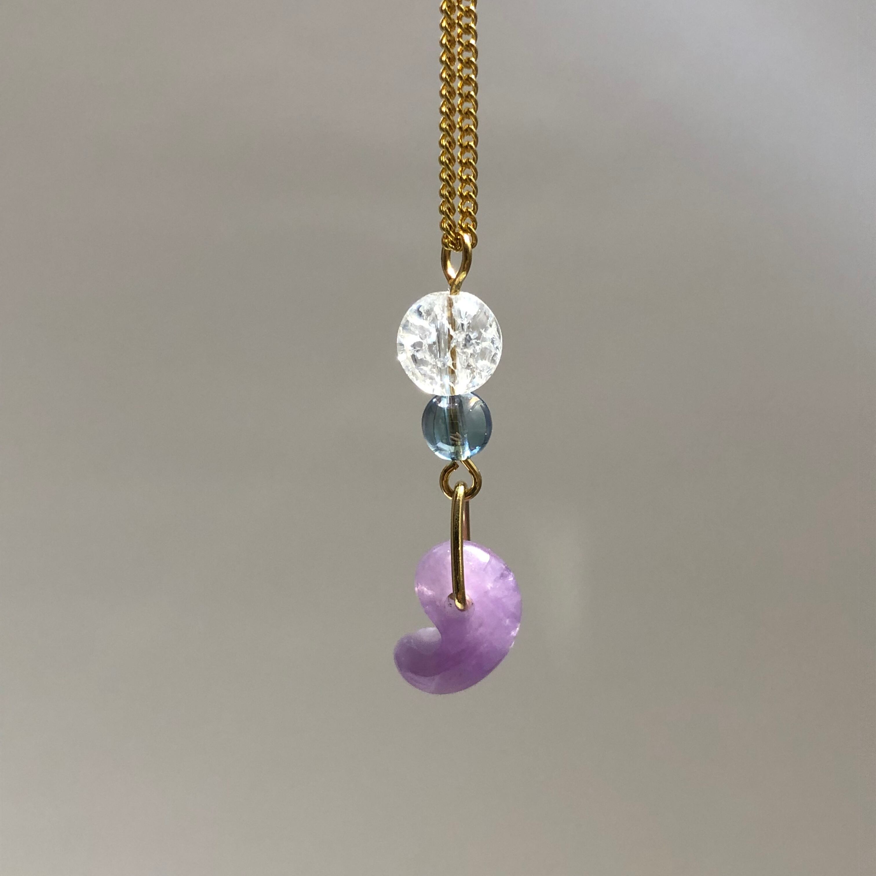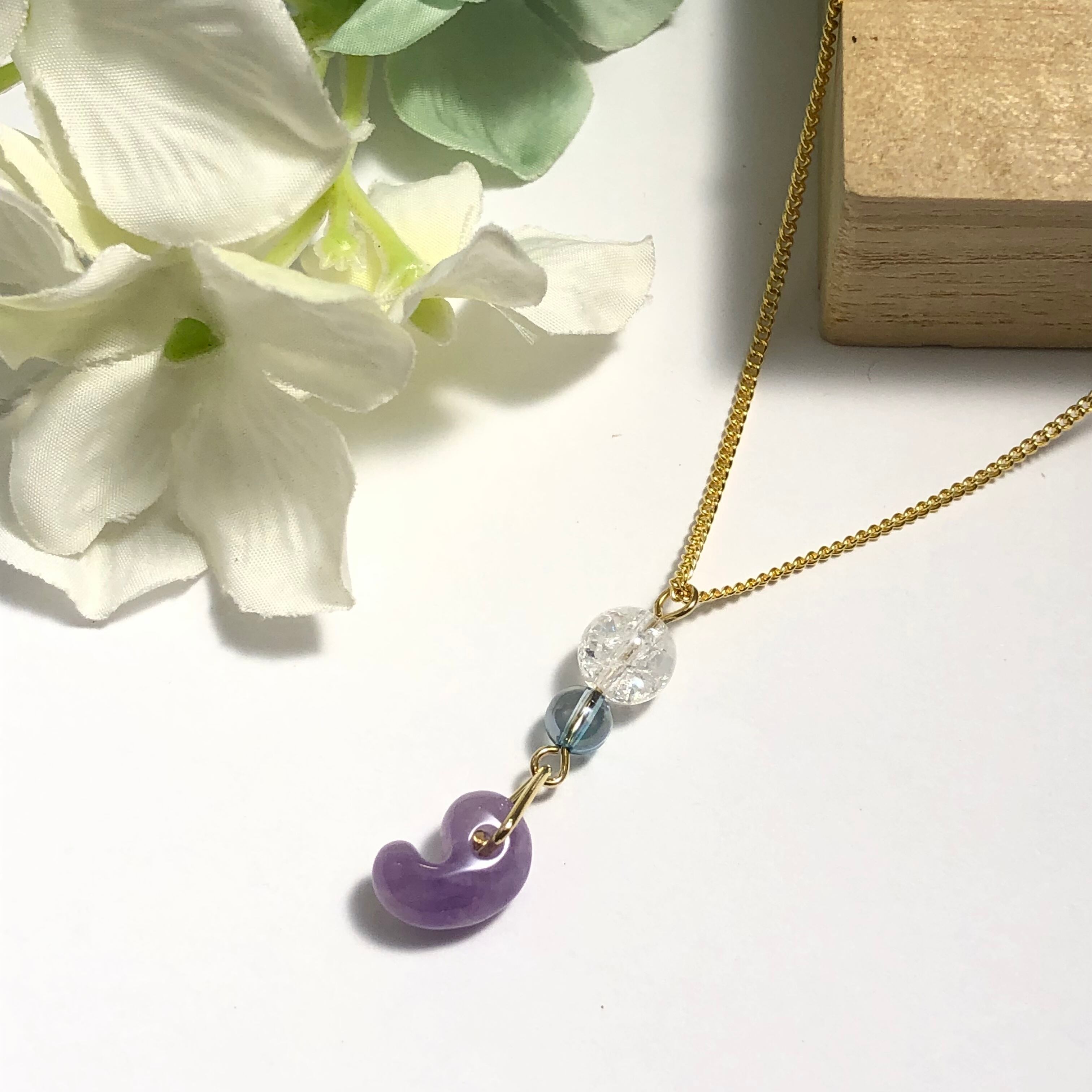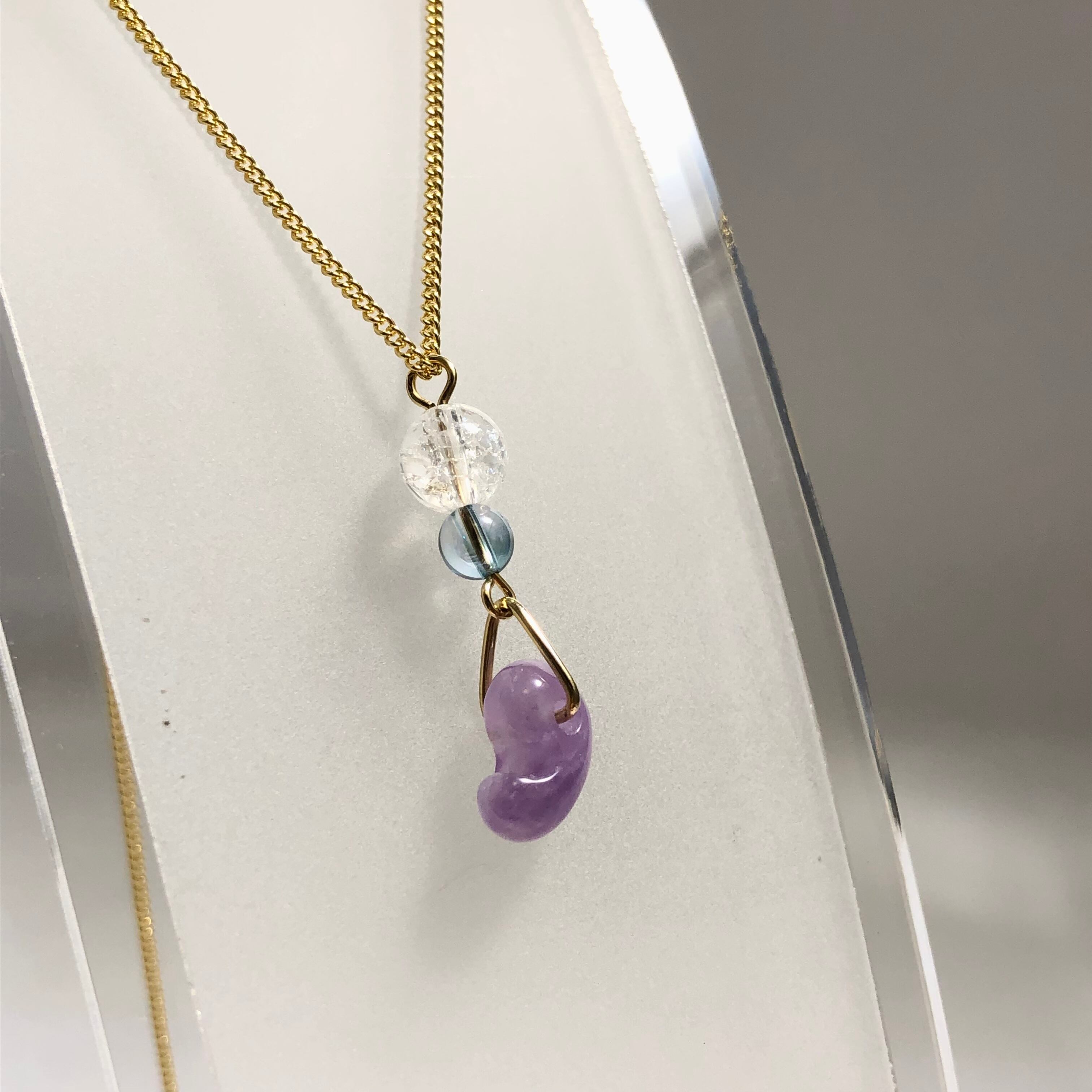そんなアメジストの勾玉と、透き通った水色のアクアオーラクォーツなどを組み合わせて爽やかなネックレスに仕上げました♡