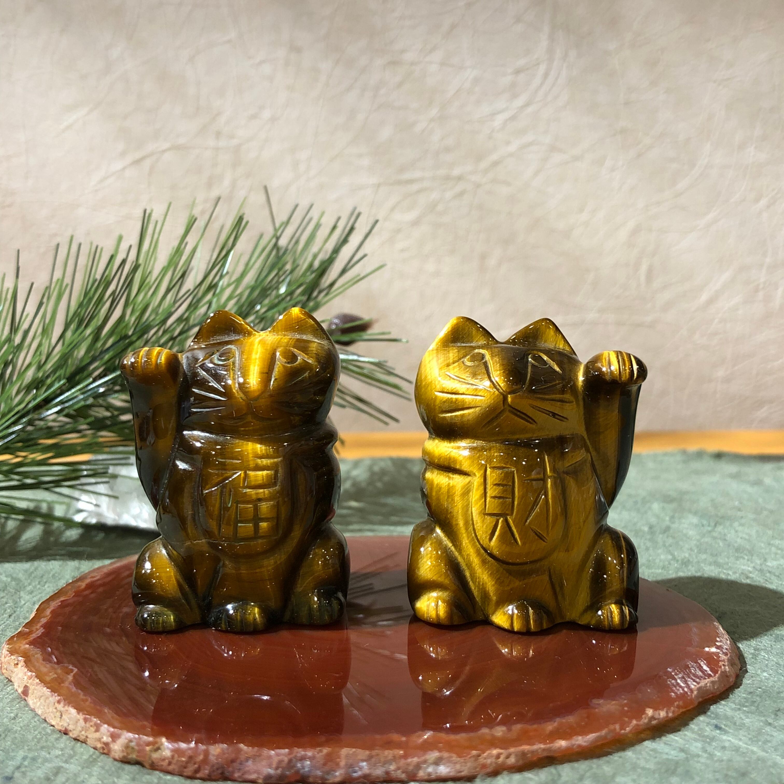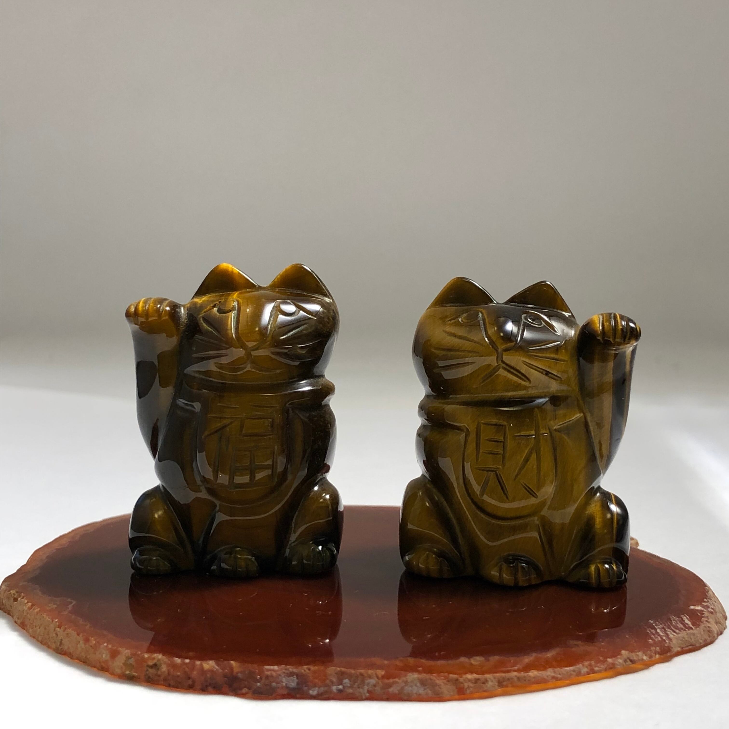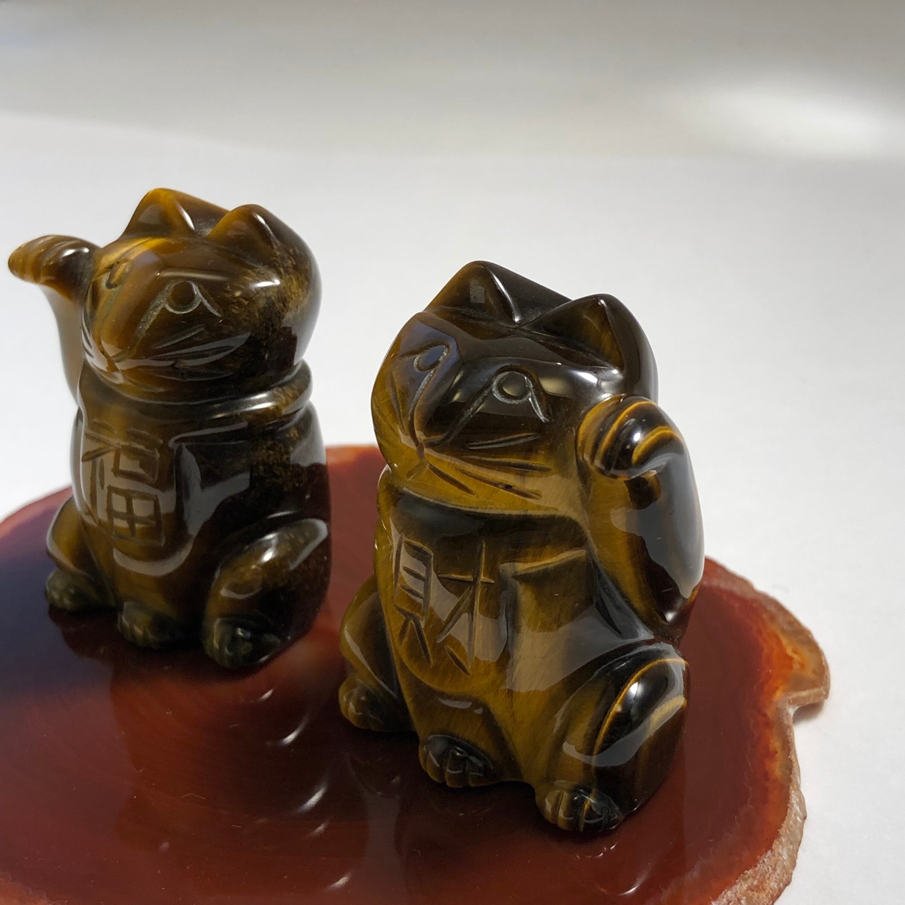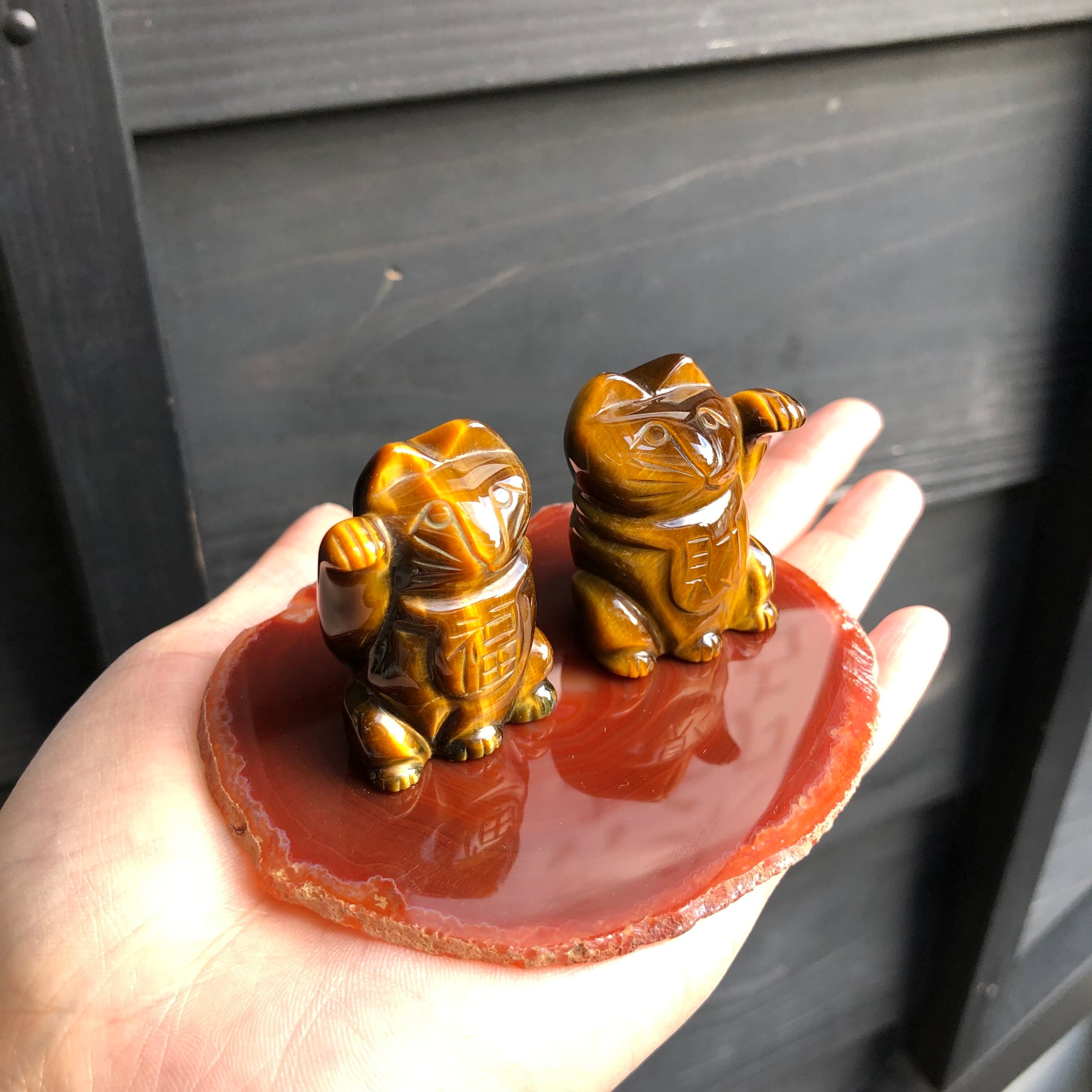 【h300d】招き猫 置き物 台座付き【タイガーアイ】
