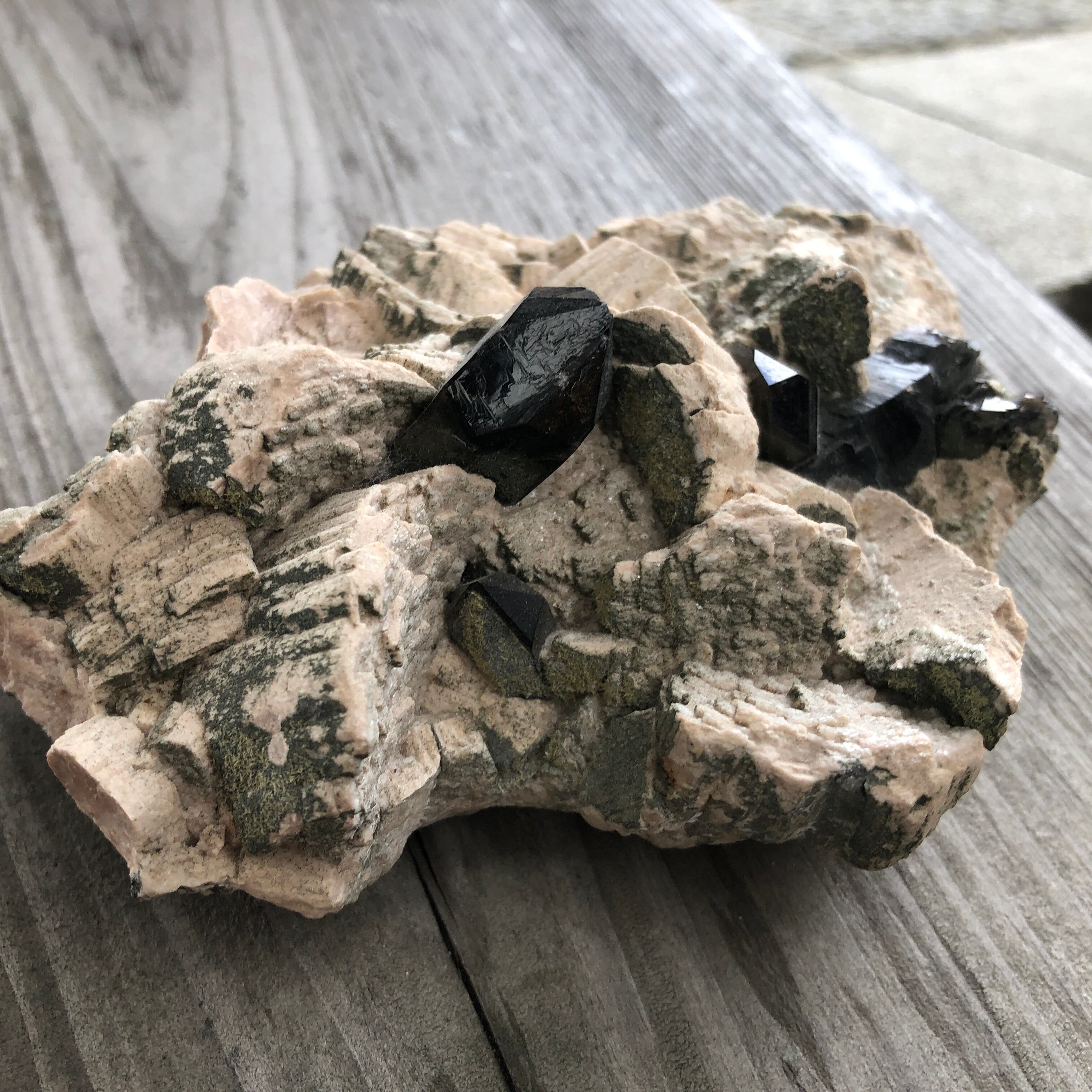 こちらの原石は、大地の荒々しさを表すような形や苔のような緑の粒、光を受けてキラキラ輝く様子などが大自然を表しているような原石です。