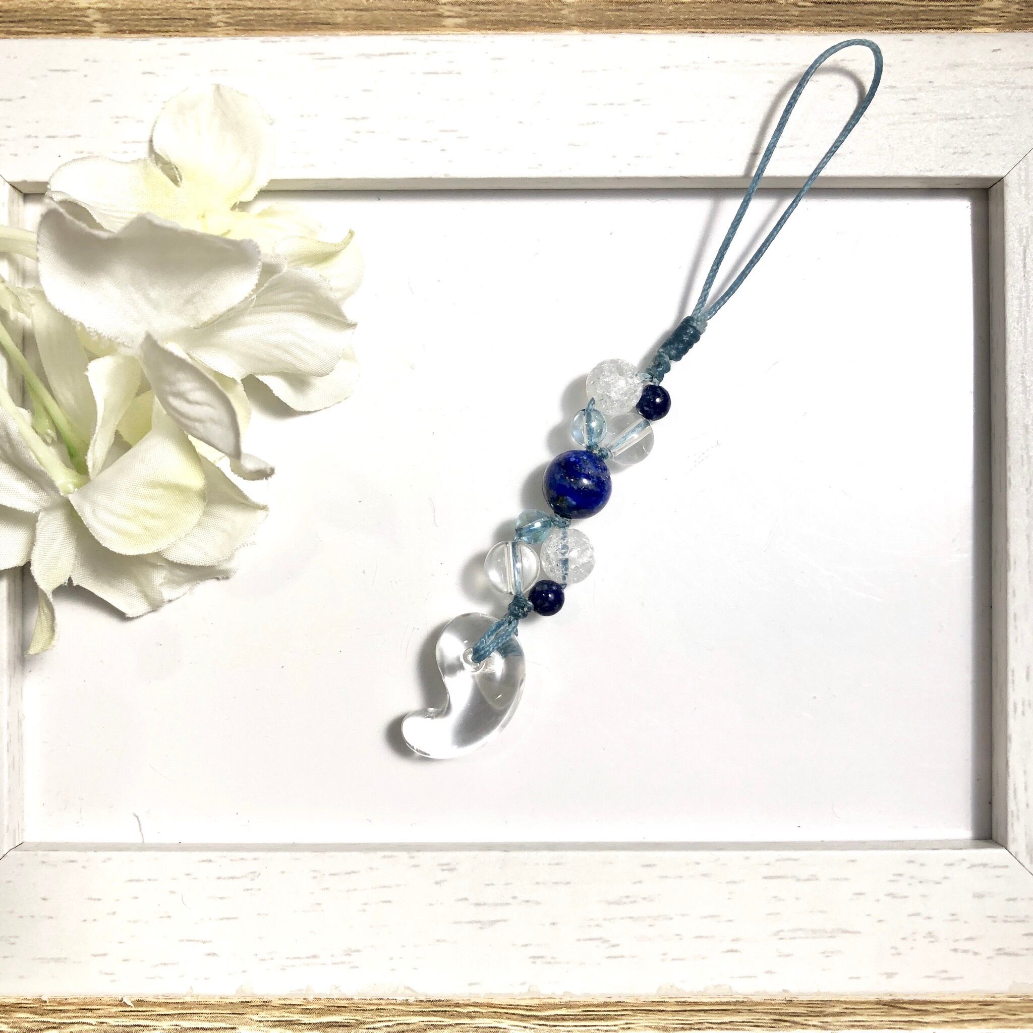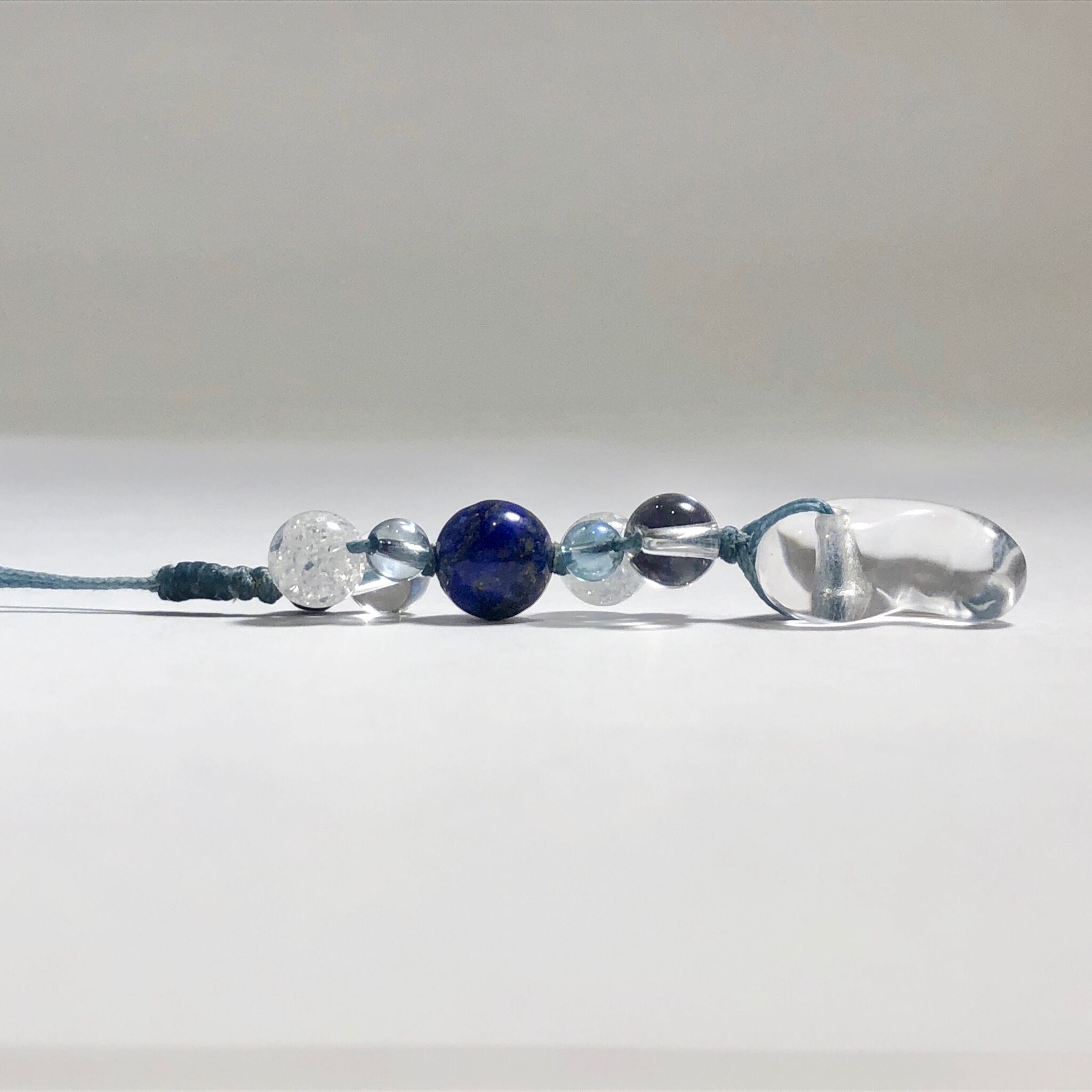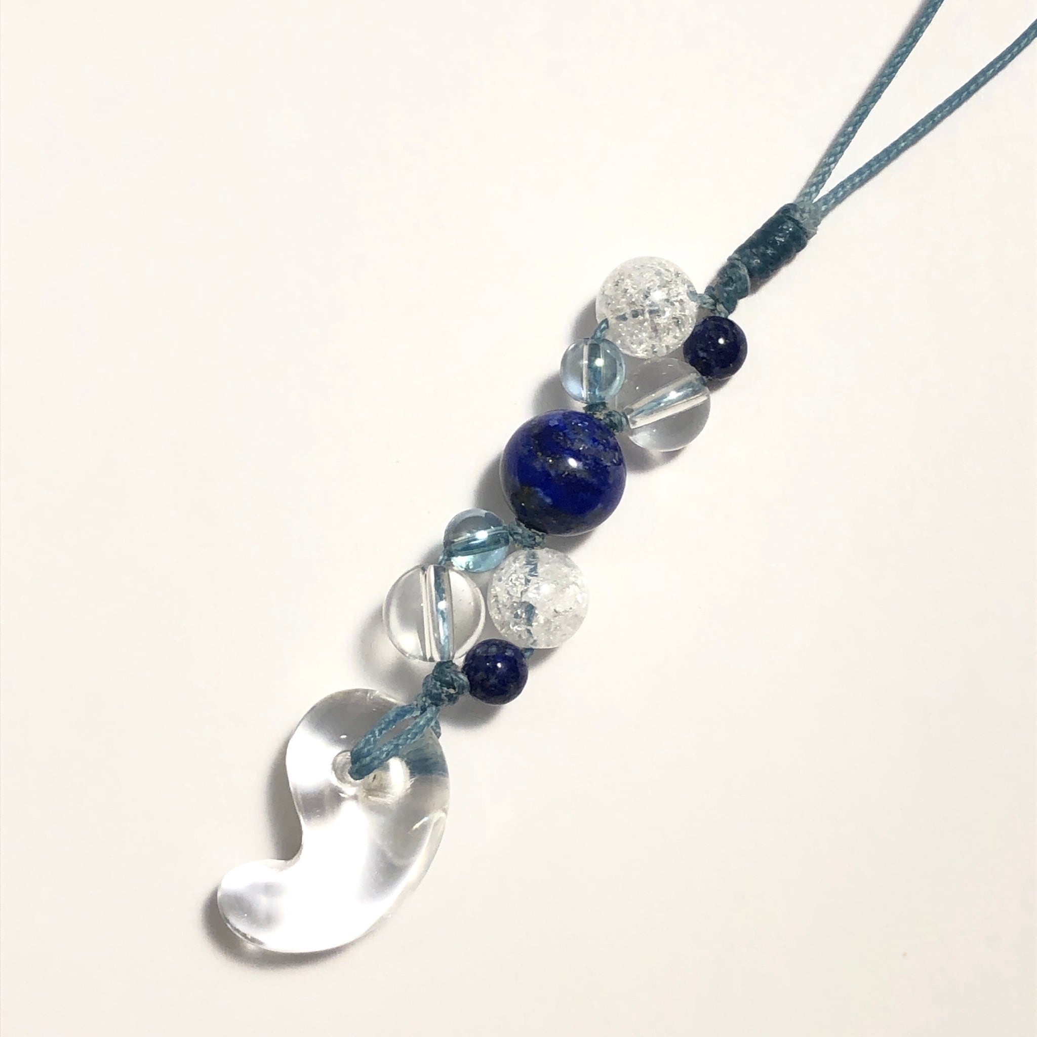 水晶(勾玉)、ラピスラズリ、アクアオーラ、クラック水晶
