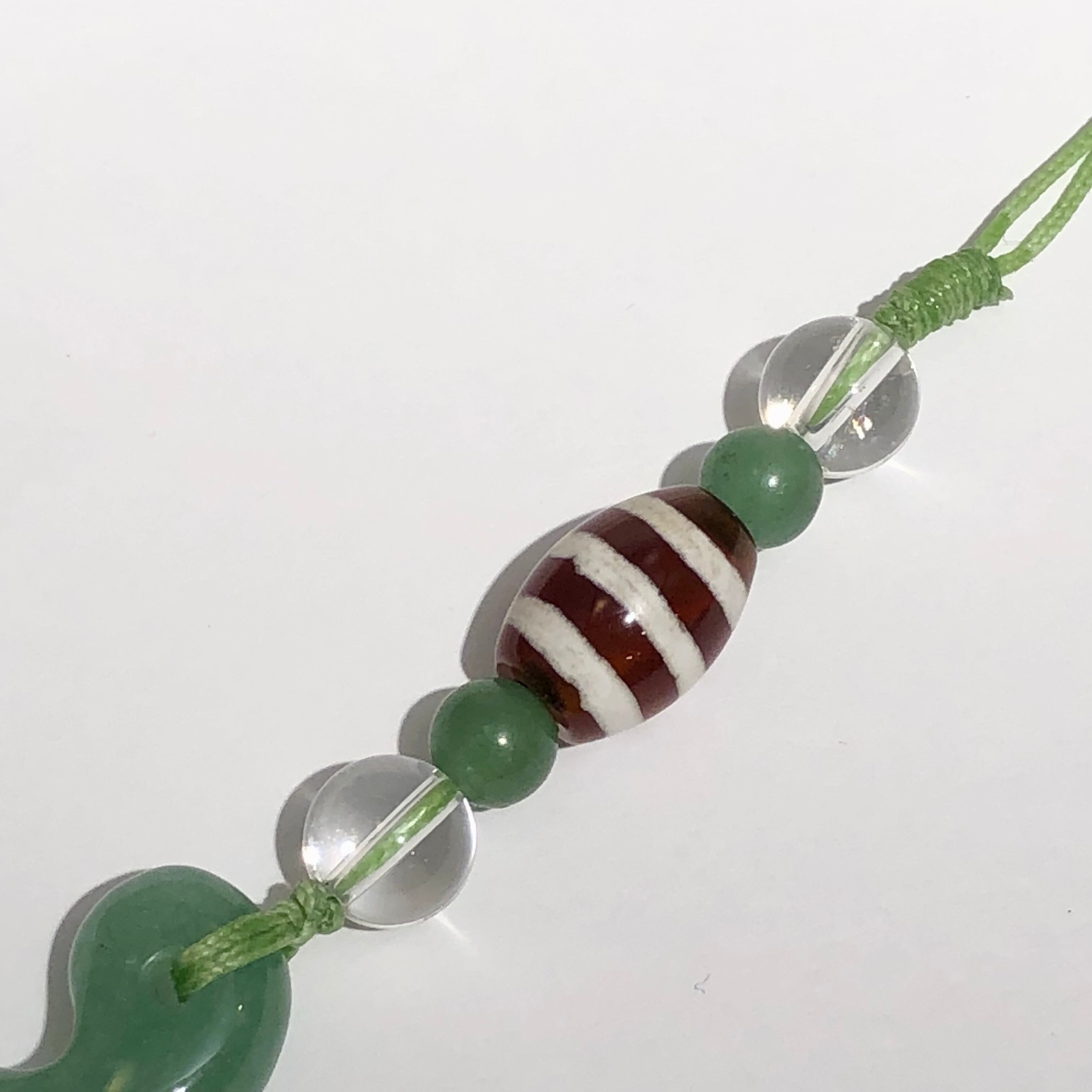 線珠(赤めのう)、アベンチュリン(勾玉)、水晶、アベンチュリン