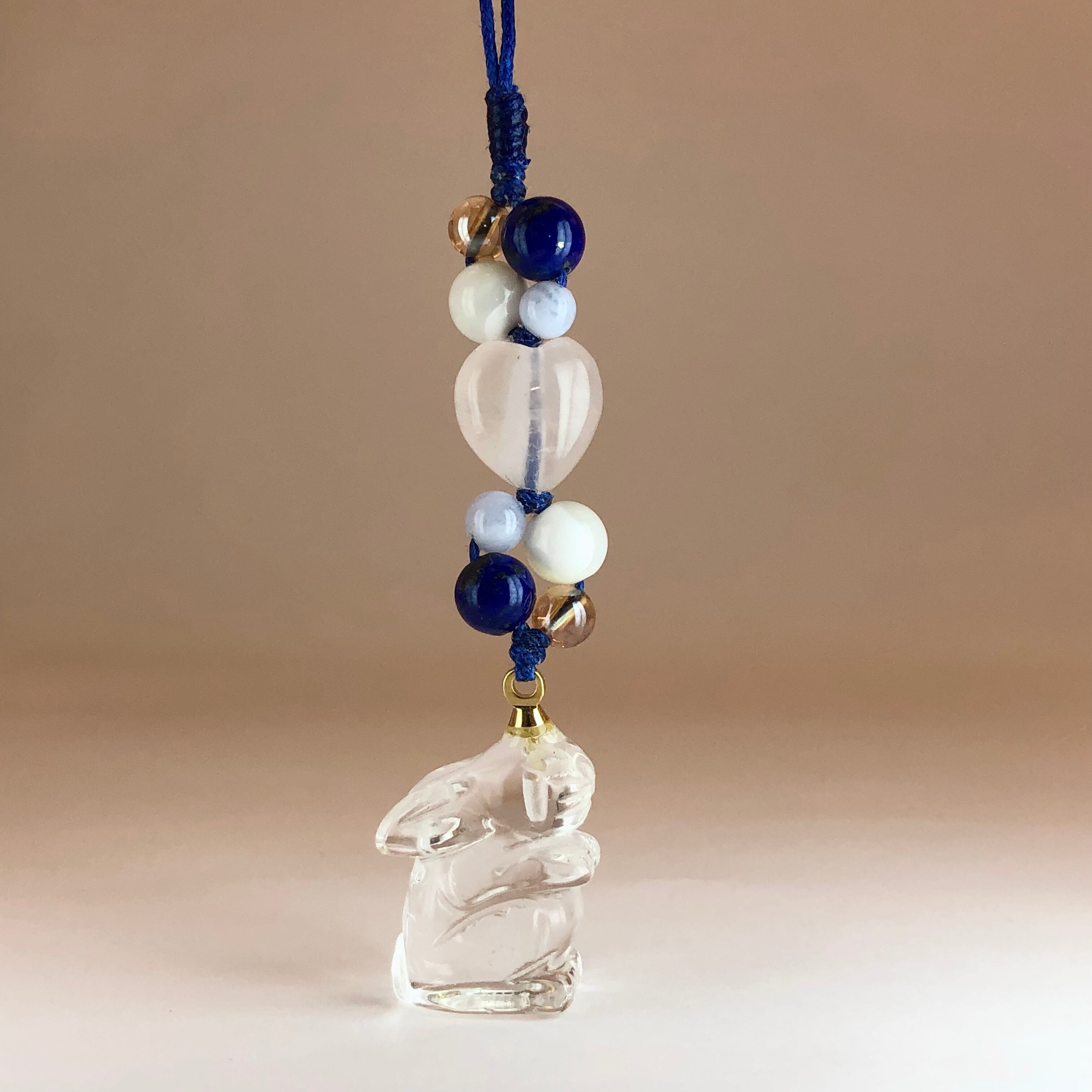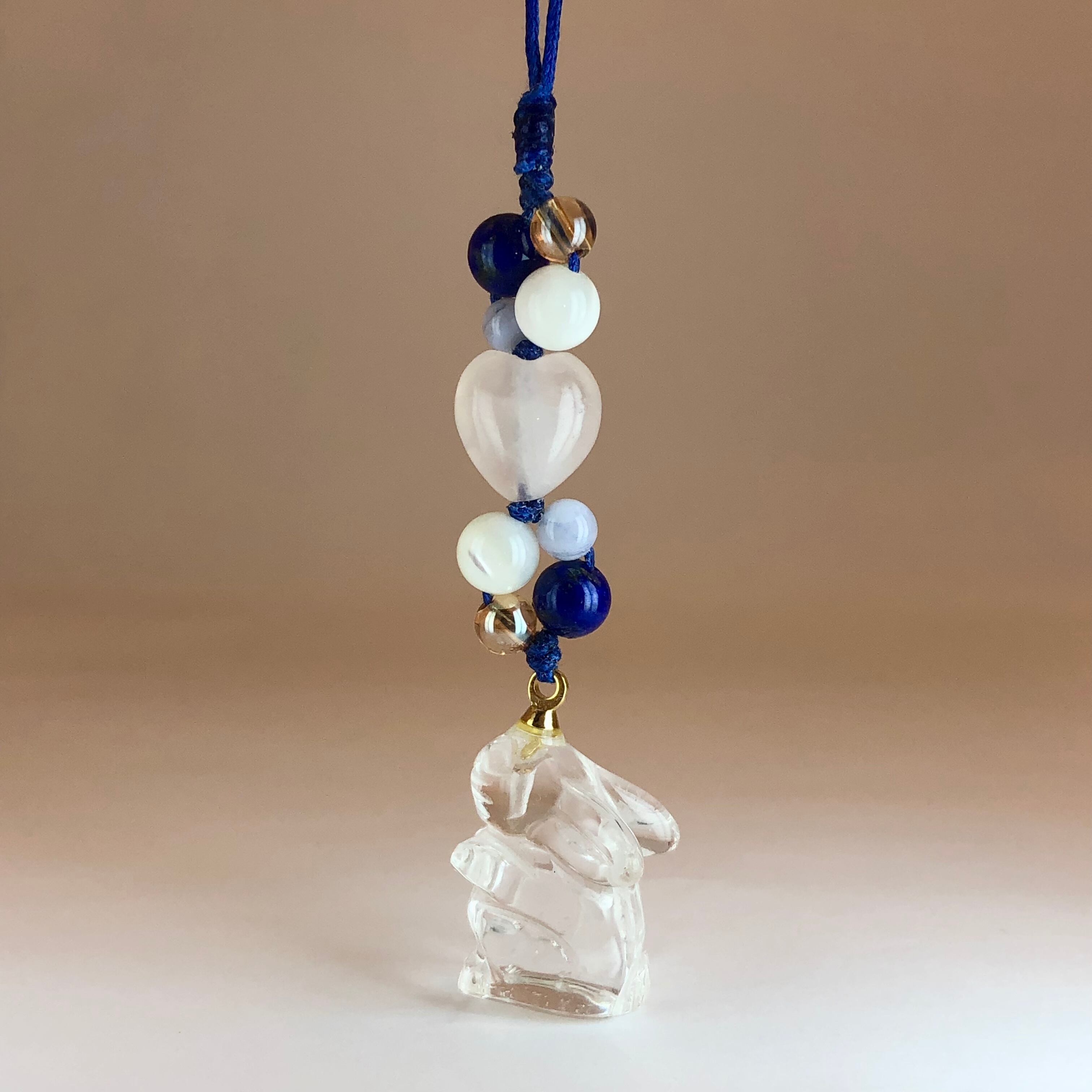 ローズクォーツ(うさぎ)ローズクォーツ、ラピスラズリ、マザーオブパール、ゴールデンオーラ、ブルーレースアゲート