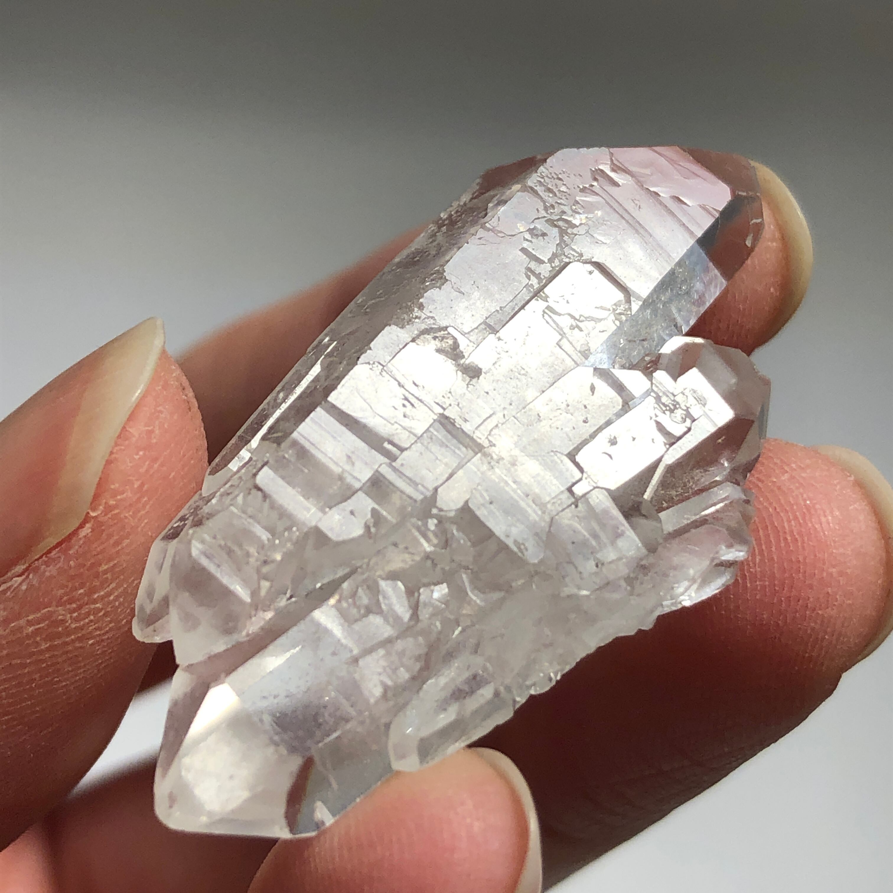 なぜこのような糸状の繋ぎ目が出来るかというと、地殻変動によって成長の途中で破壊された水晶が再結晶して出来たという説や、中心の糸状の部分を始まりとして結晶が出来上がったという説など諸説あり、詳しい成長過程はまだ明らかになっていないそうです。