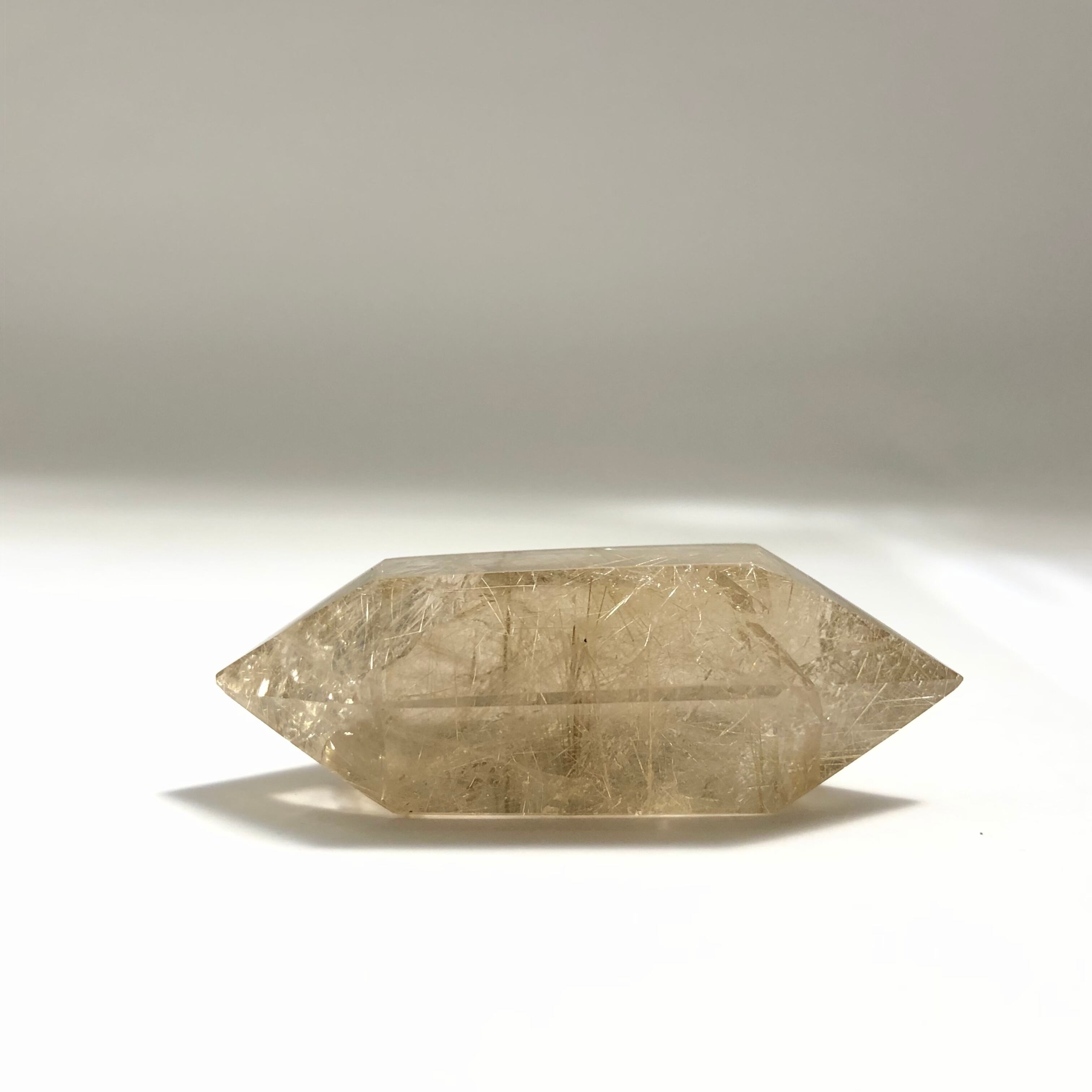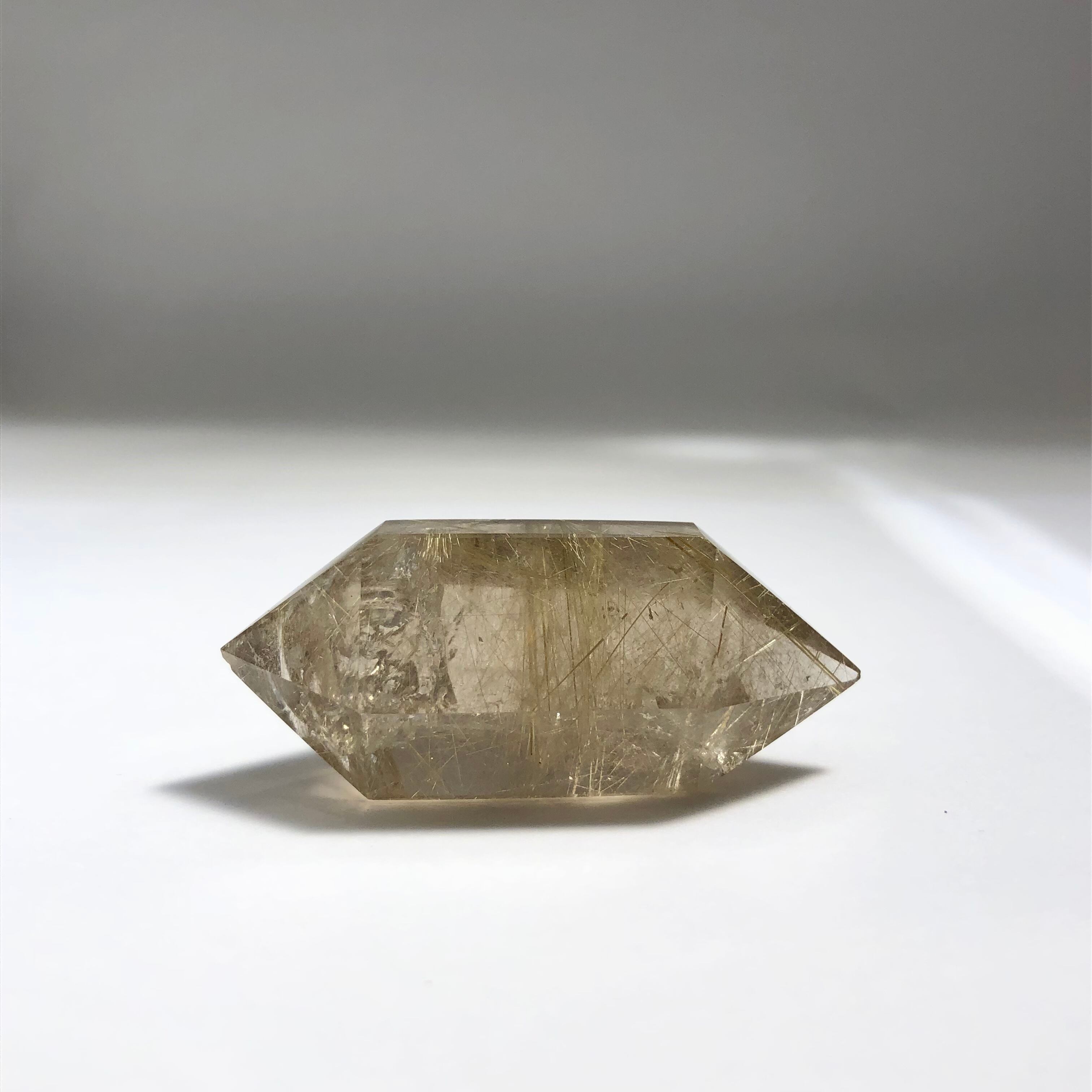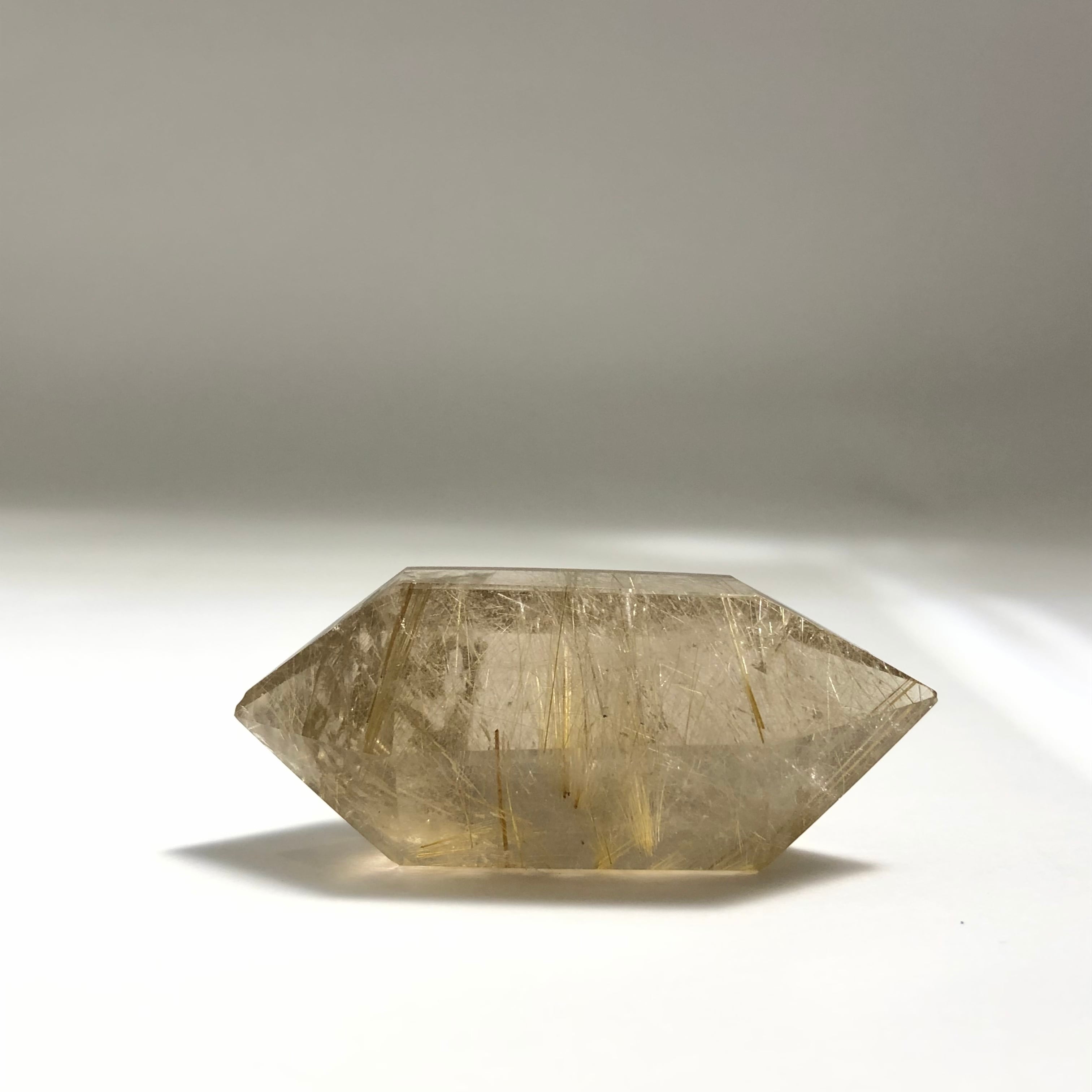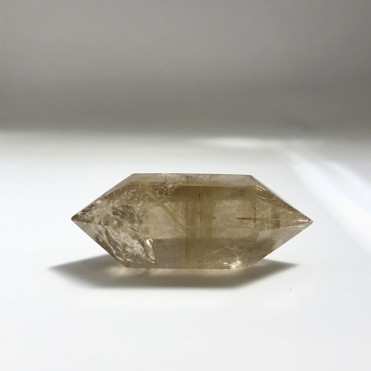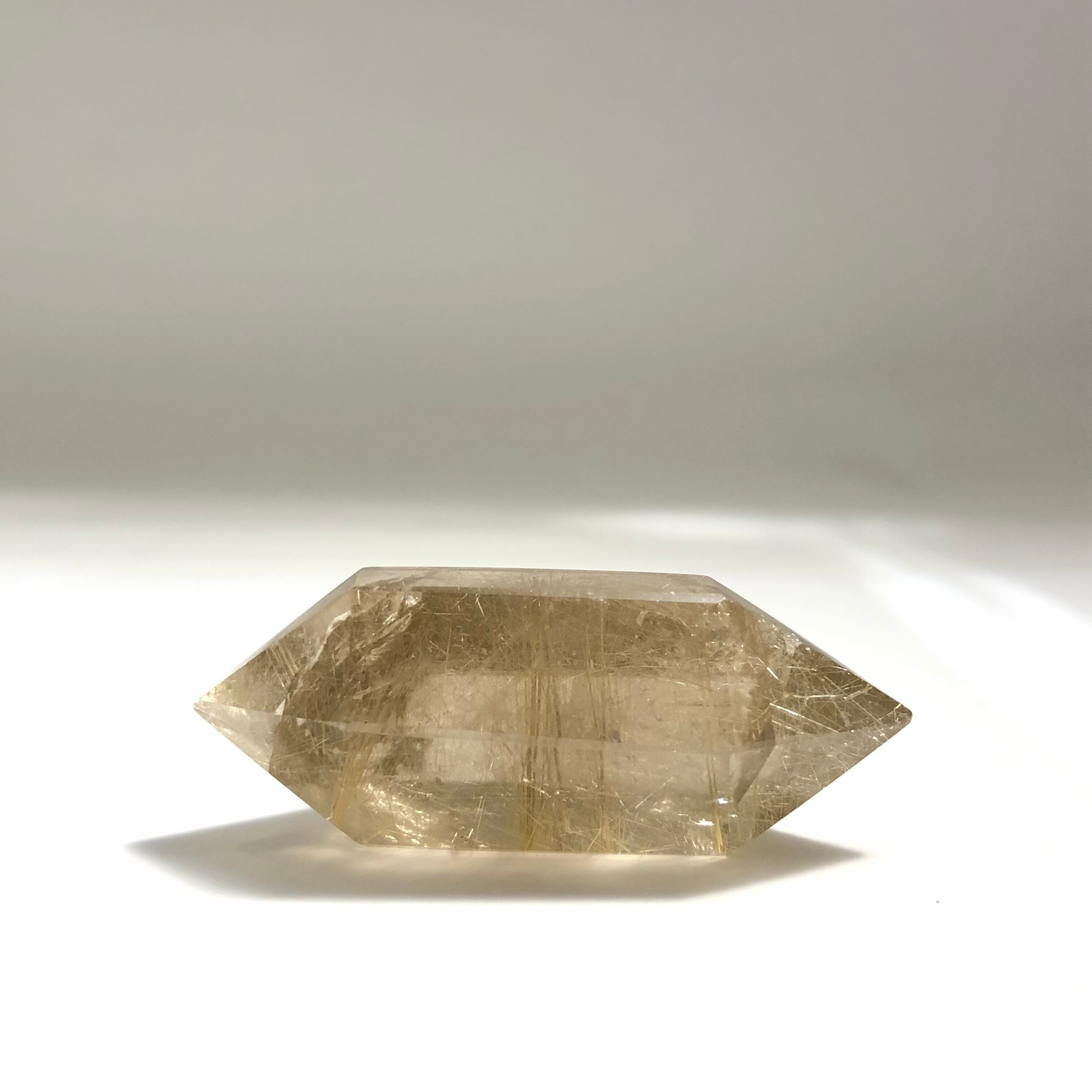 こちらはルチルクォーツを両剣(ダブルターミネーテッド)の形に加工したものです。