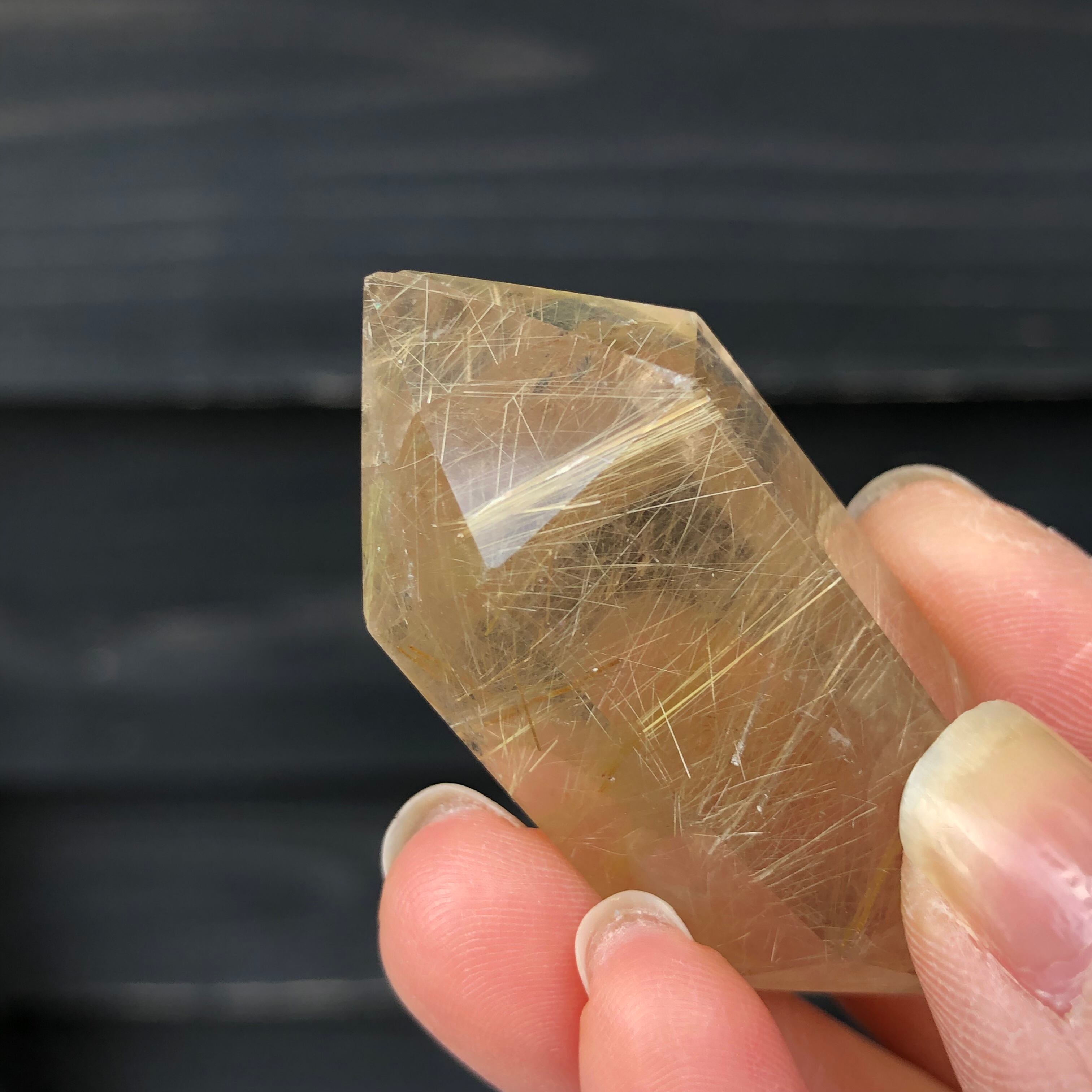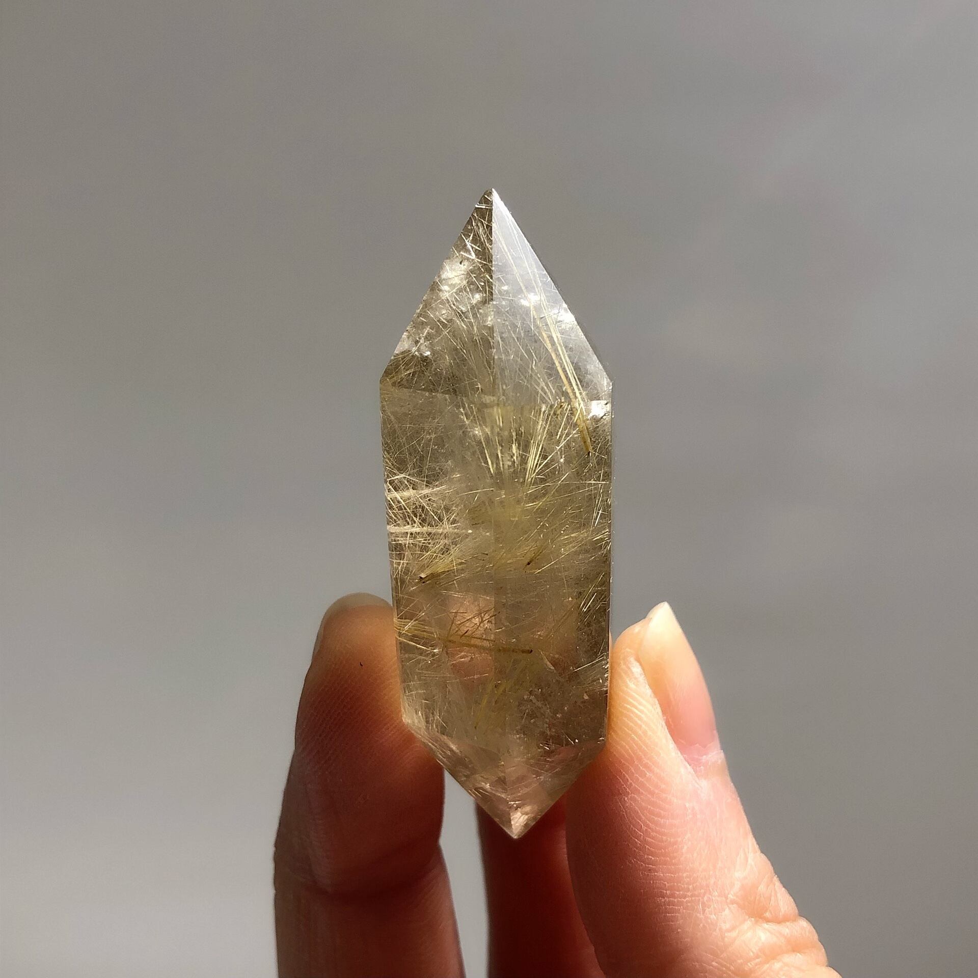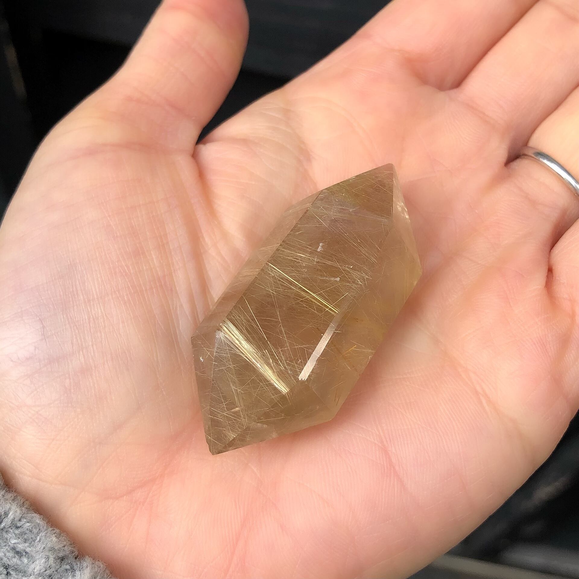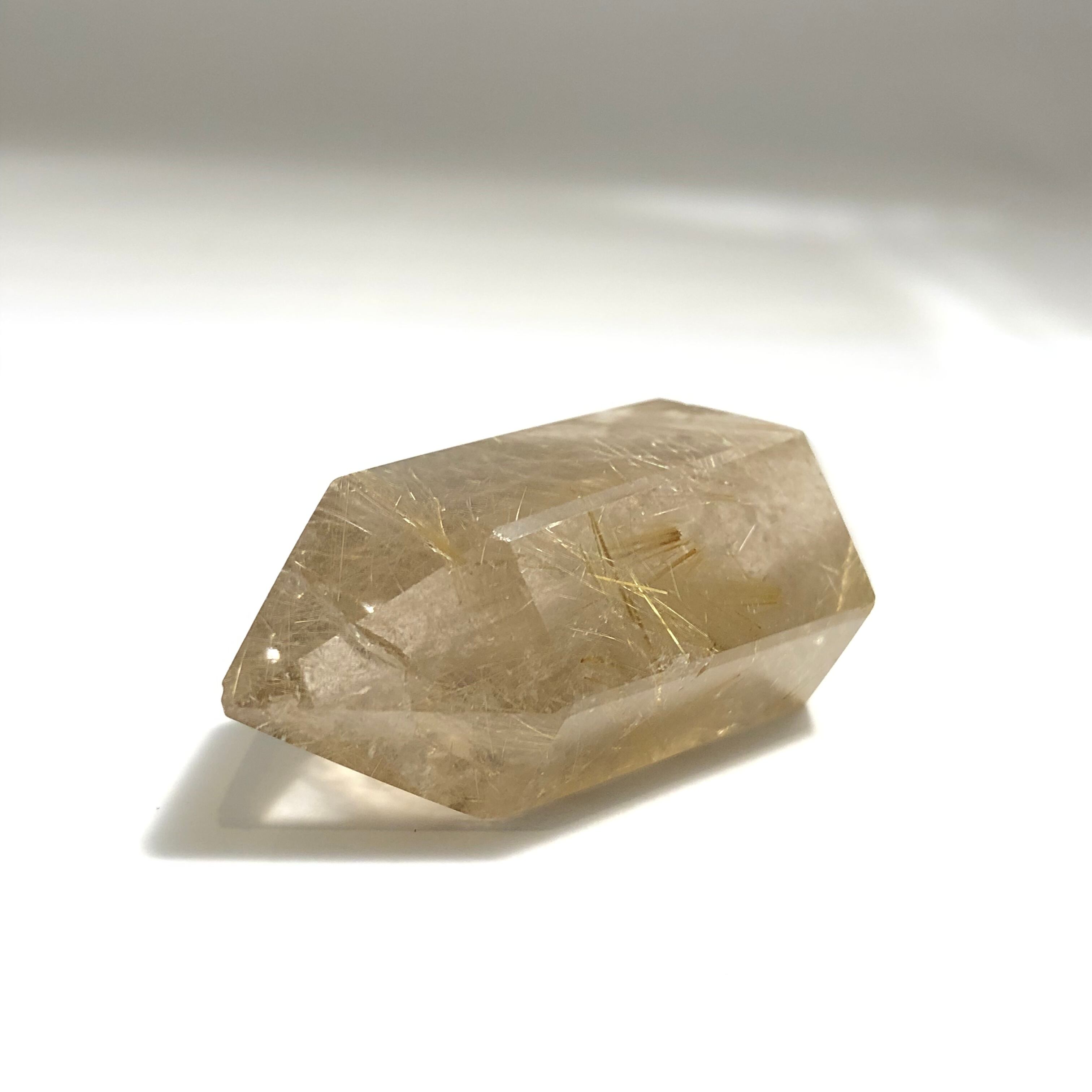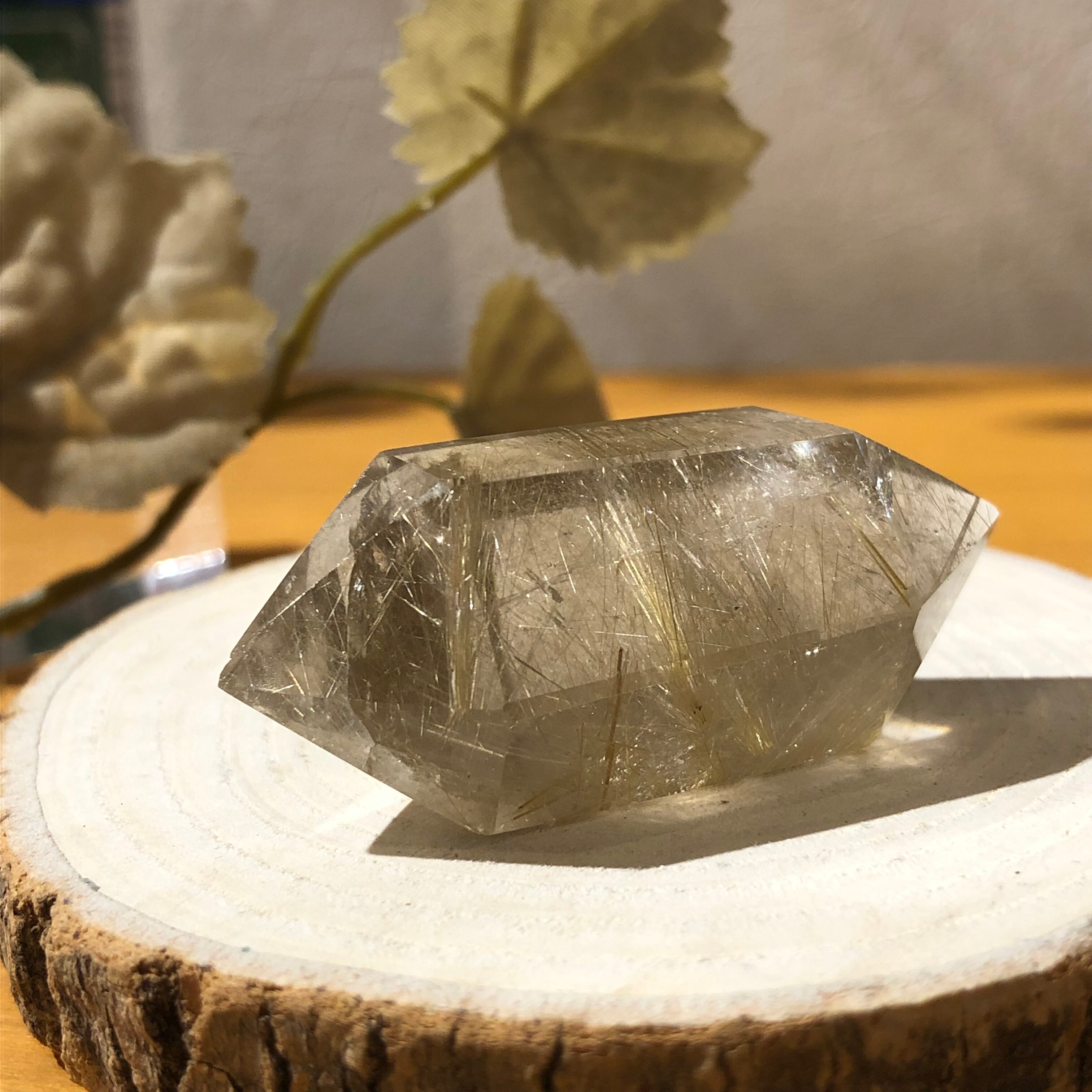 こちらはルチルクォーツを両剣(ダブルターミネーテッド)の形に加工したものです。