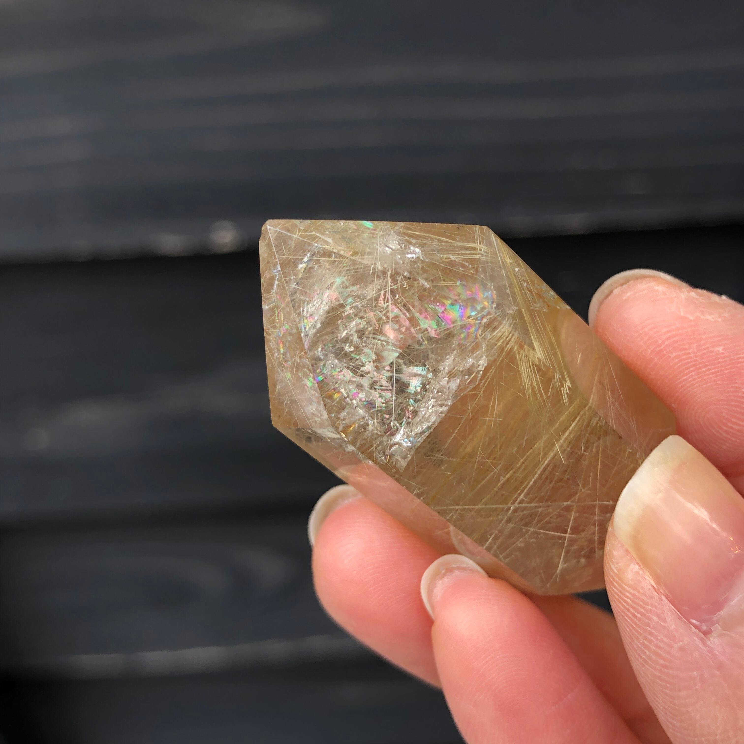 こちらのルチルクォーツはしっかりと針が確認でき、光の受け方によって虹が見られる部分がありますよ♡
