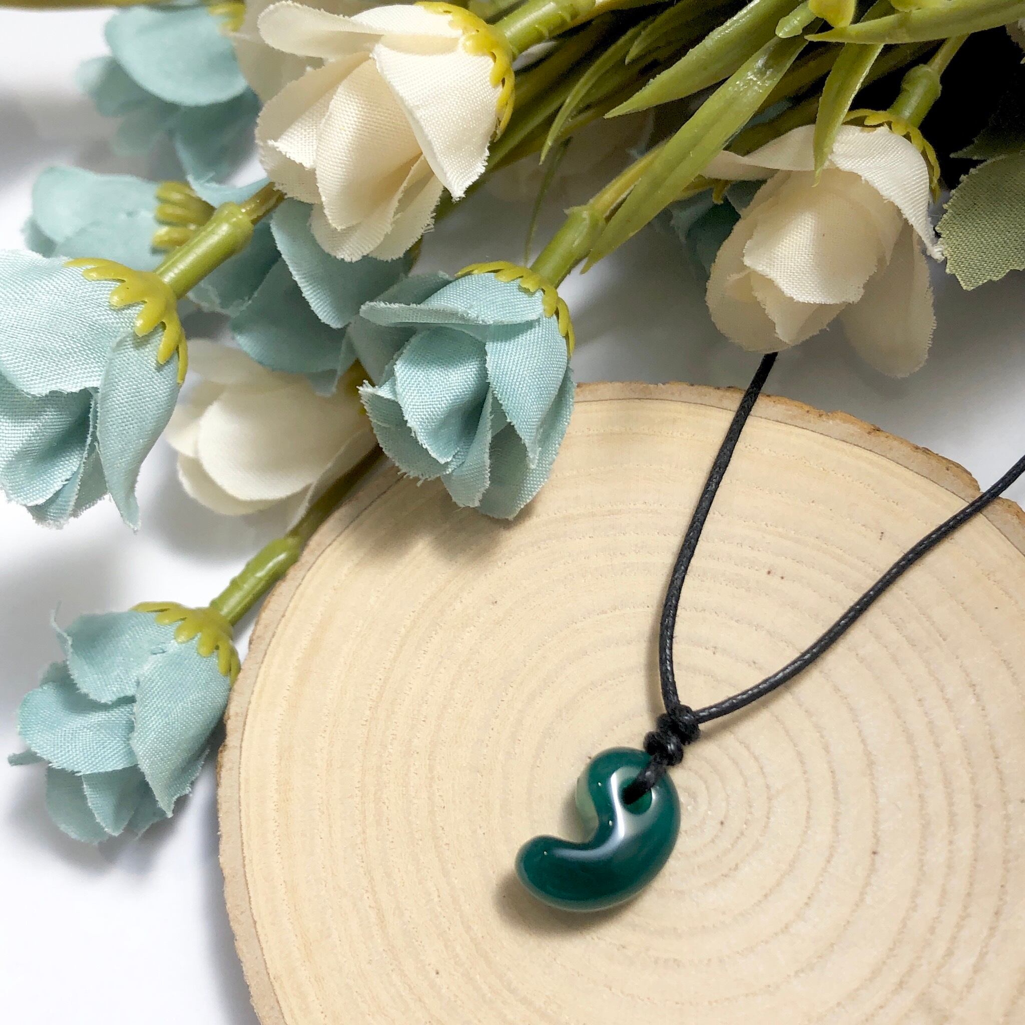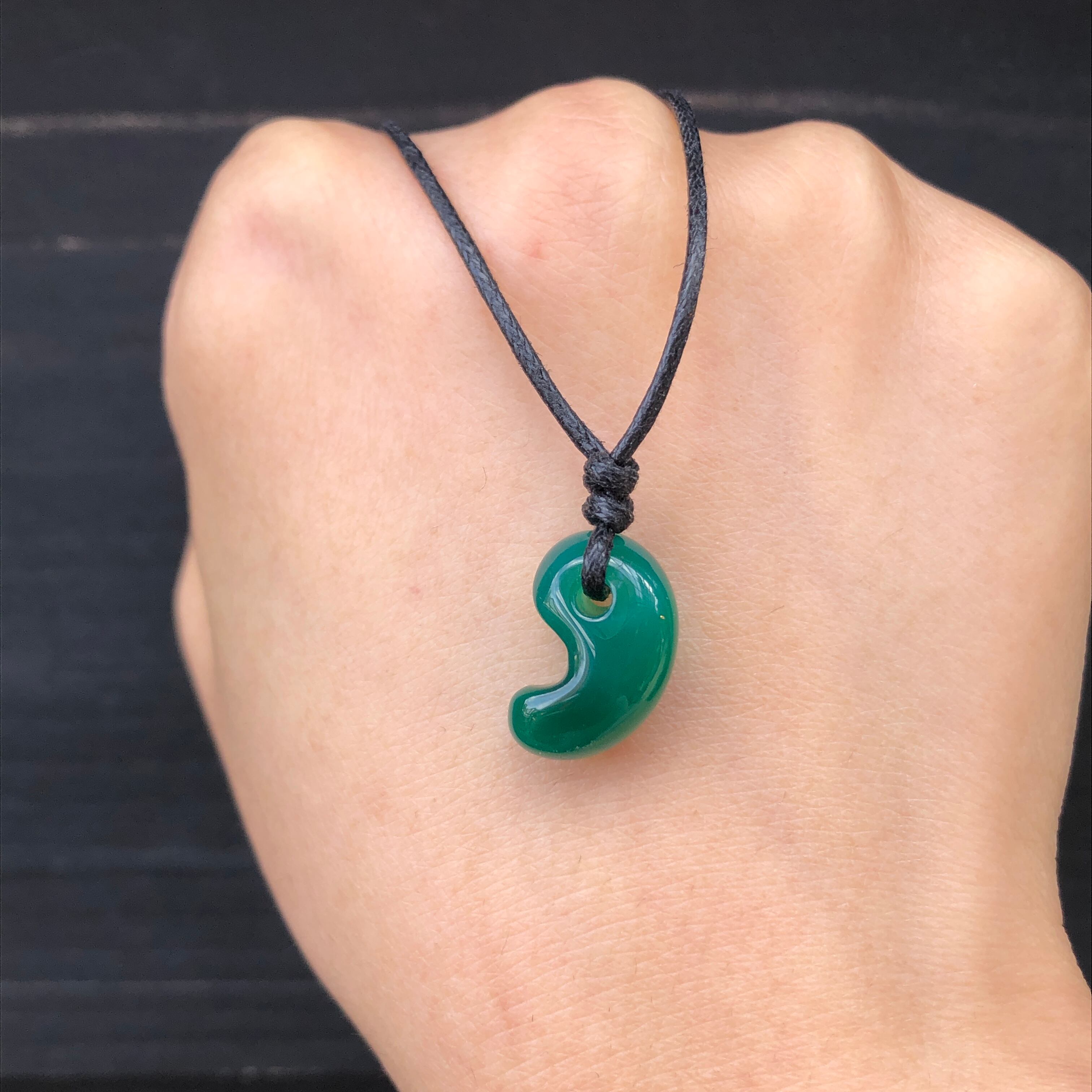 ■材質 勾玉:天然石(青めのう) ひも:綿(ロウ引き加工)