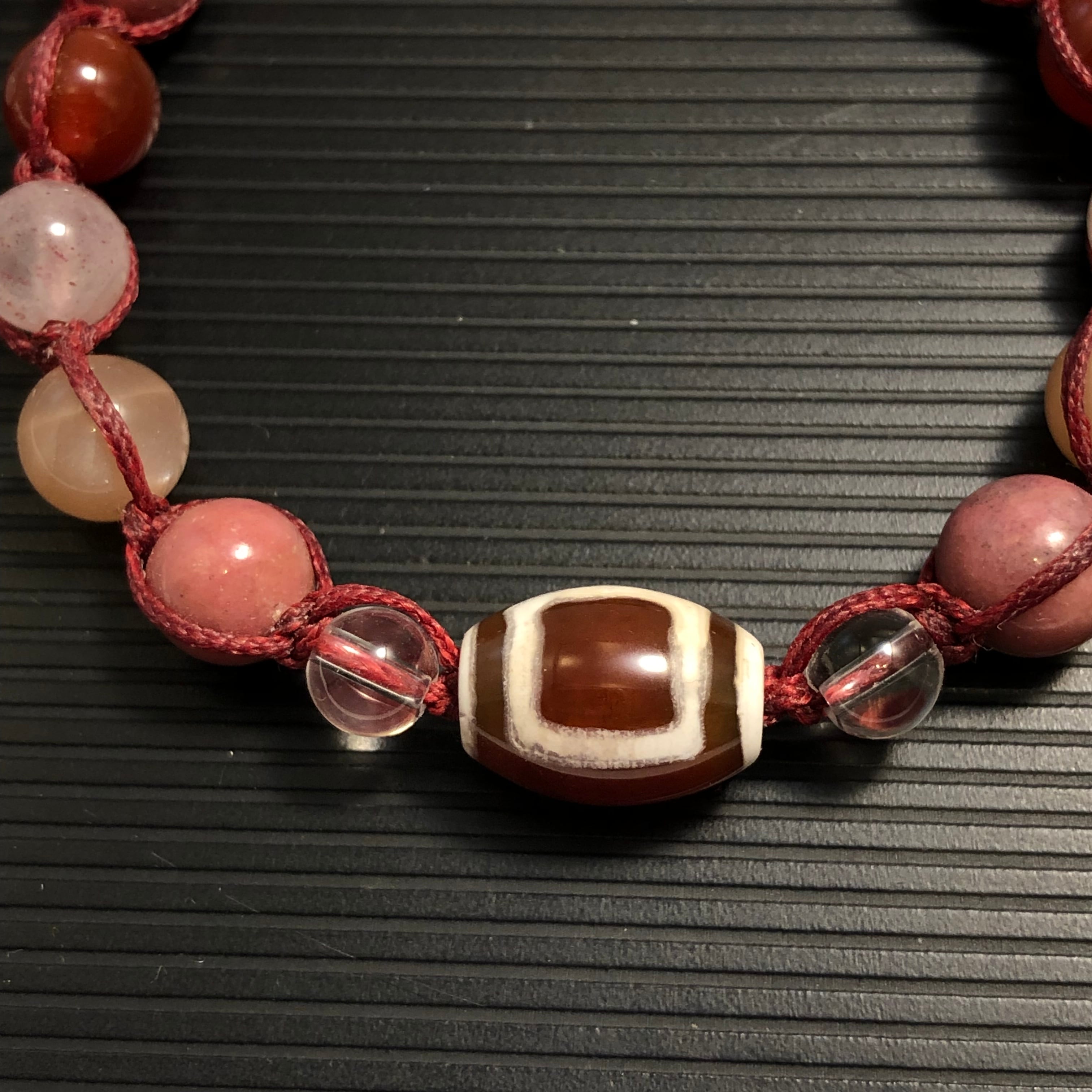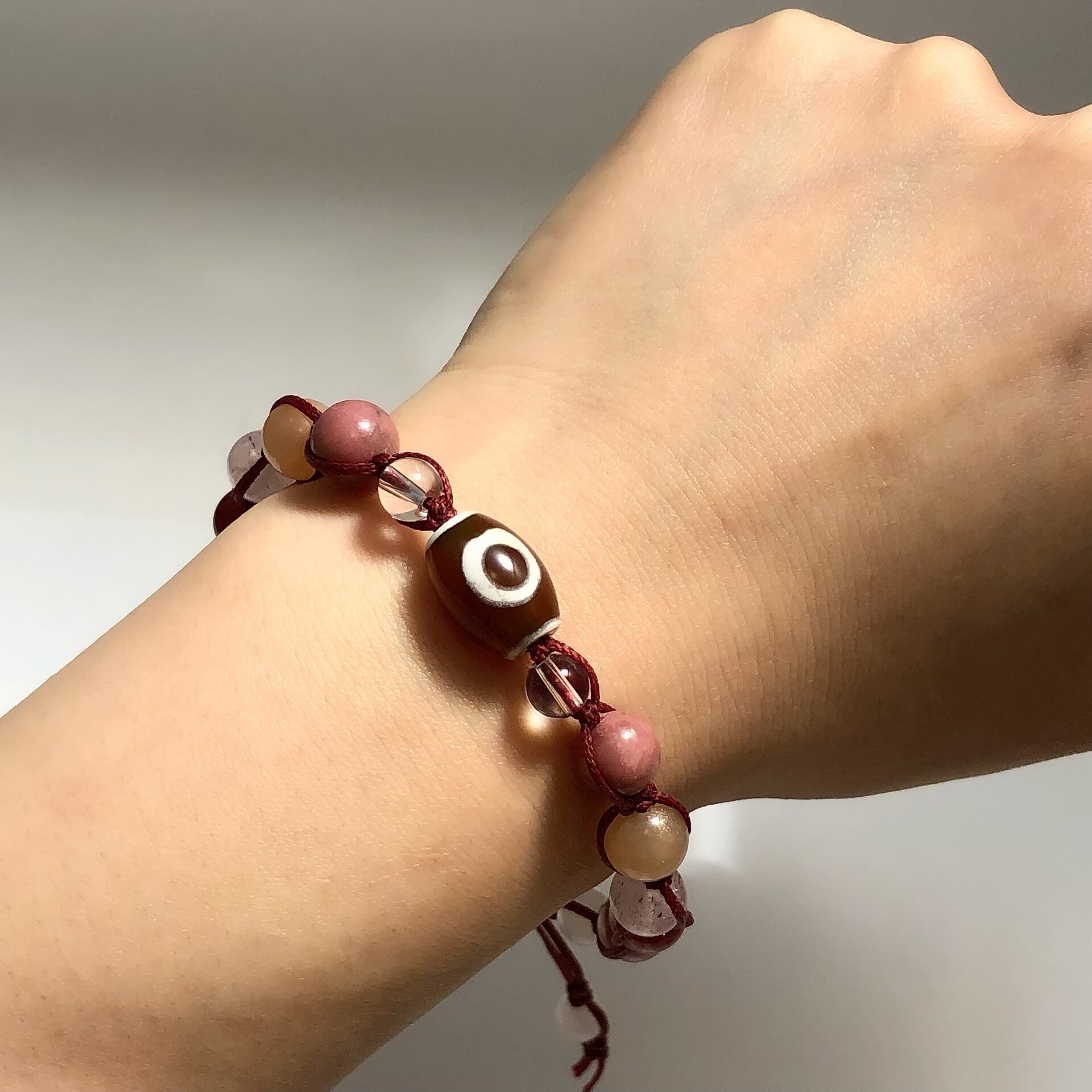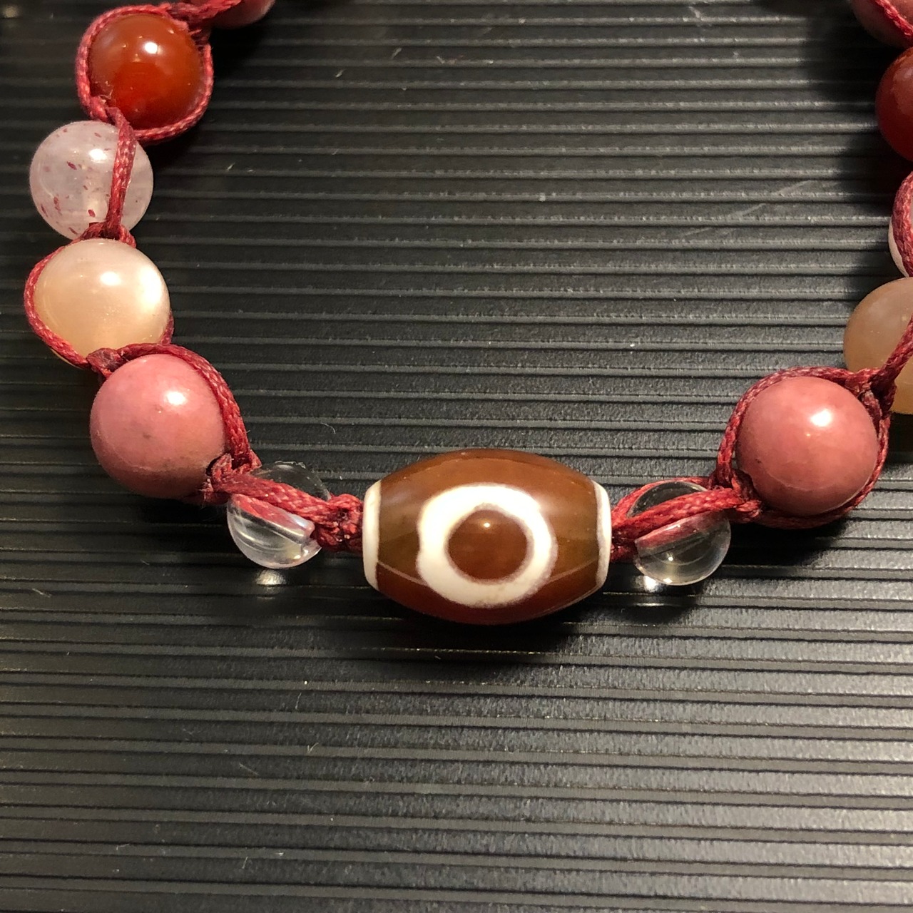 ■使用している石 天地天珠(赤めのう)ロードナイト、オレンジムーンストーン、ストロベリークォーツ、水晶、赤めのう、ローズクォーツ