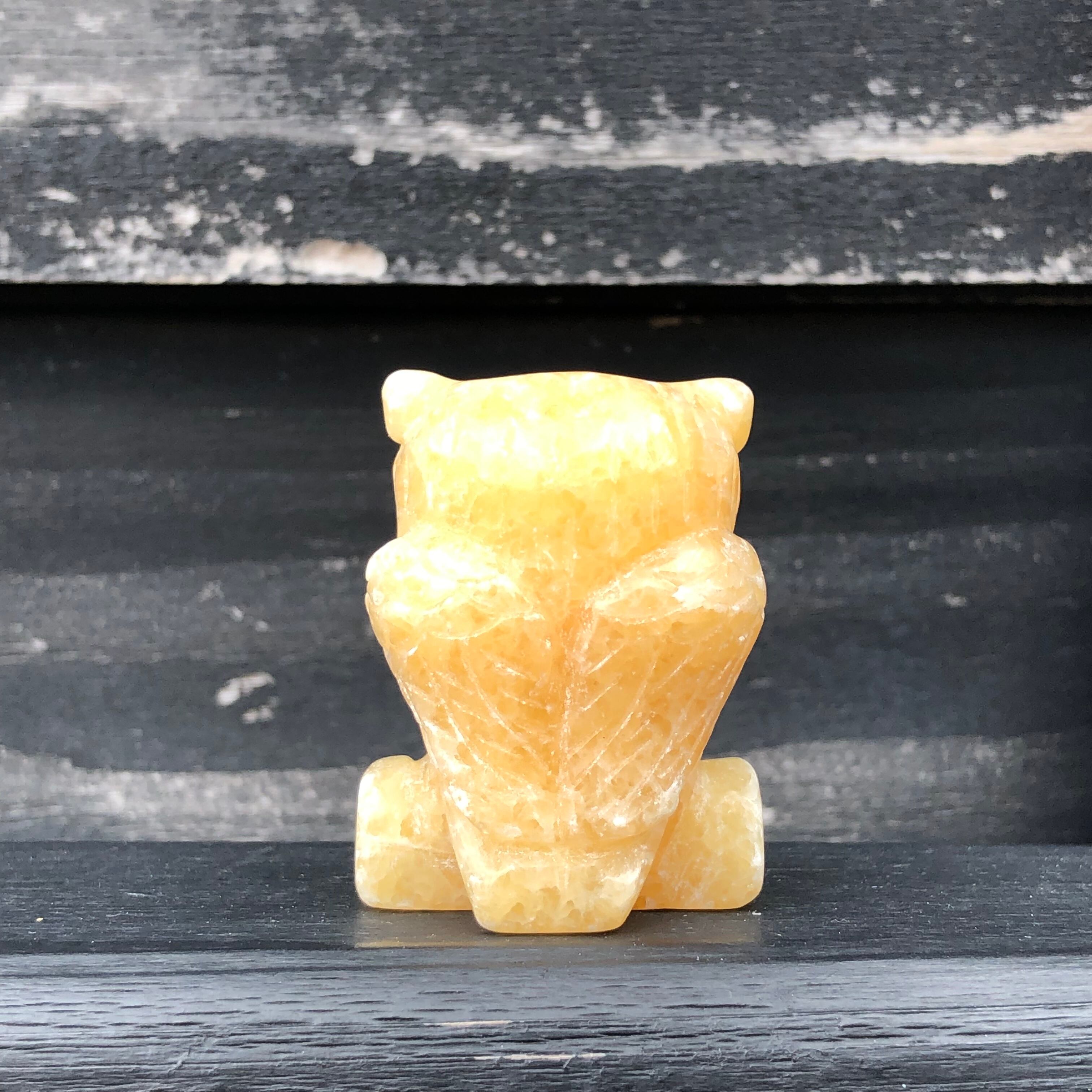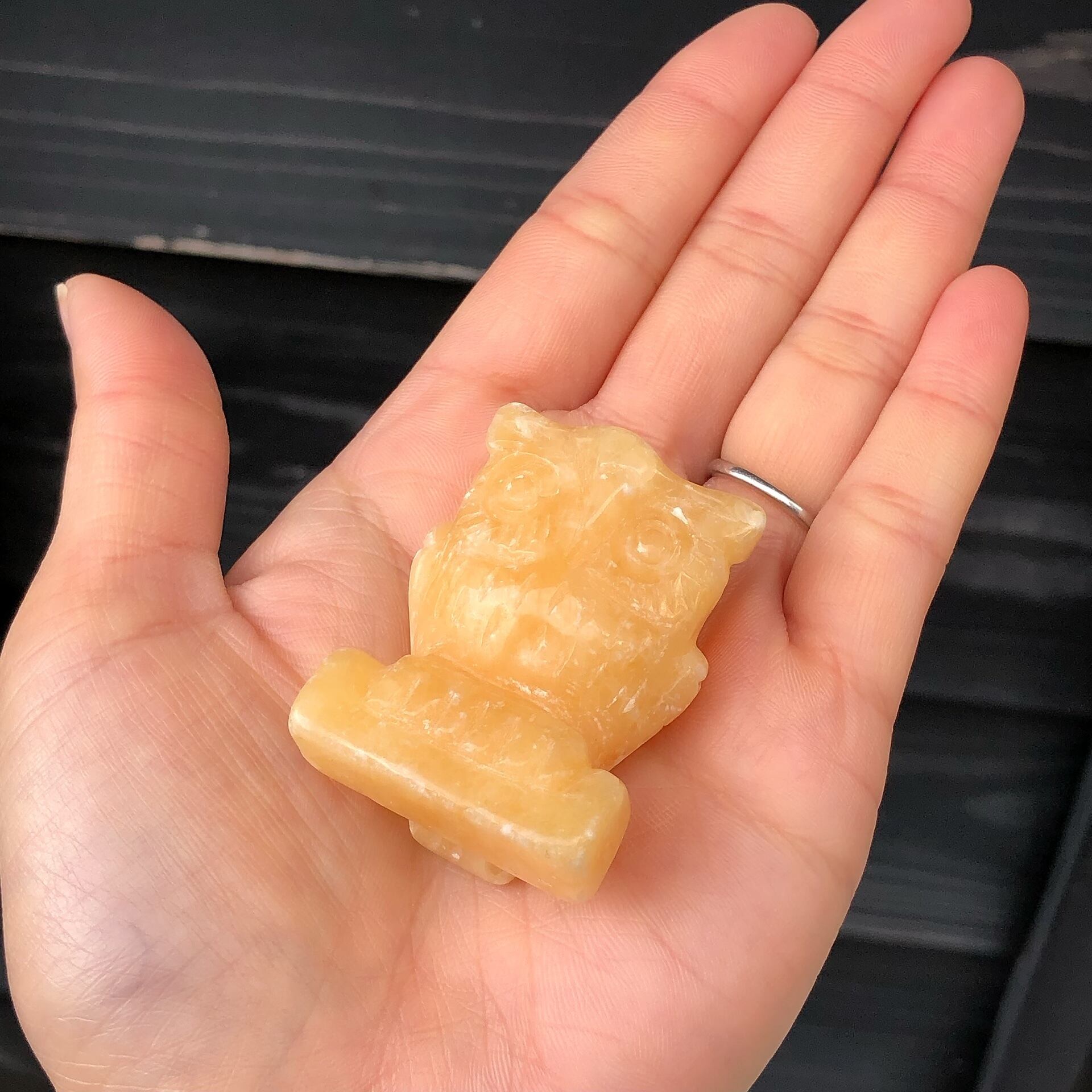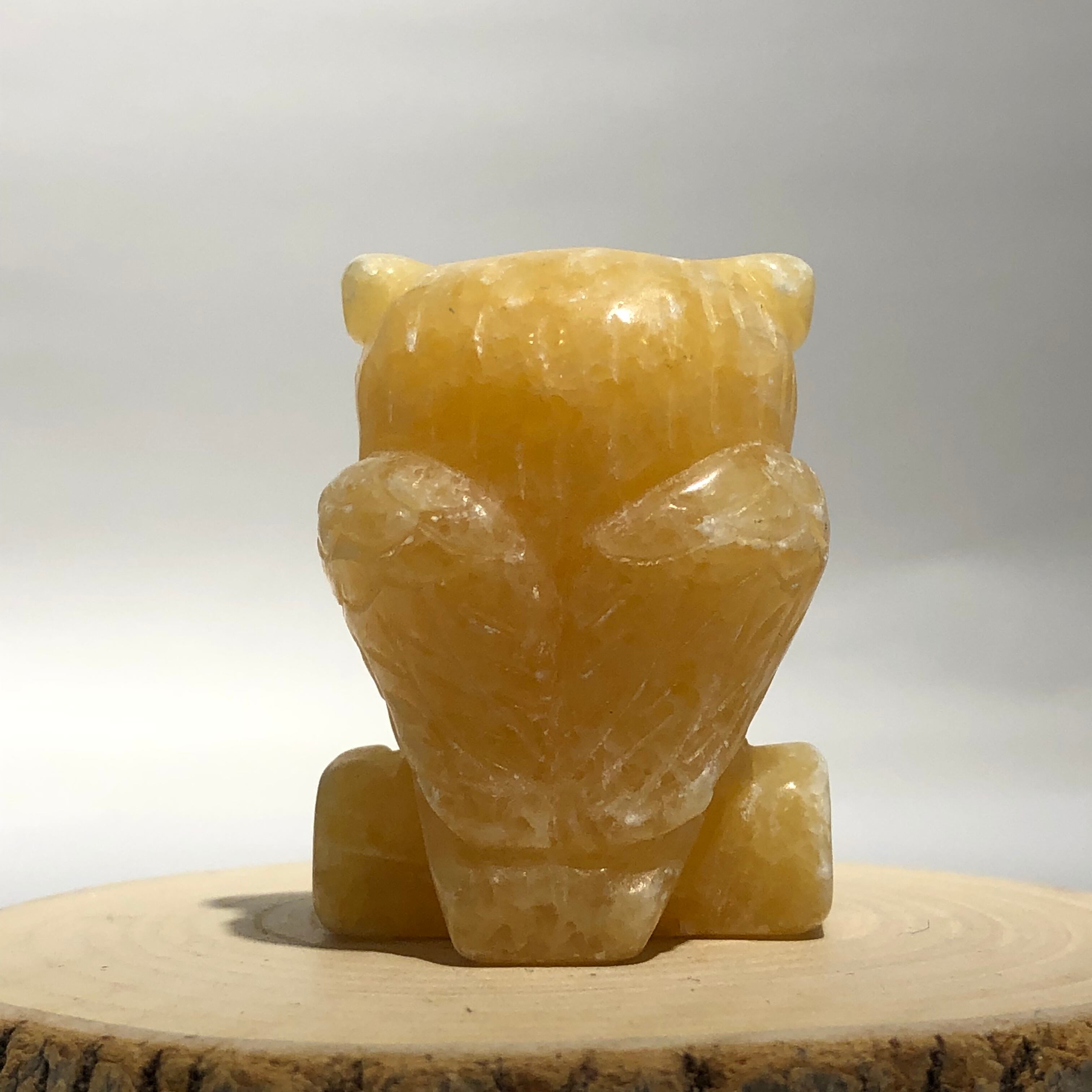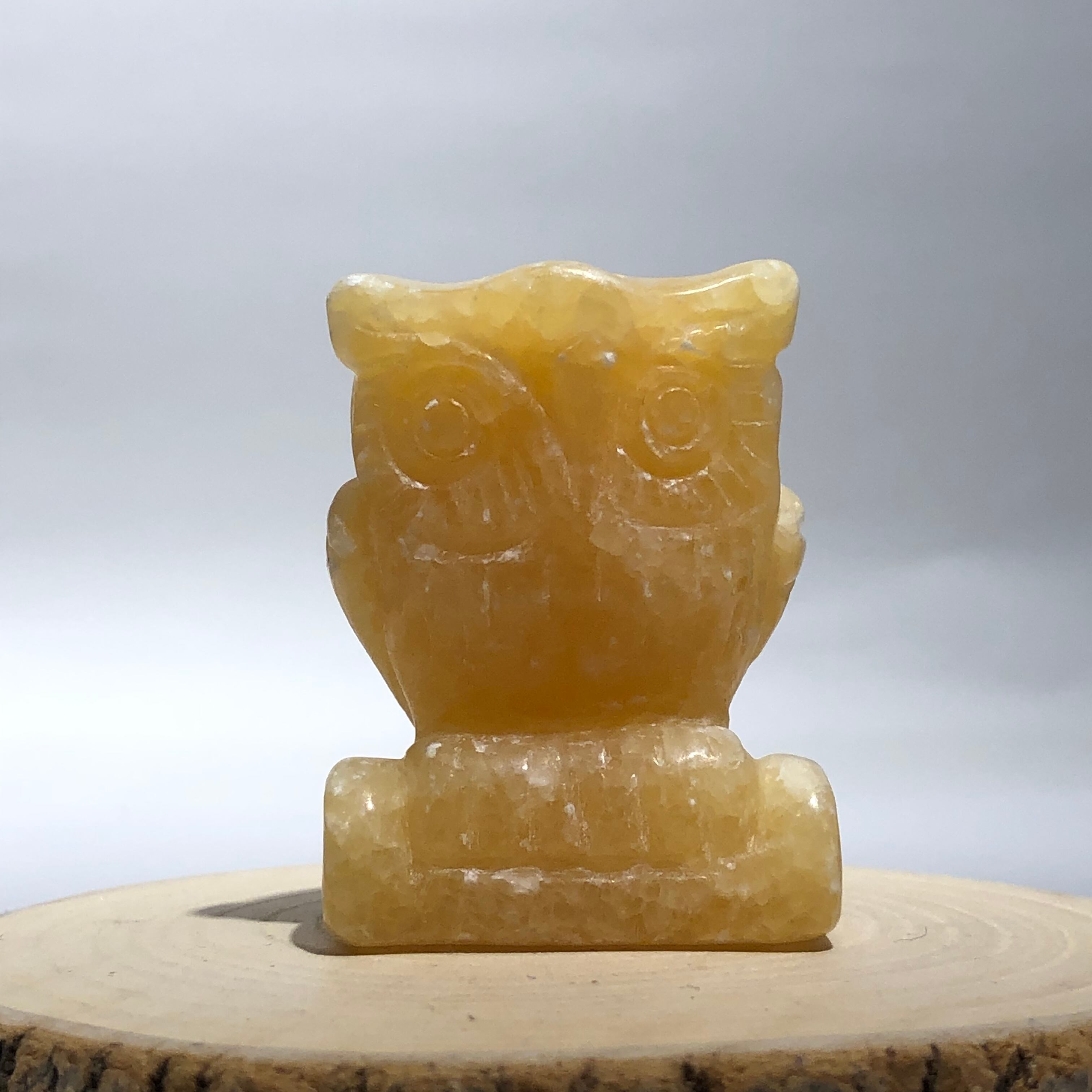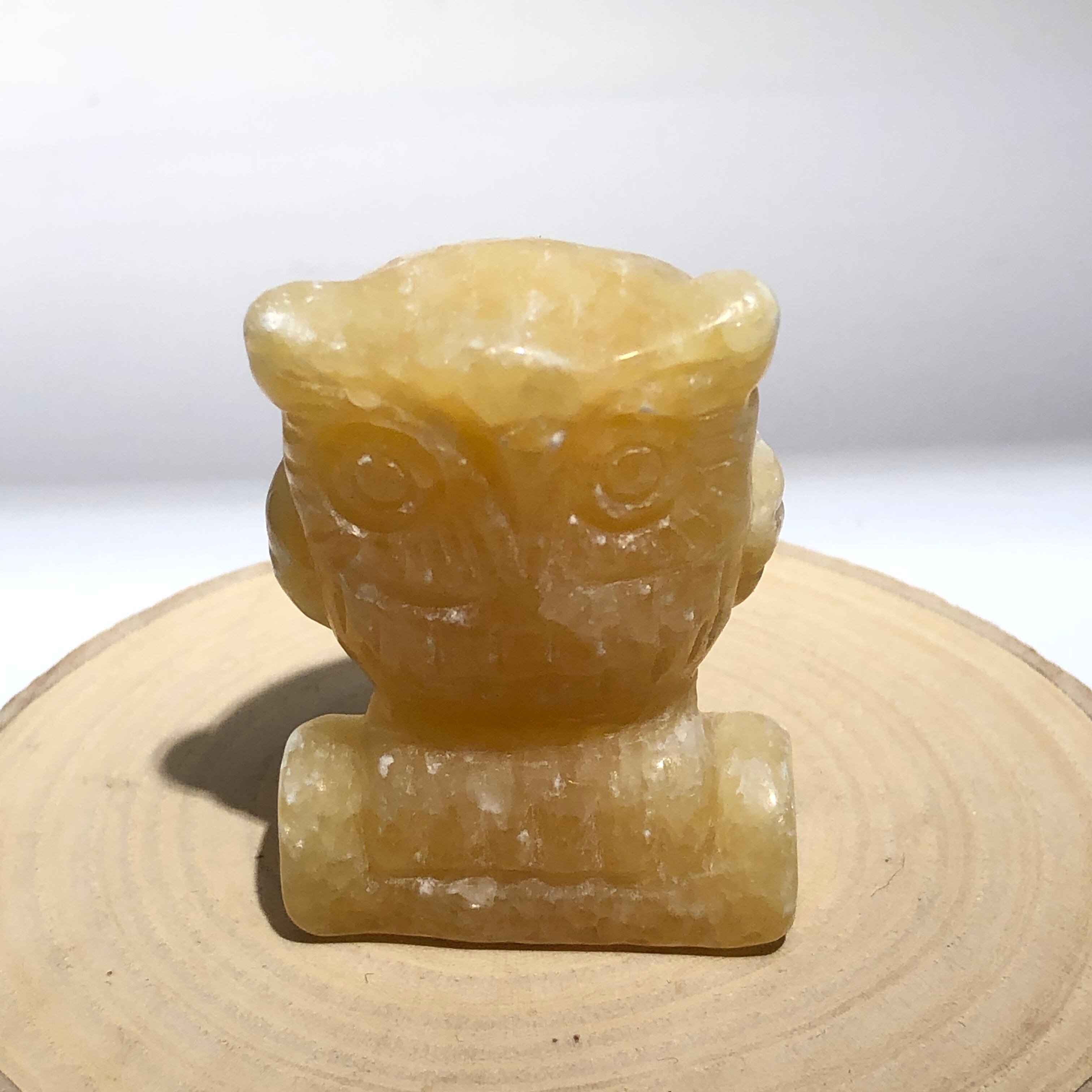 【h375d】天然石ふくろう置き物【アラゴナイト】社交性・思いやり・愛情