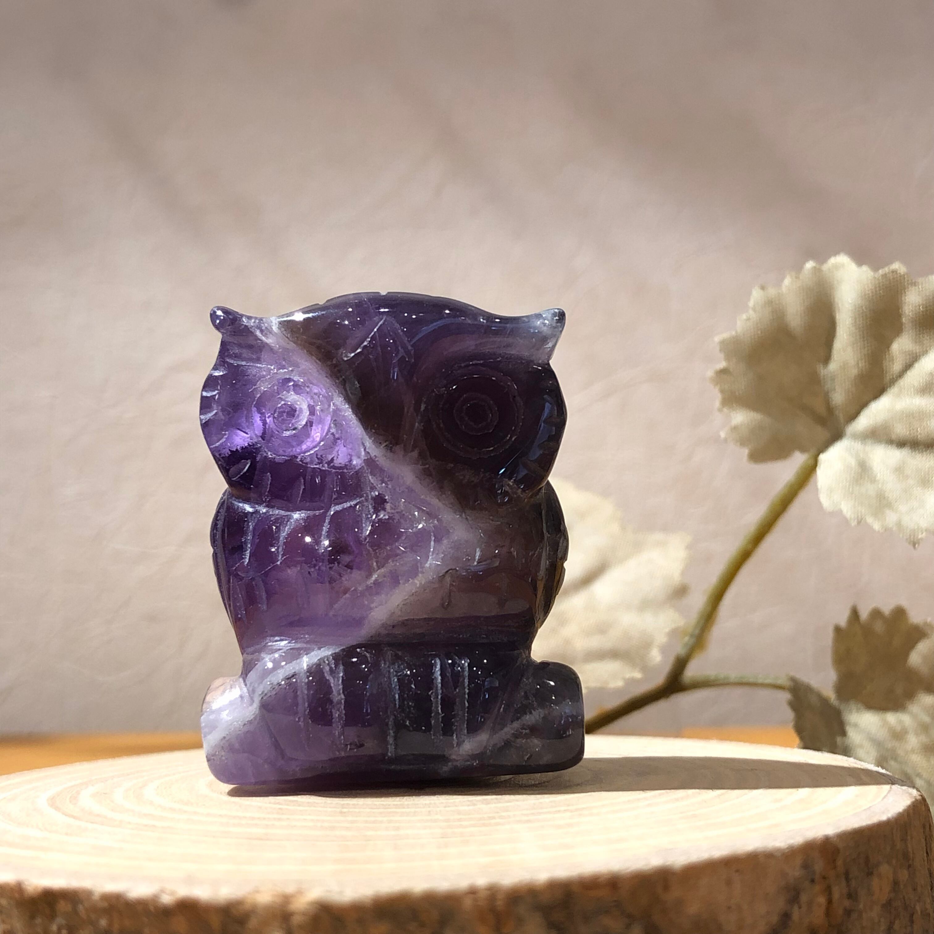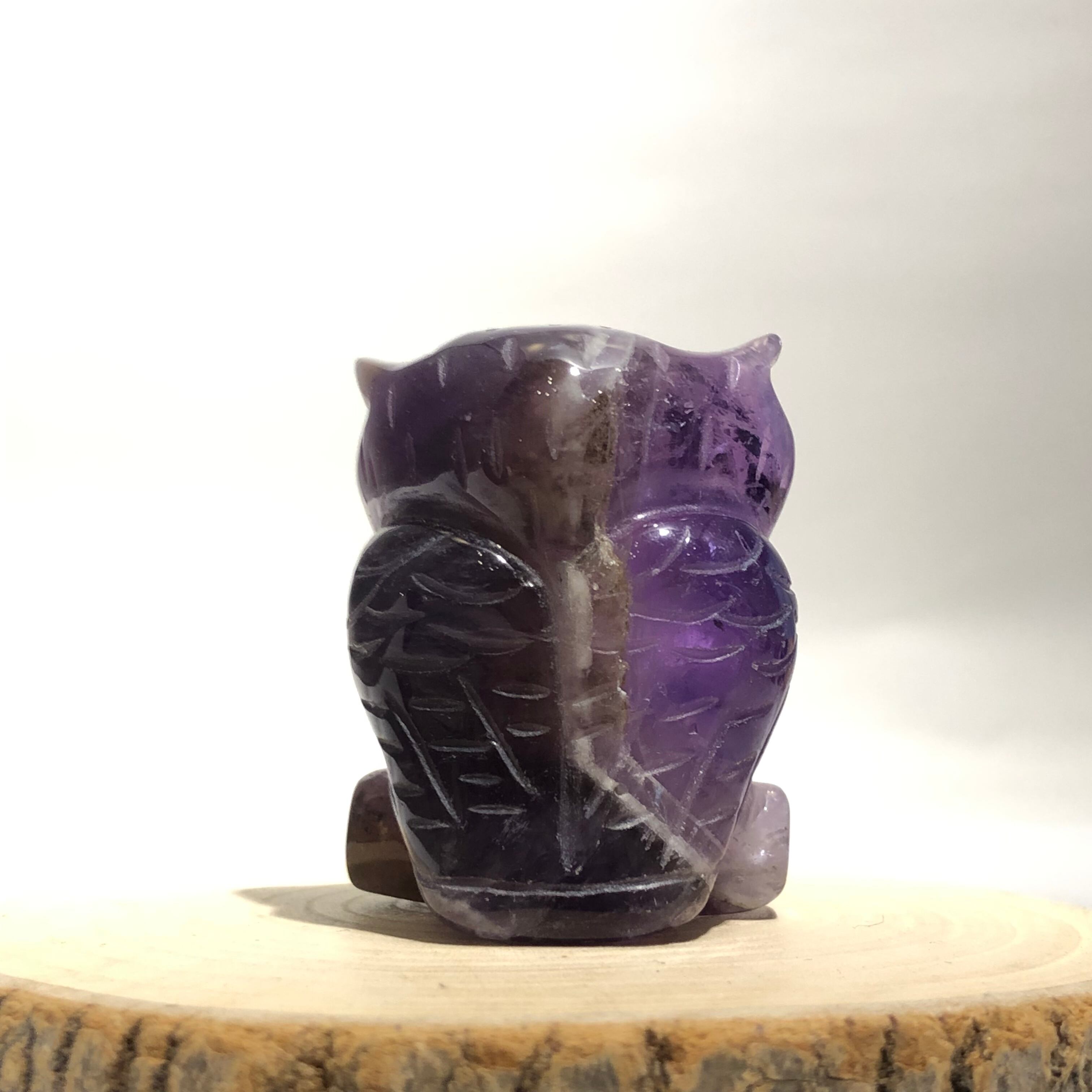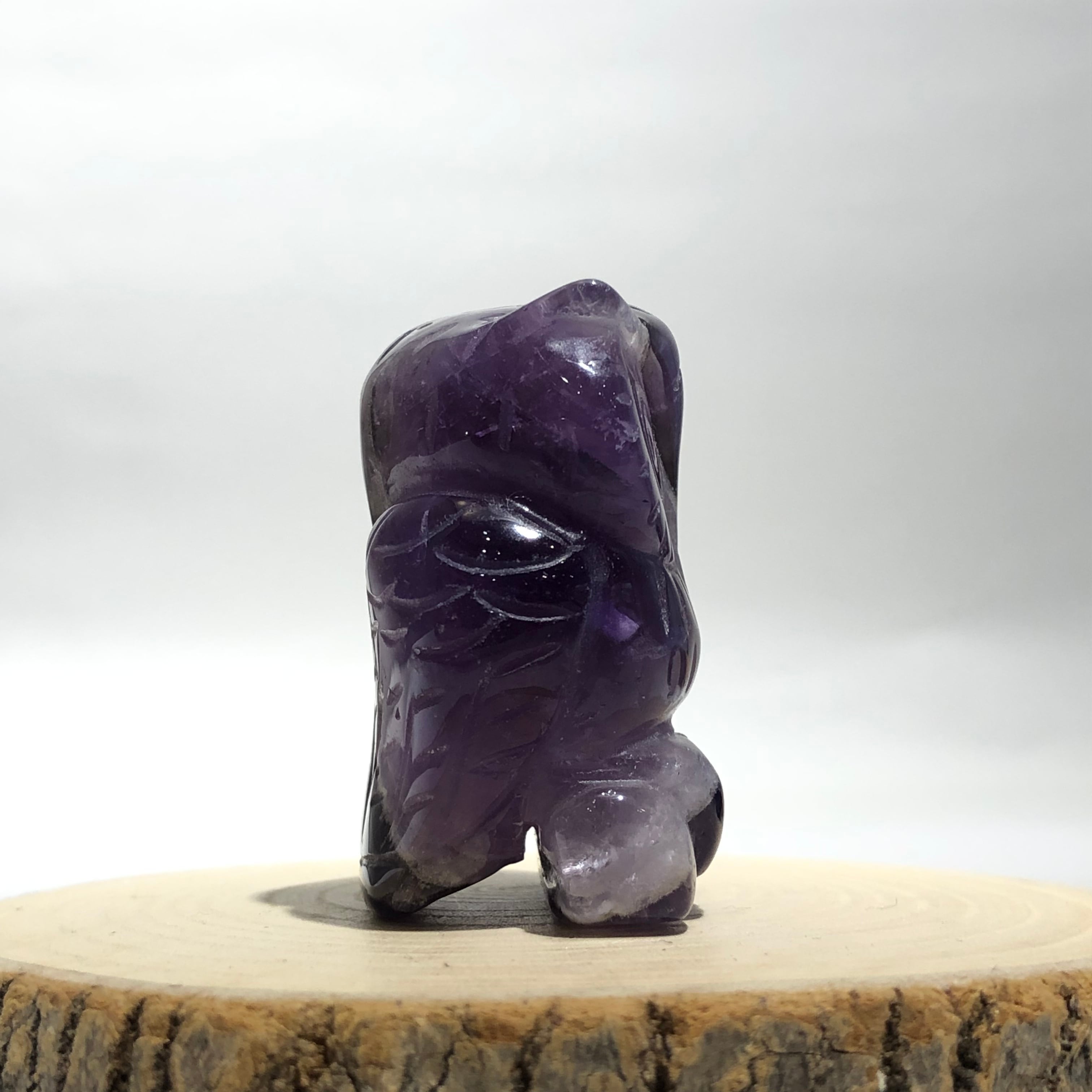 【h376d】天然石ふくろう置き物【アメジスト】厄除け