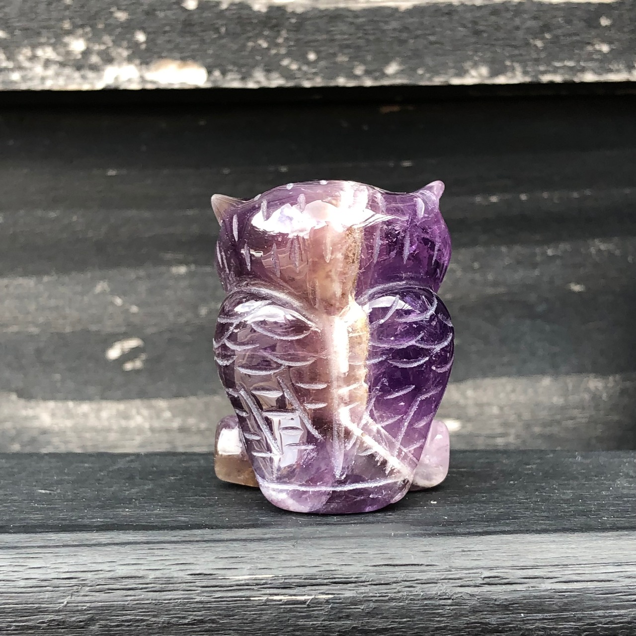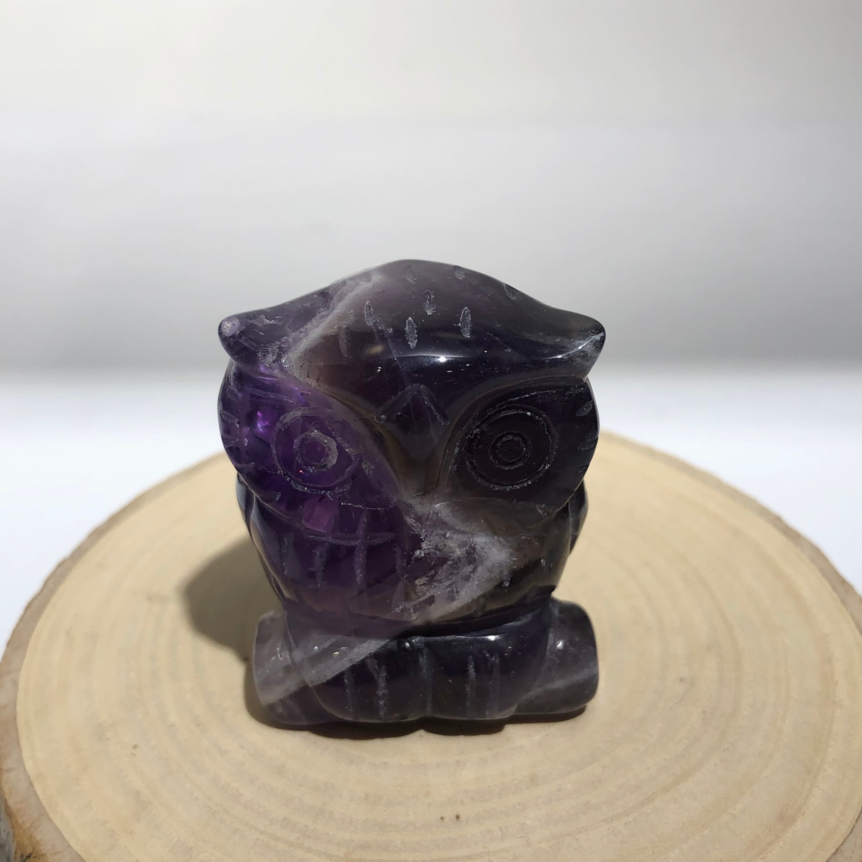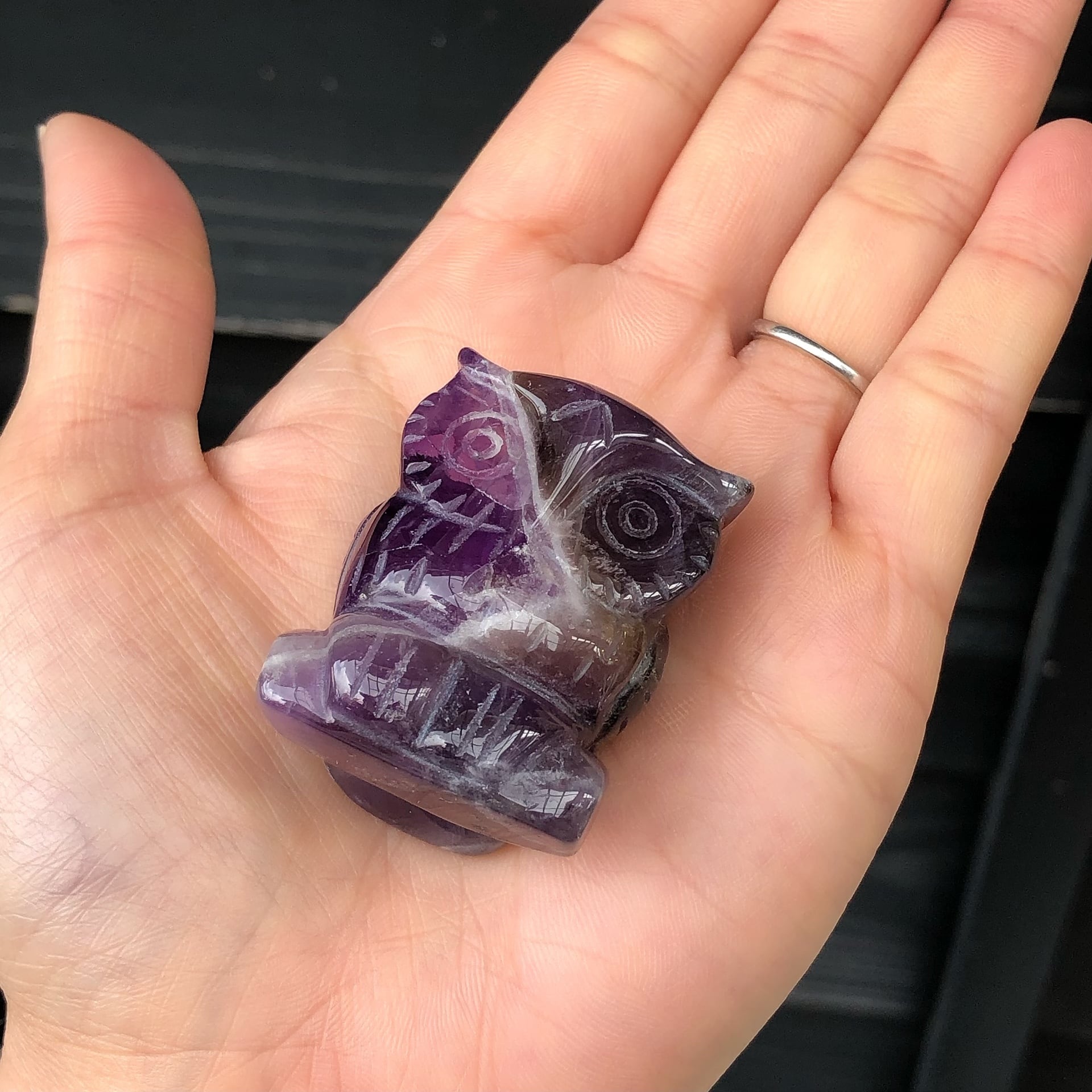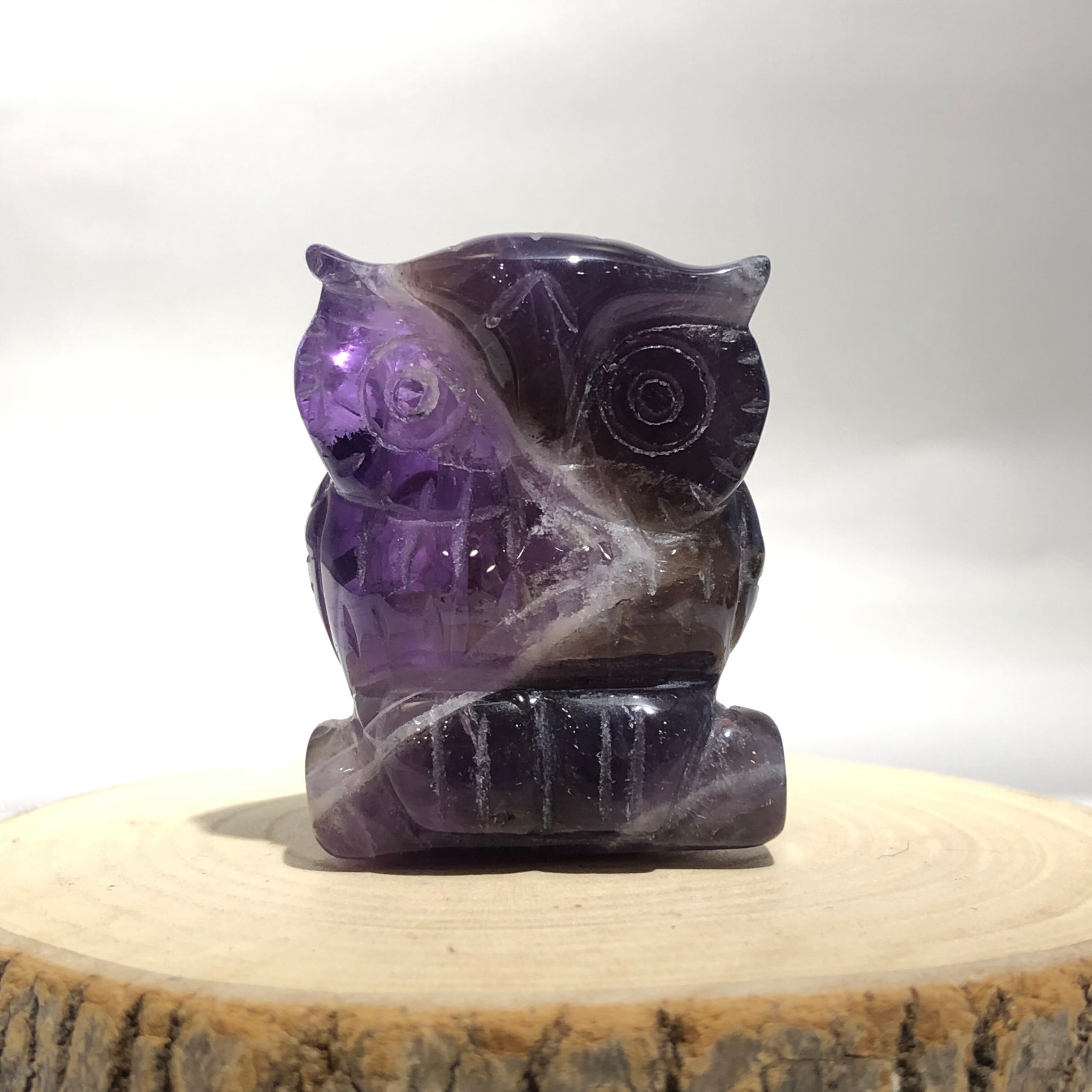 【h376d】天然石ふくろう置き物【アメジスト】厄除け
