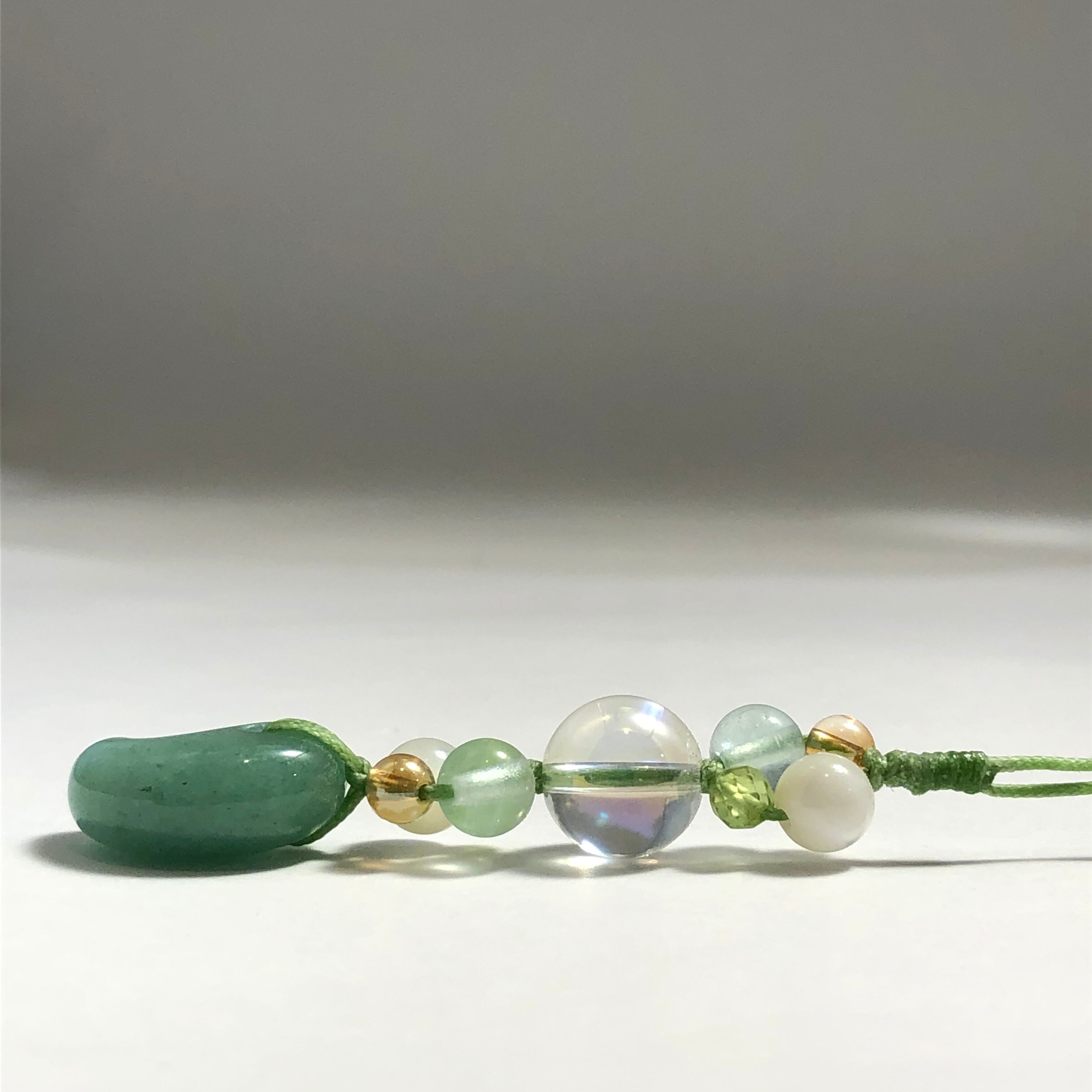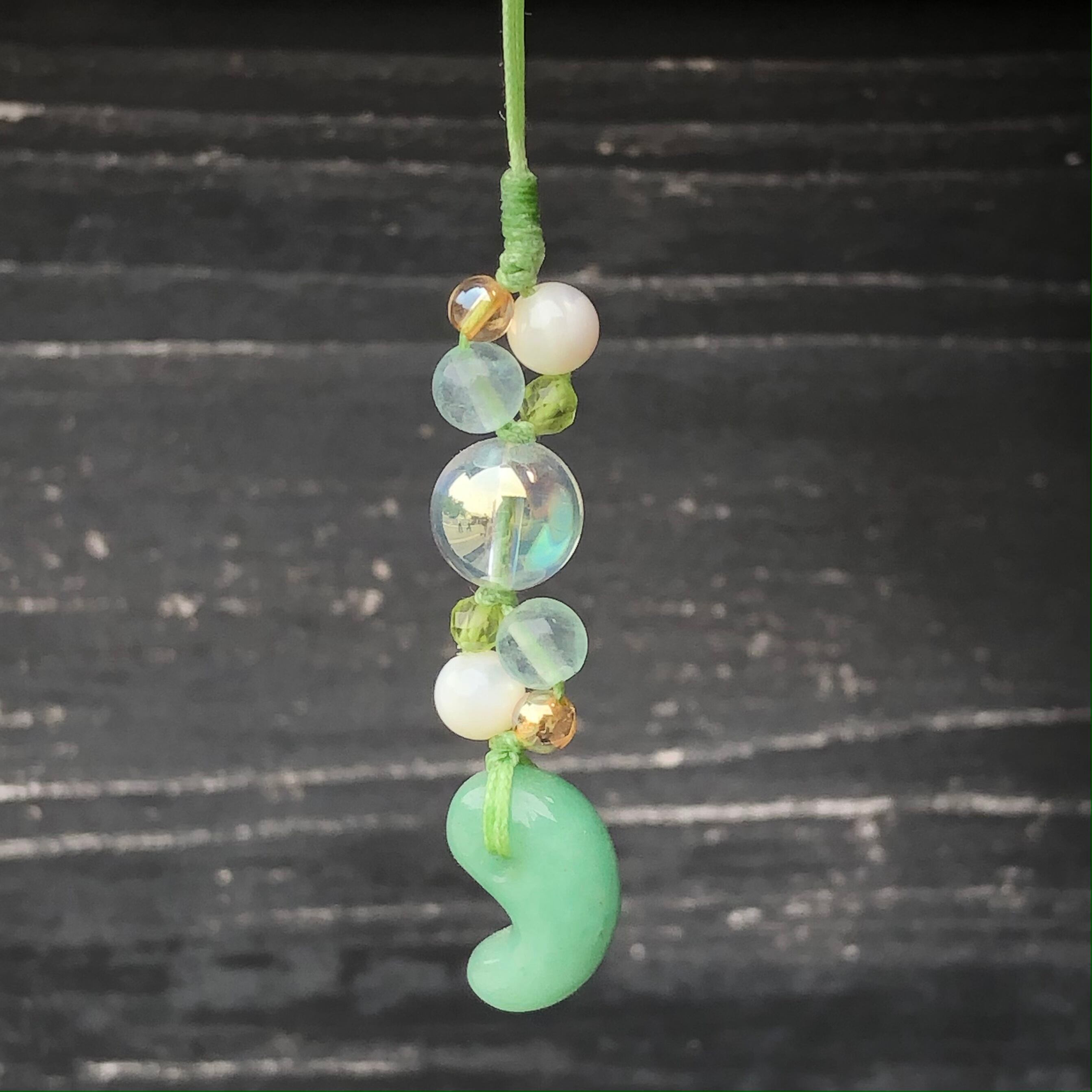 アベンチュリン(勾玉)、ホワイトオーロラクォーツ、マザーオブパール、グリーンフローライト、ペリドット、ゴールデンオーラクォーツ