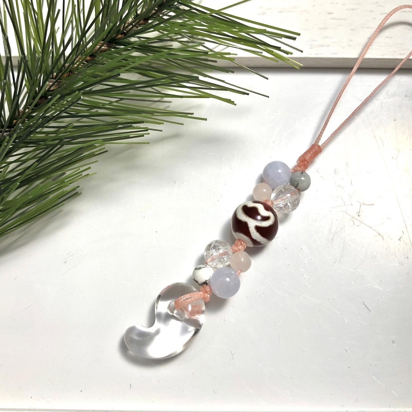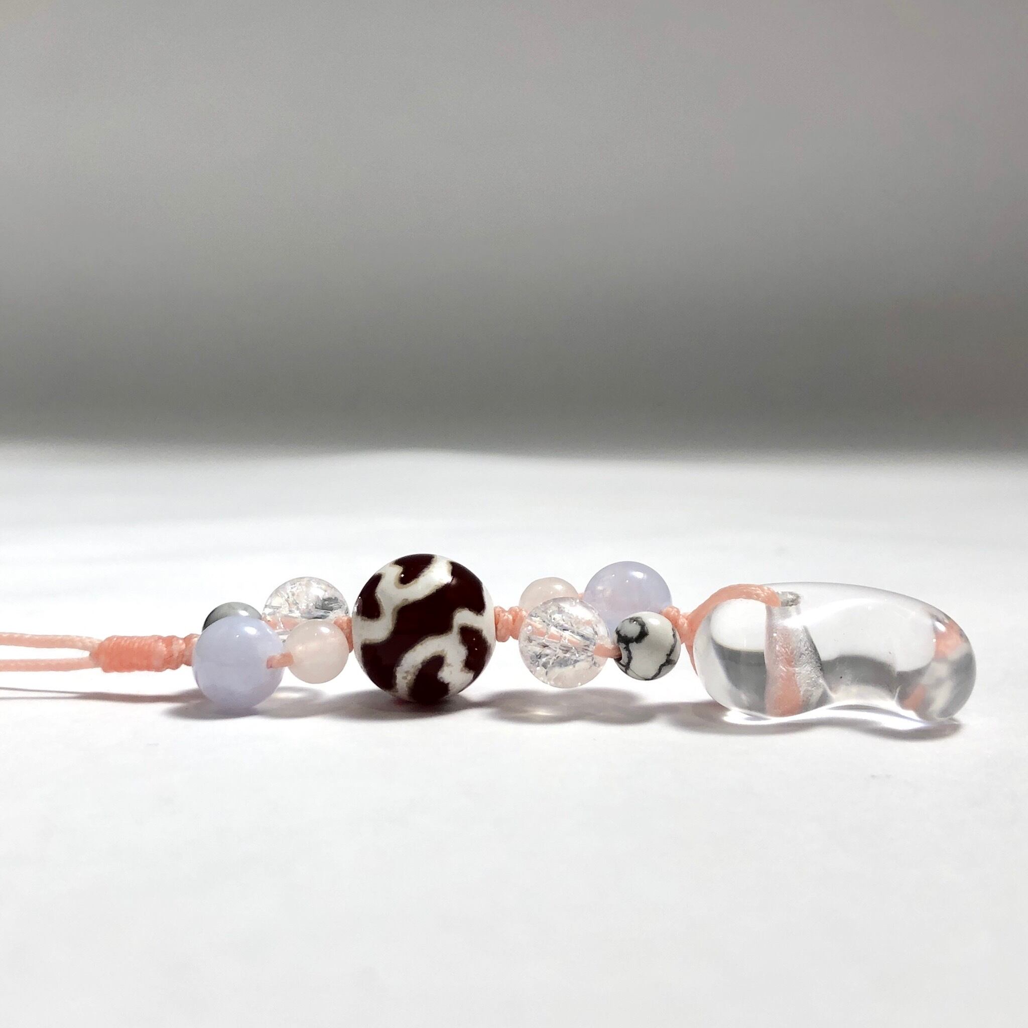 こちらは「蓮花天珠」と様々な天然石を組み合わせたストラップです。