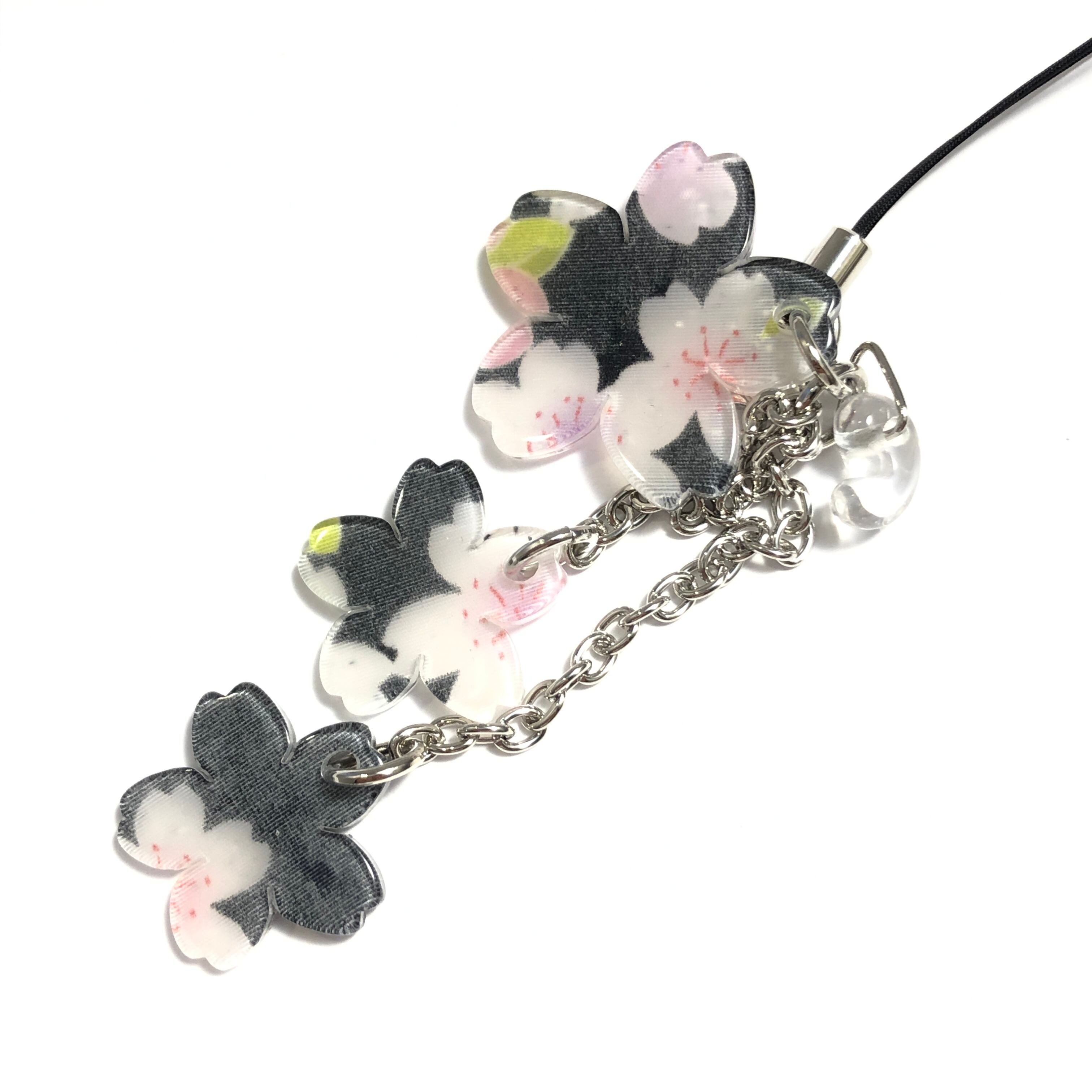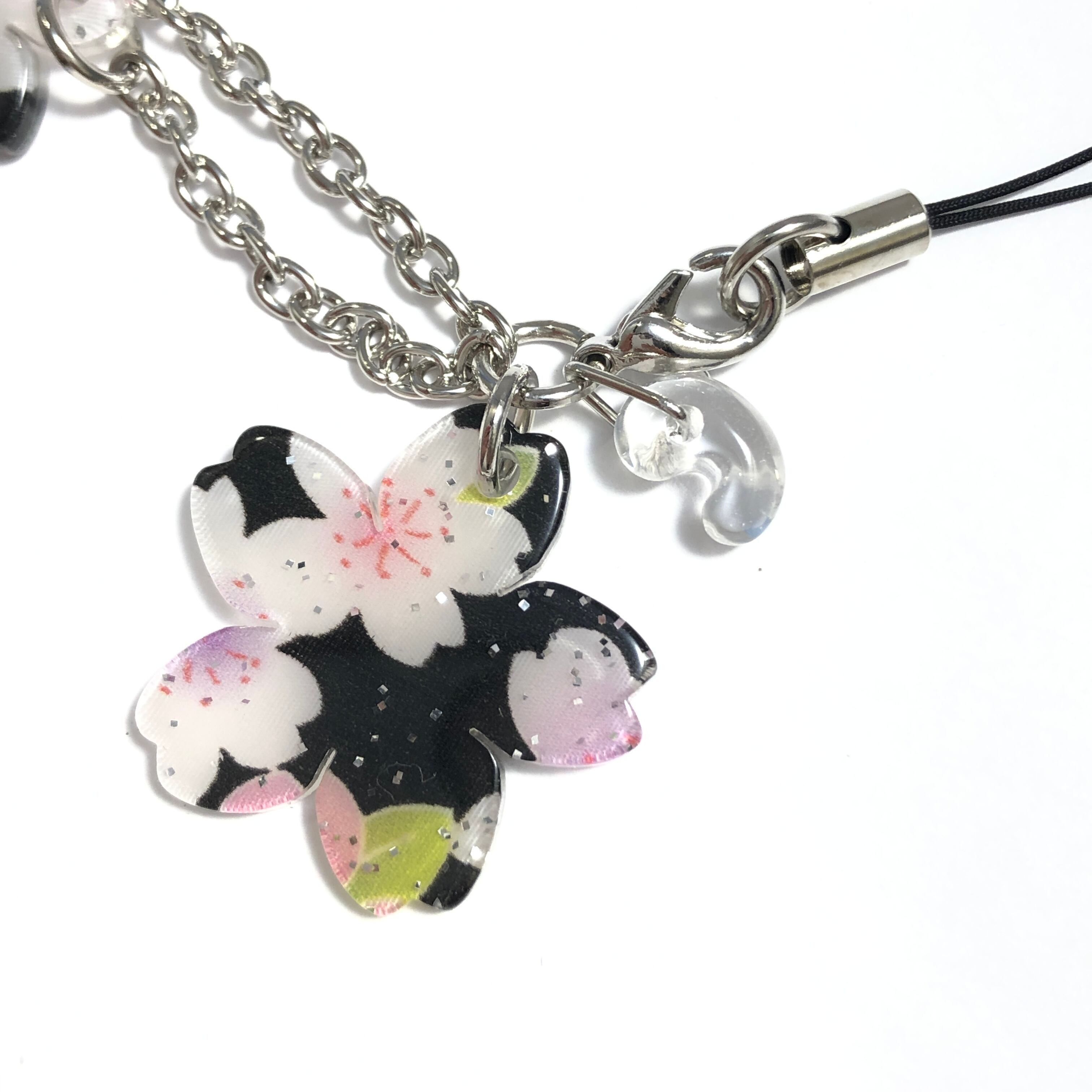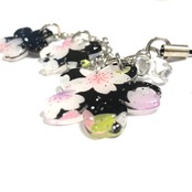 桜の花とキラキラしたラメが夜桜を思わせる、桜のストラップです。
