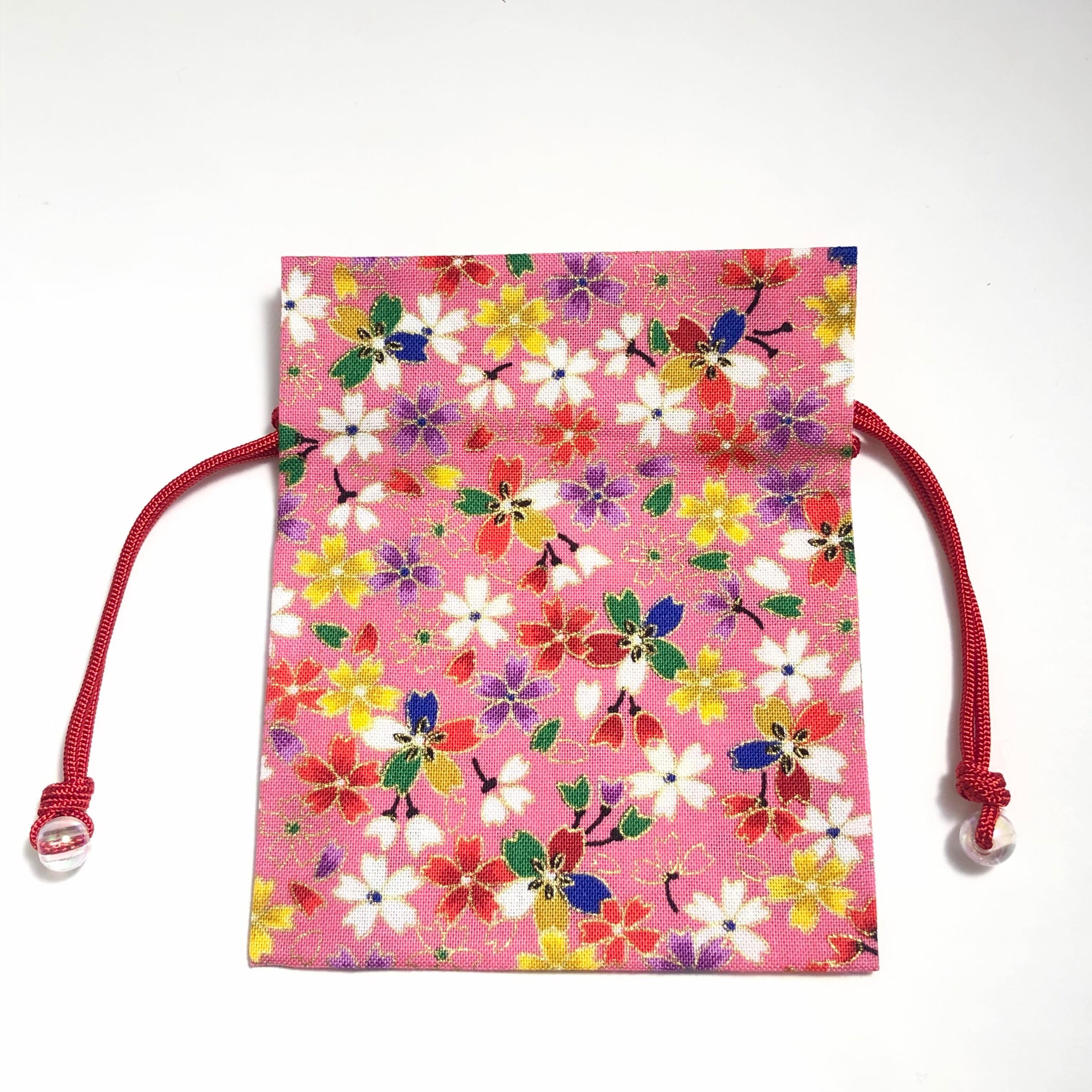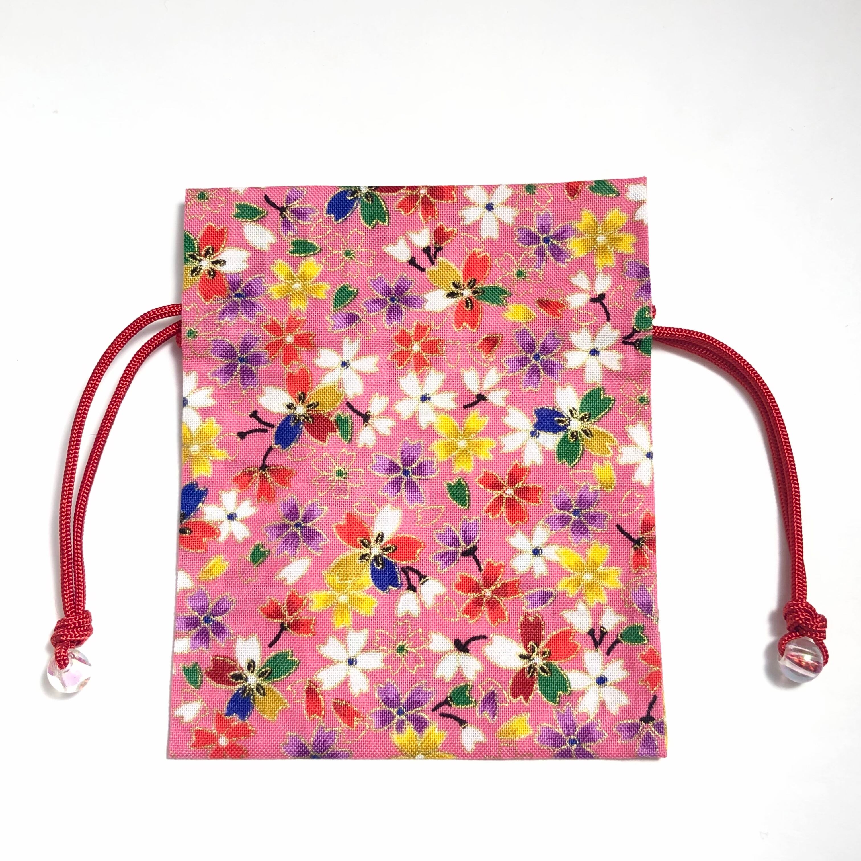 こちらはカラフルな桜の花が散りばめられた華やかなピンク色の巾着です♡