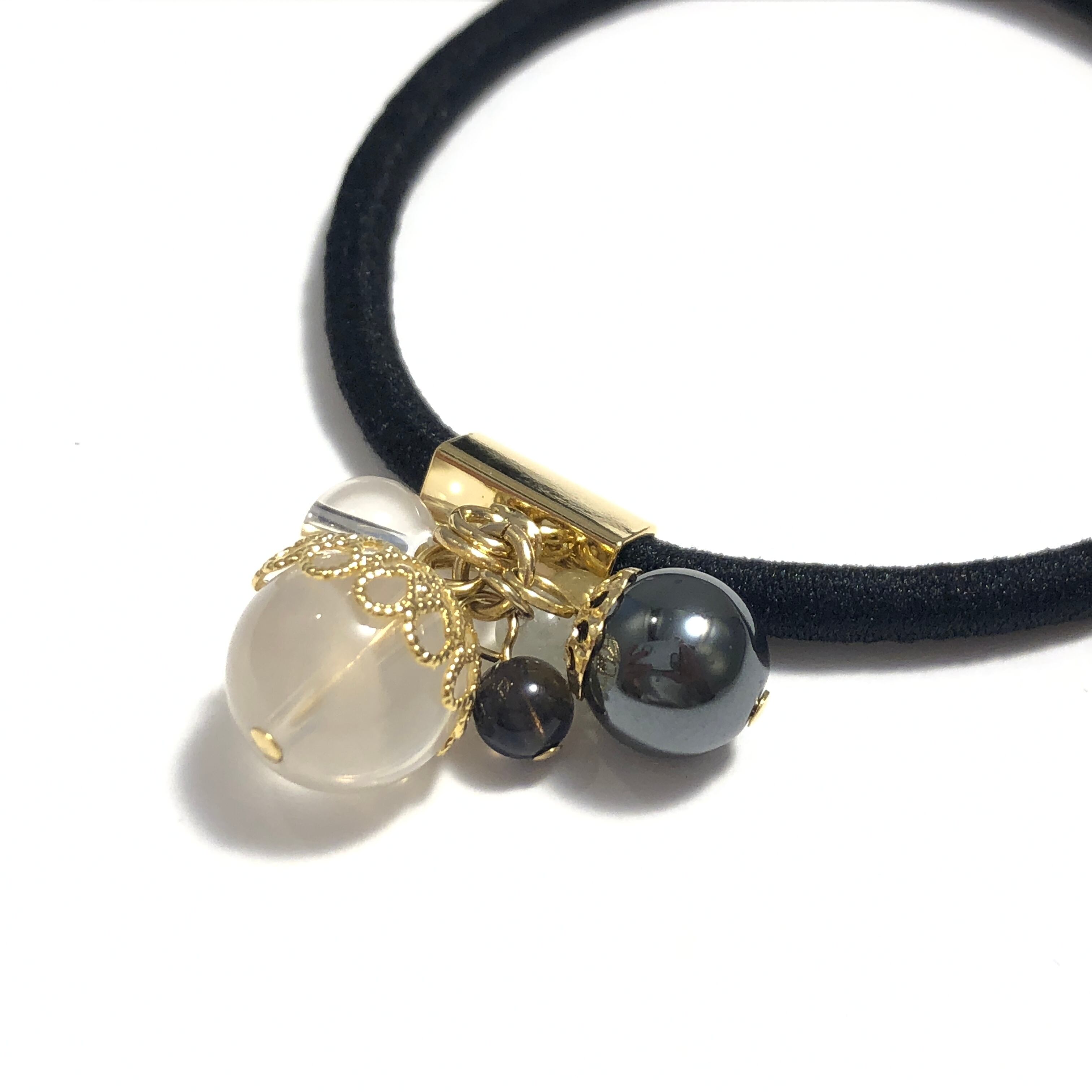 こちらはモノクロでシンプルな色合いと質感が楽しめるヘアゴムに仕上がっています♪