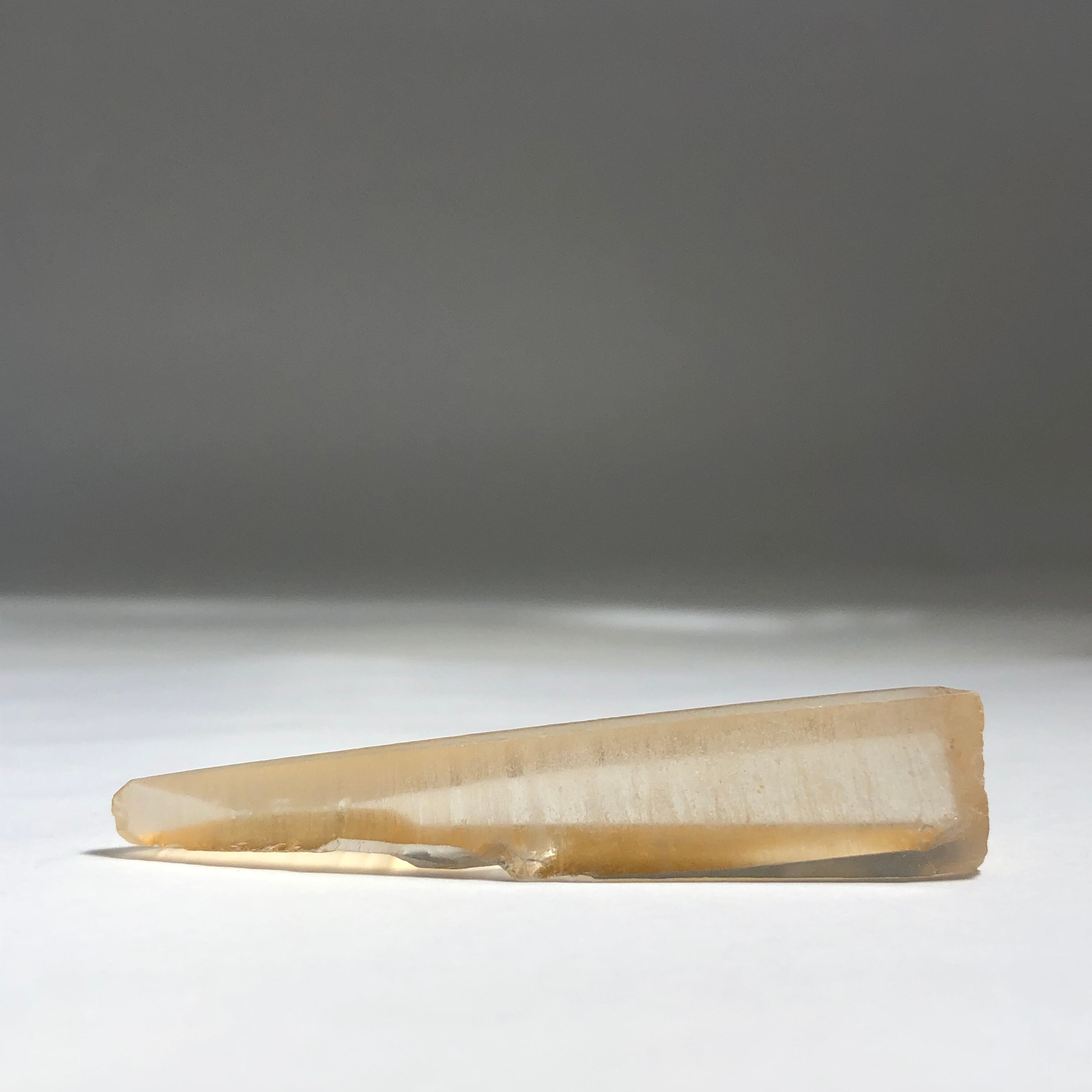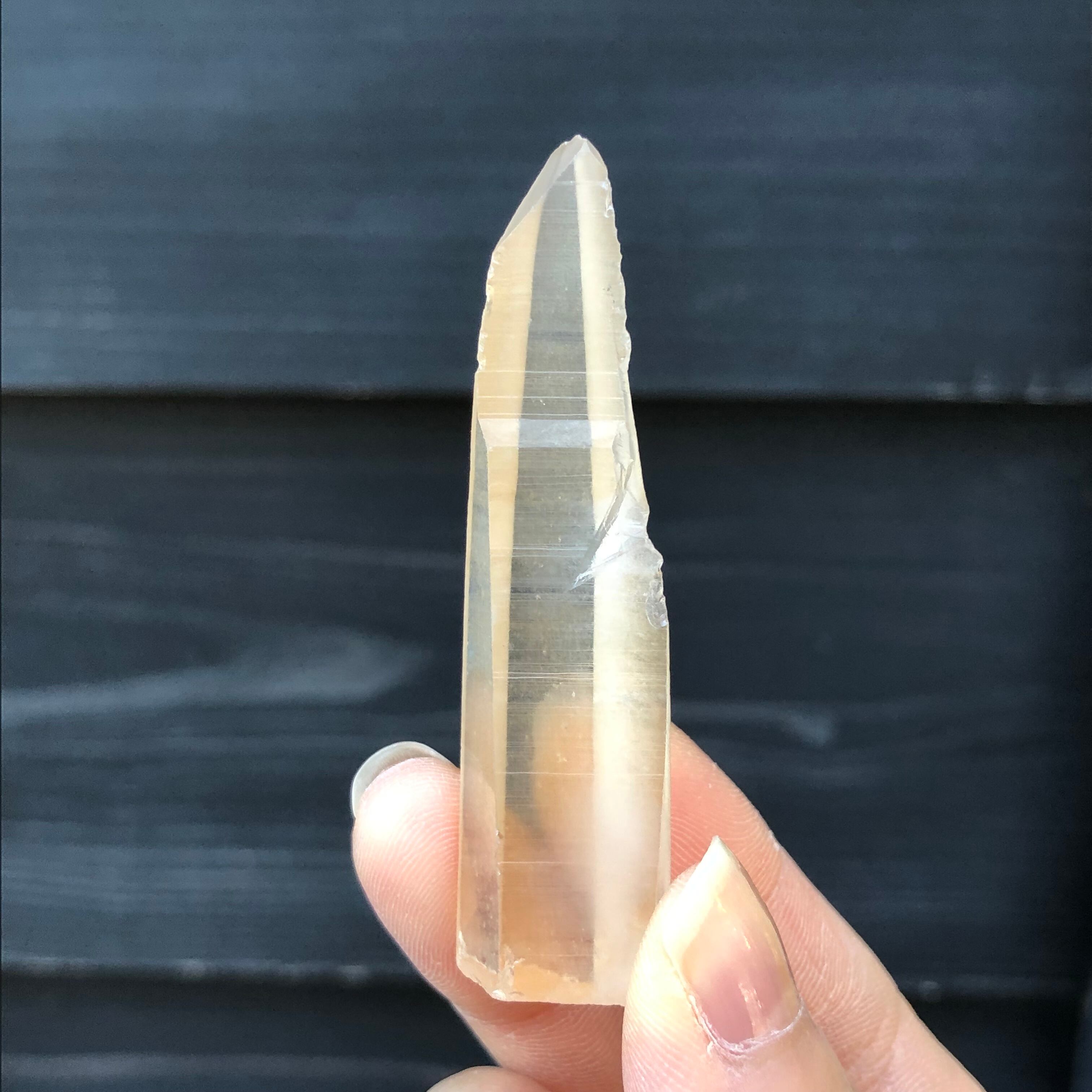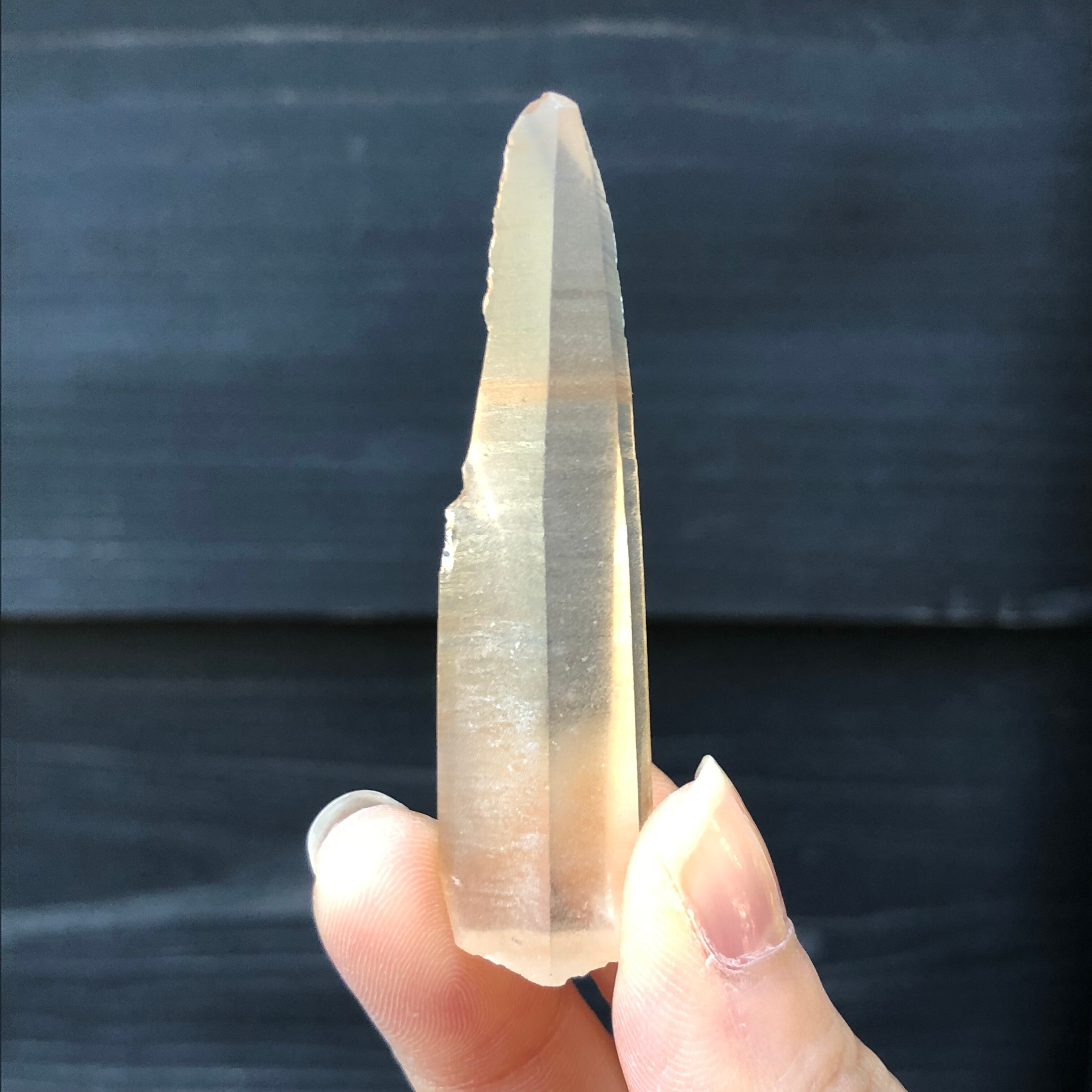 その中でもこのタンジェリンレムリアンクォーツは、結晶の側面にバーコード状の成長線が見られる「レムリアンクォーツ」という水晶にヘマタイトが付着、酸化してオレンジ色になったものです。