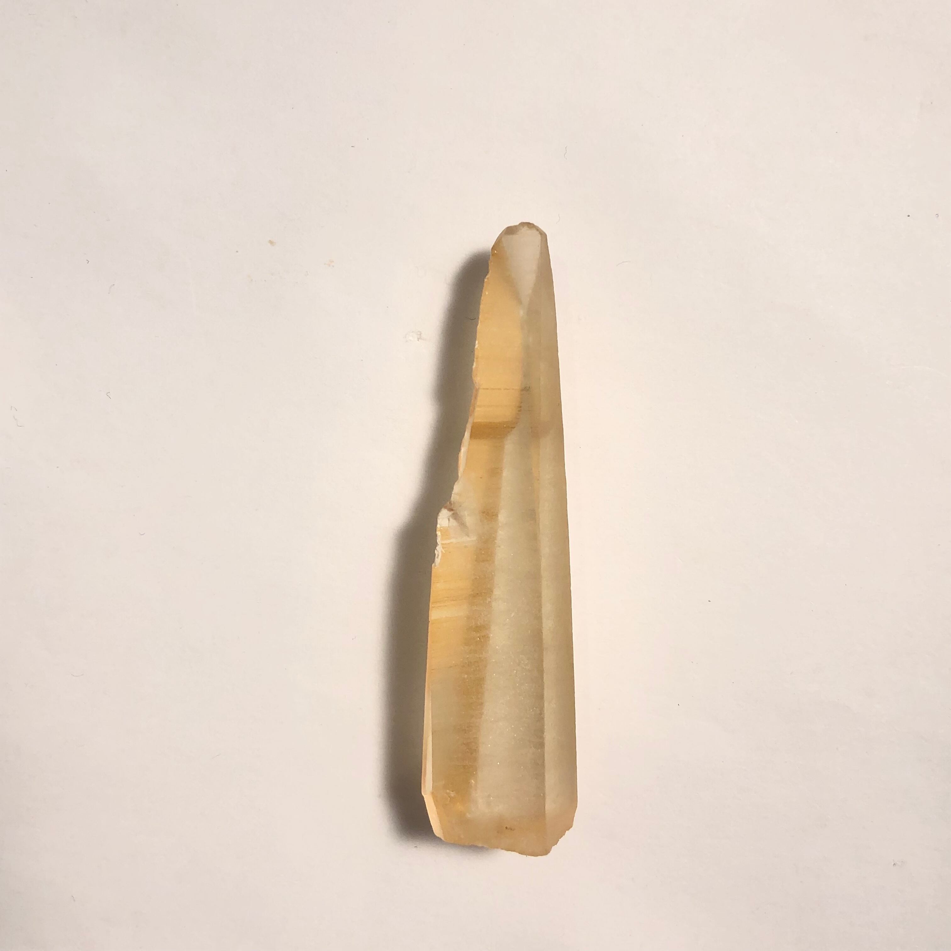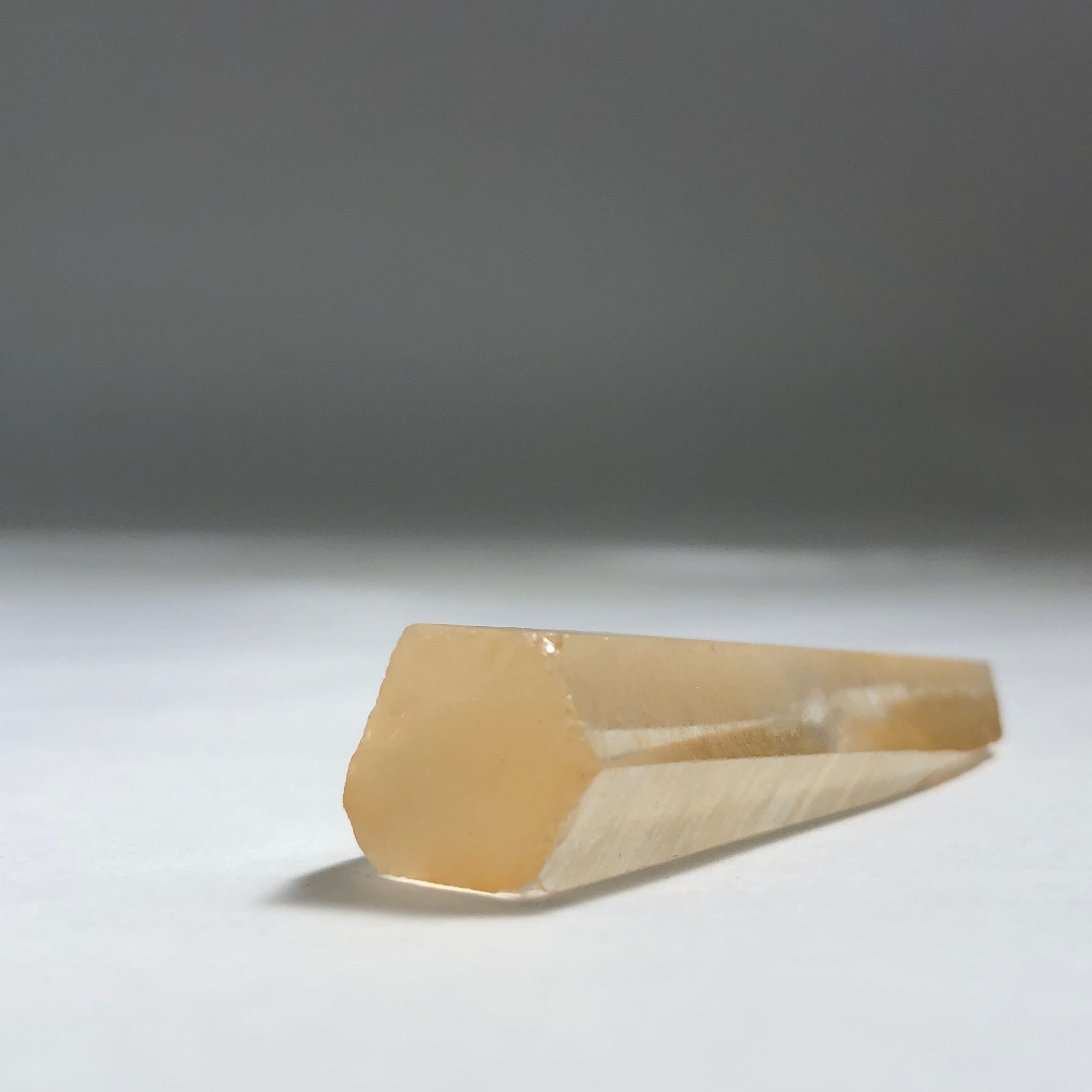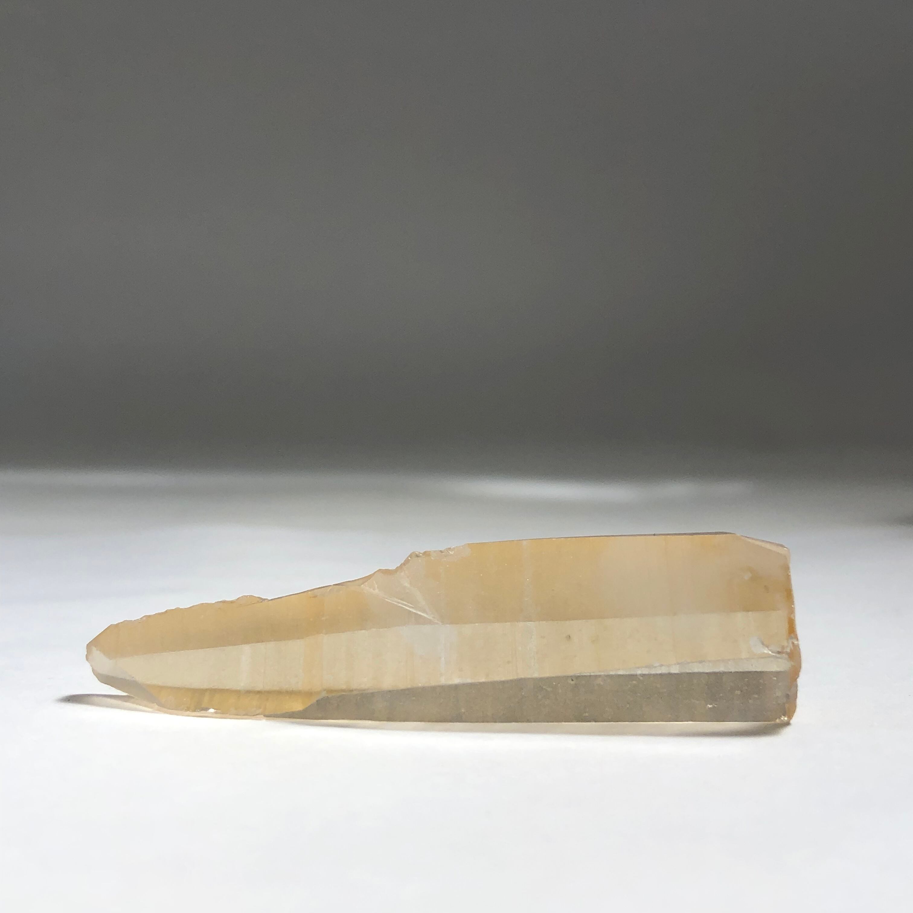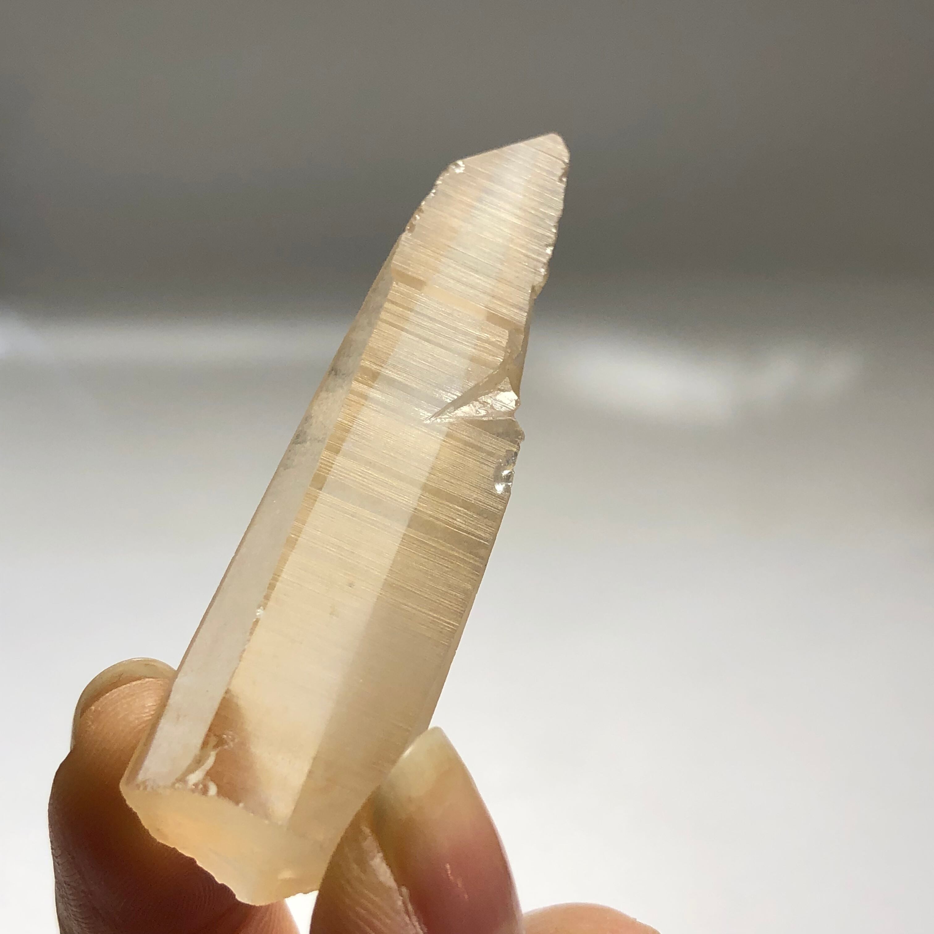 その中でもこのタンジェリンレムリアンクォーツは、結晶の側面にバーコード状の成長線が見られる「レムリアンクォーツ」という水晶にヘマタイトが付着、酸化してオレンジ色になったものです。