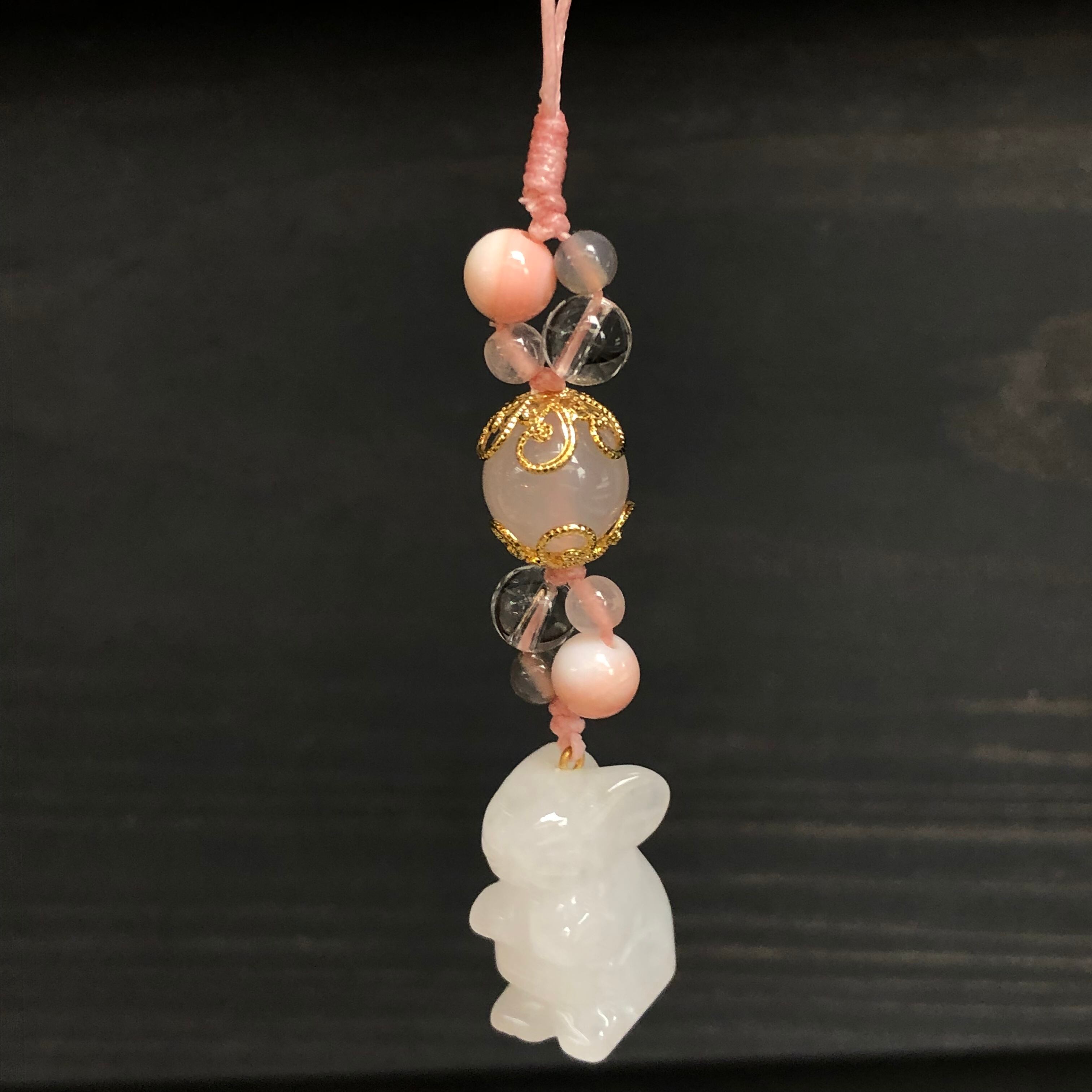 そんなうさぎと様々な天然石を組み合わせて、オリジナルのストラップを作りました!