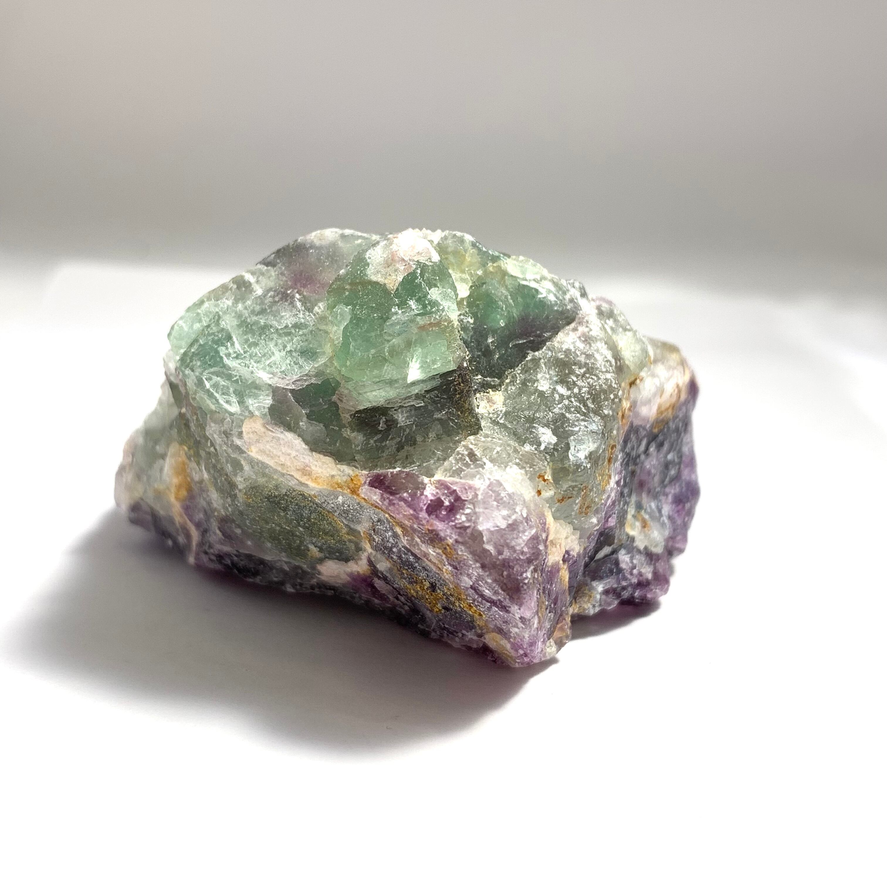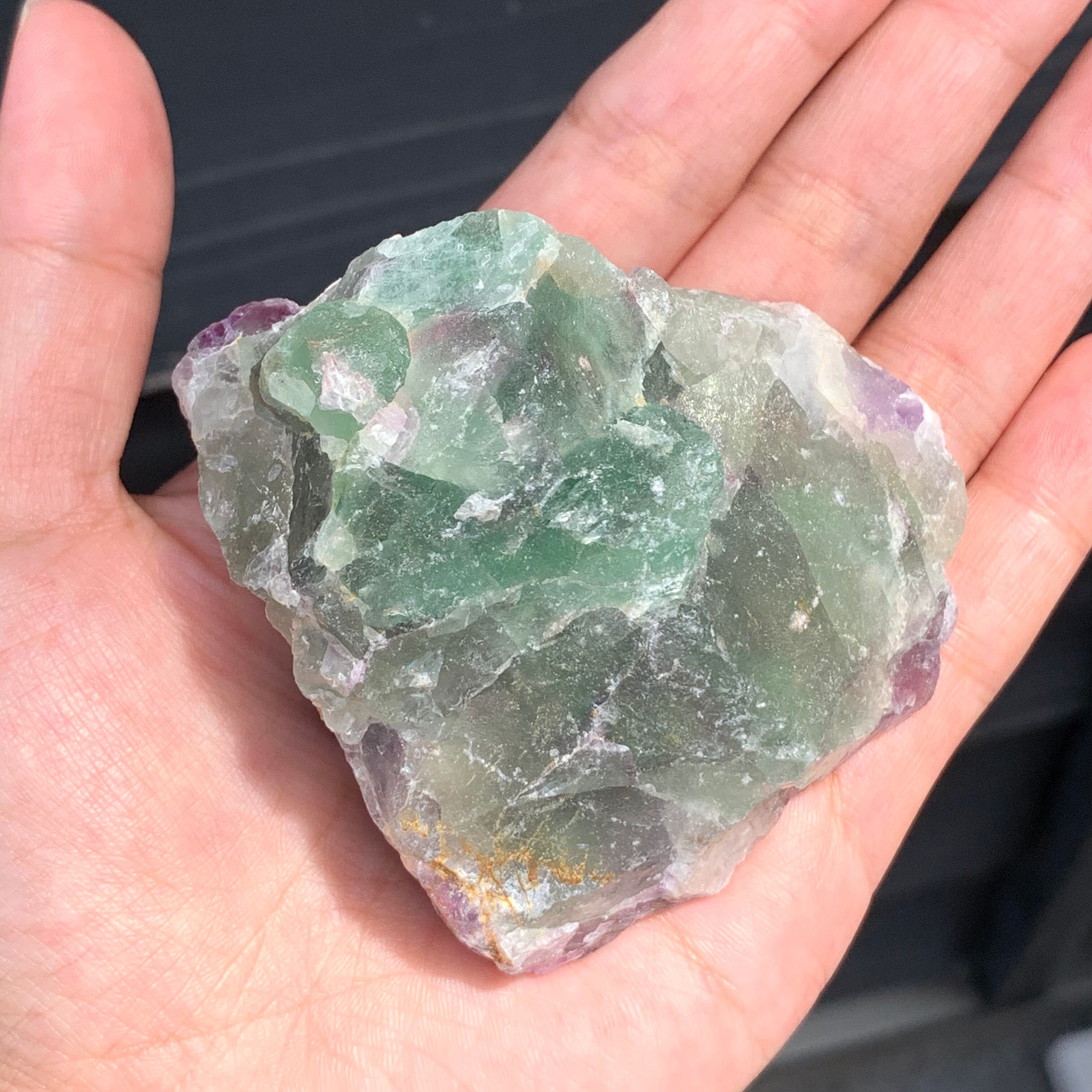 フローライトは別名『蛍石』といわれていて、ブラックライトを当てると綺麗な青色に光ります。
