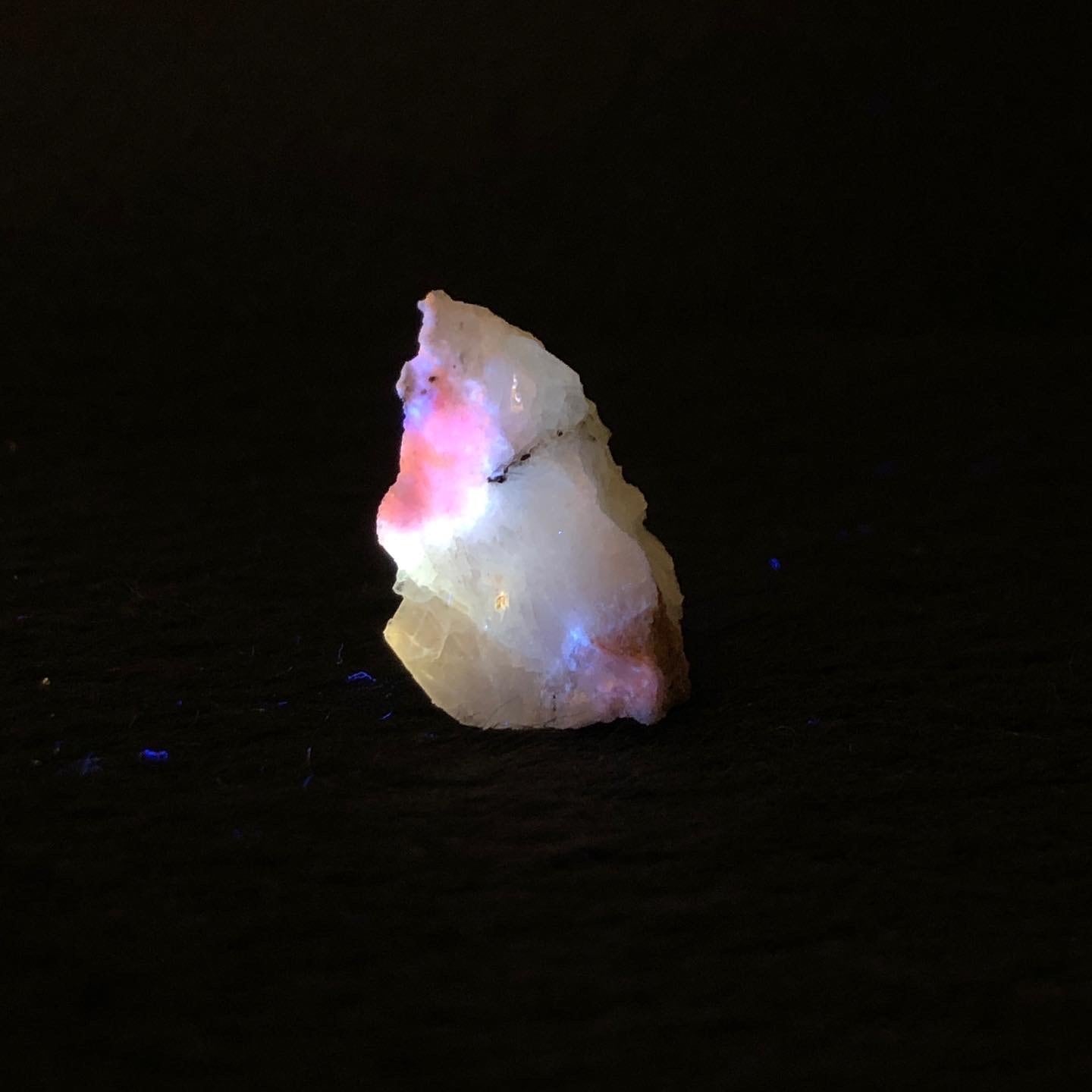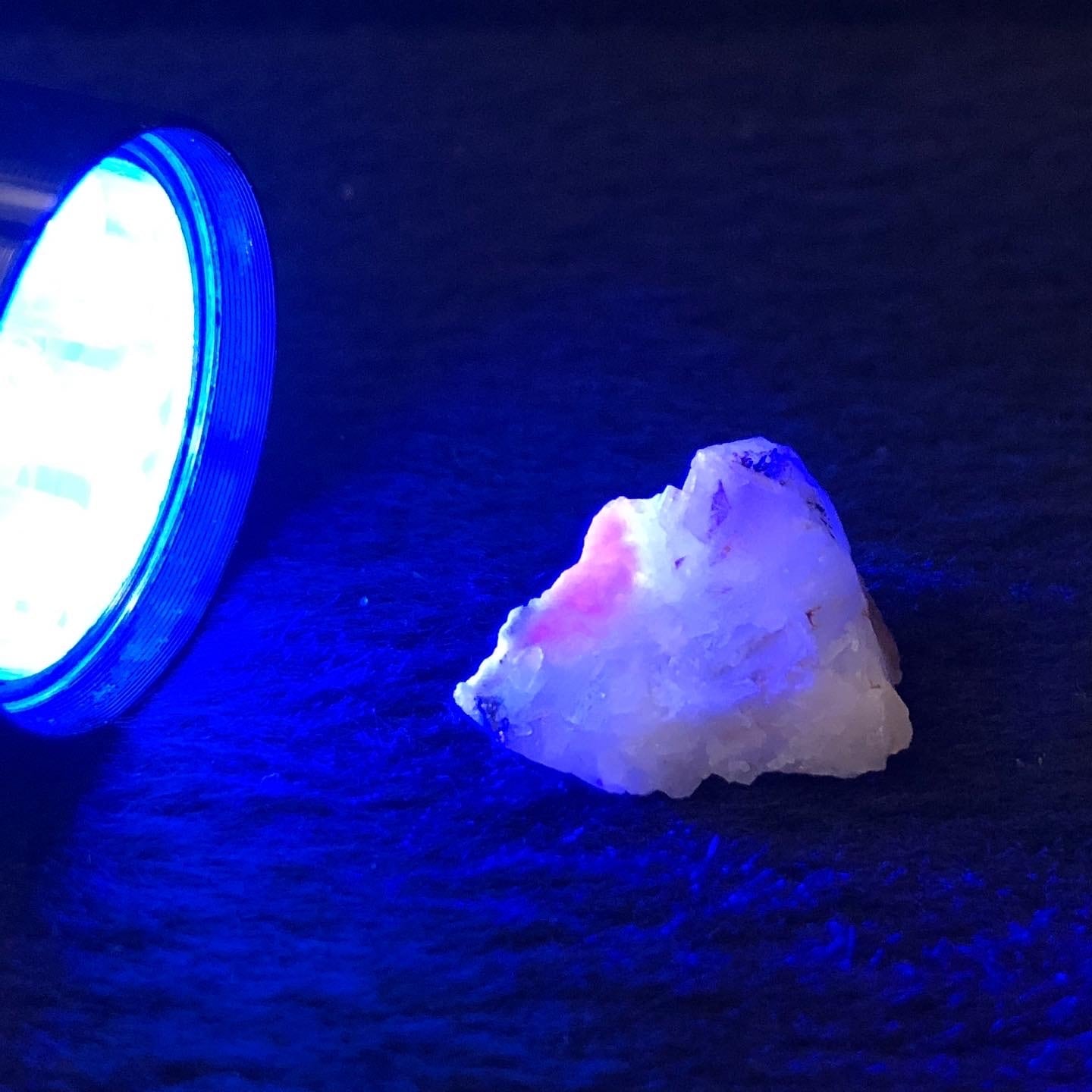 蛍光鉱物であり、ブラックライトを当てるとピンクやオレンジ色に発光します!