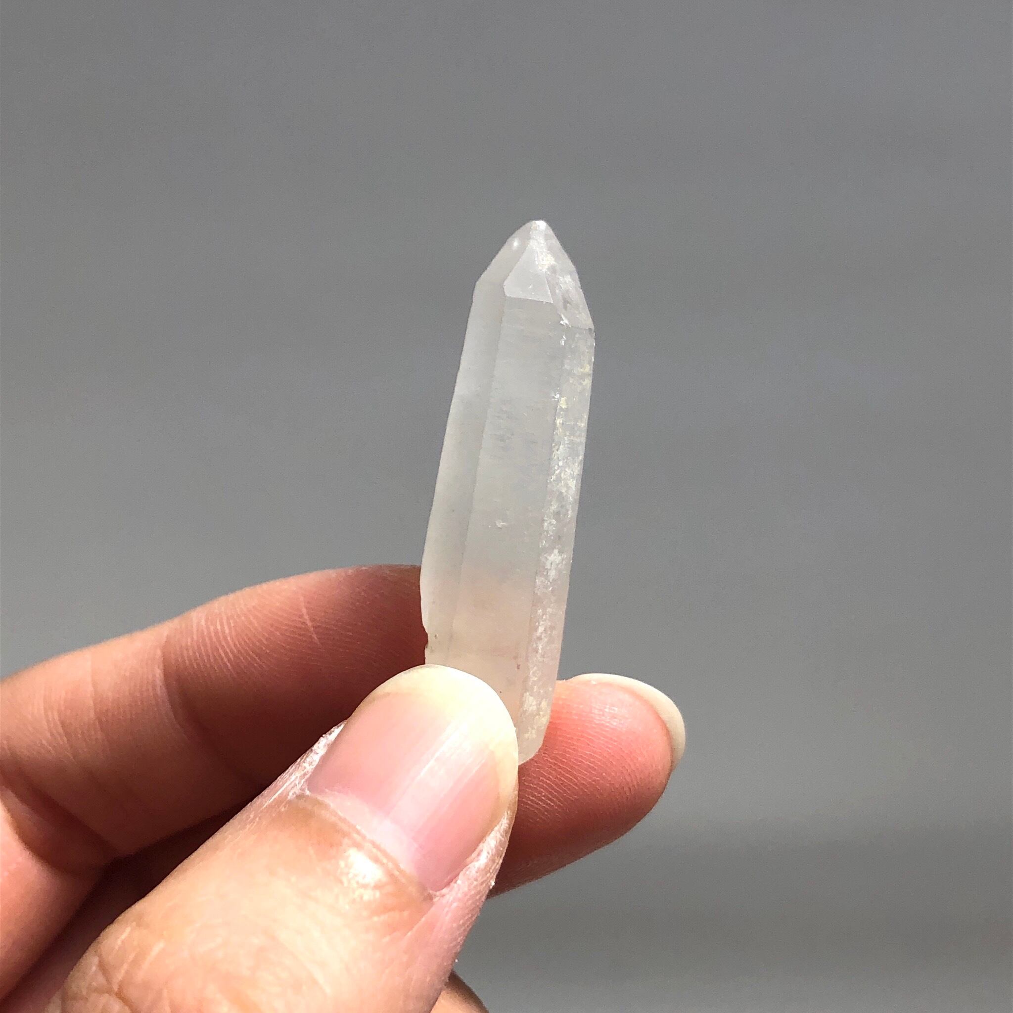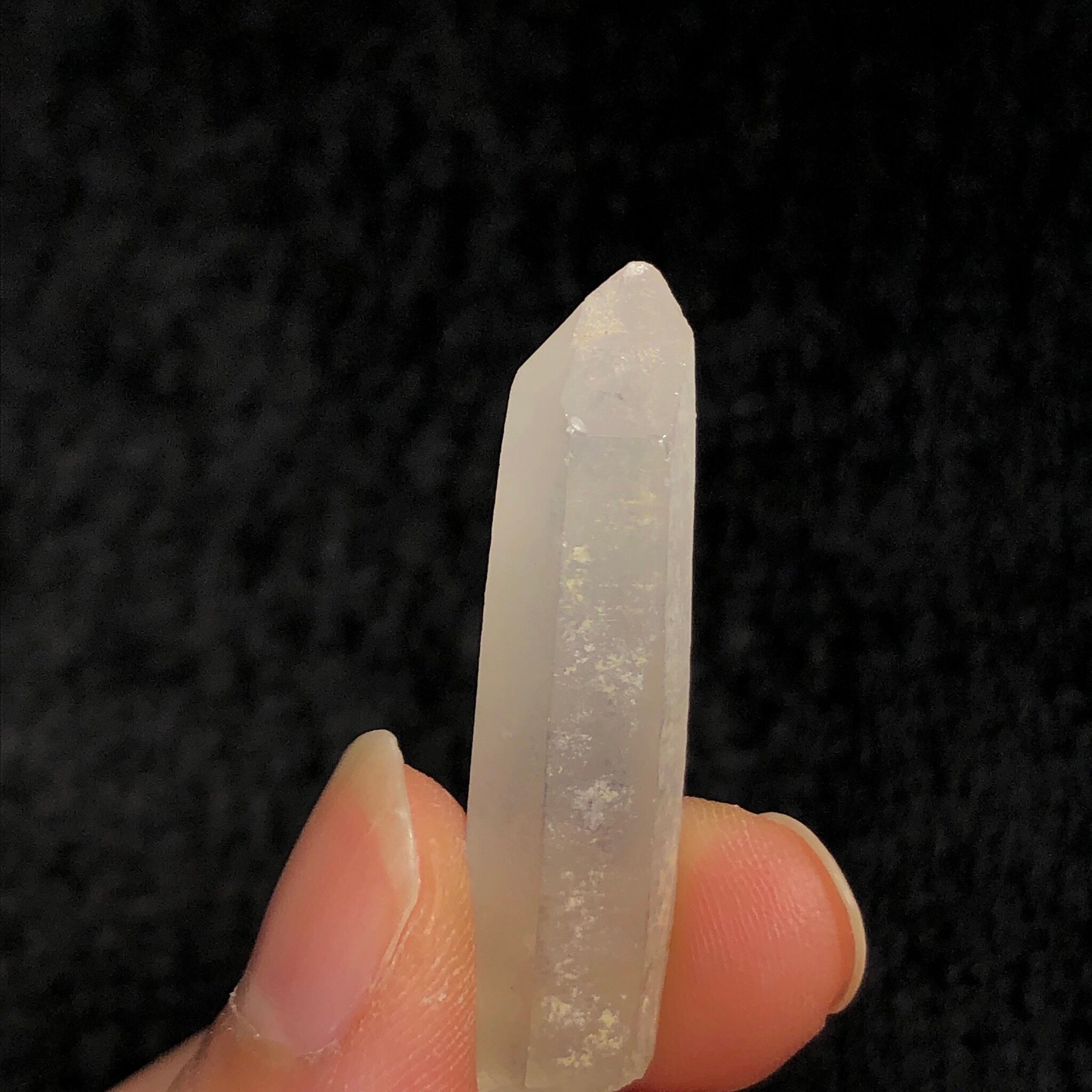 こちらは3〜4cmほどの水晶ポイントとなっており、霜をまとったようなマットな質感が魅力的です。