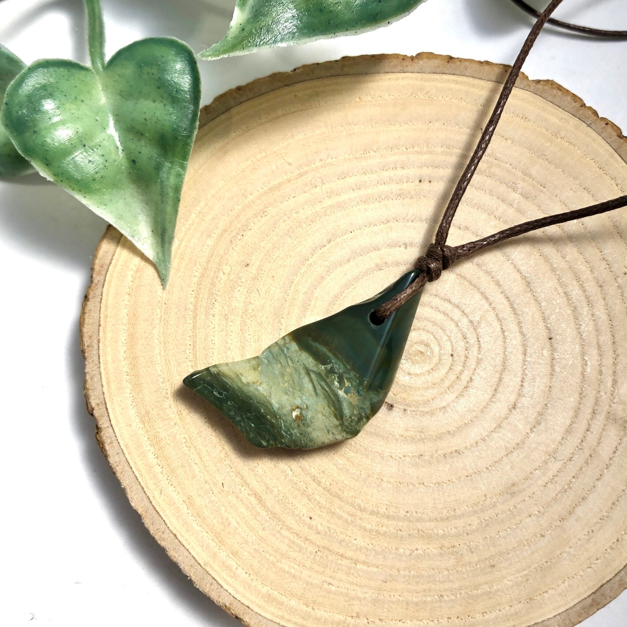 出雲めのう独特の深みのある緑色や、原石ならではの模様をお楽しみ頂けるペンダントですよ♪