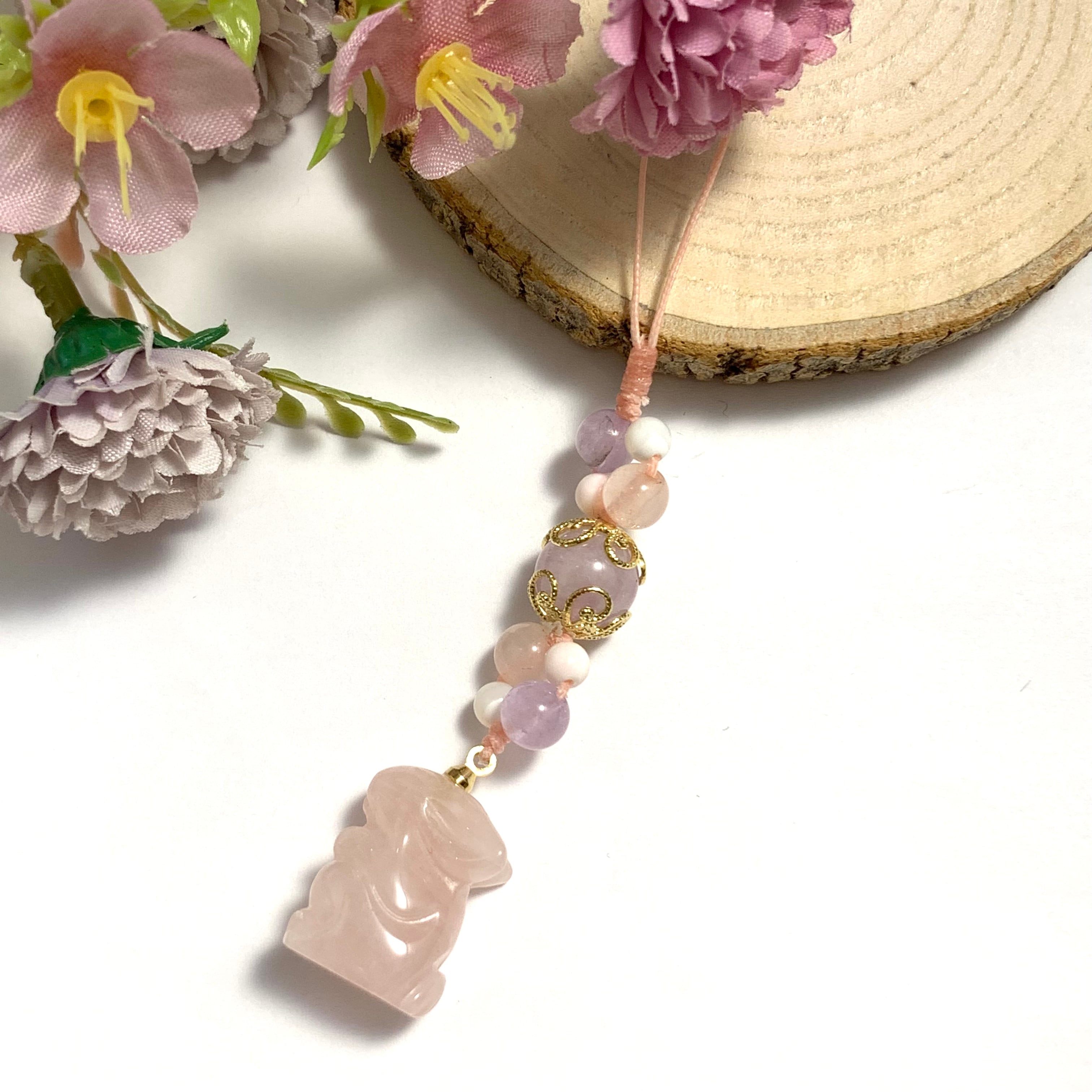 うさぎはローズクォーツで出来ており、愛と優しさ内面の美しさを輝かせるといわれています♡