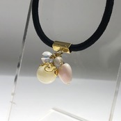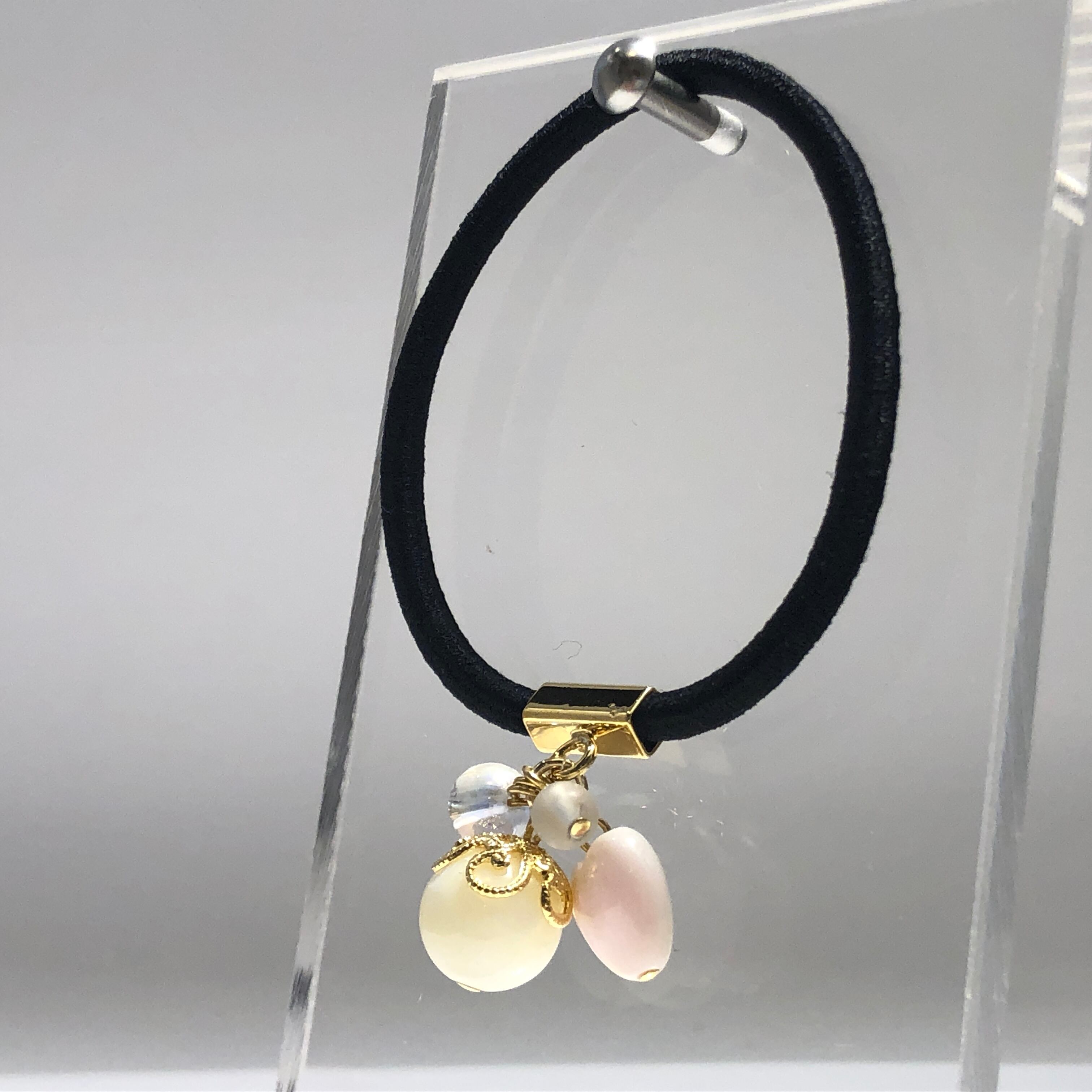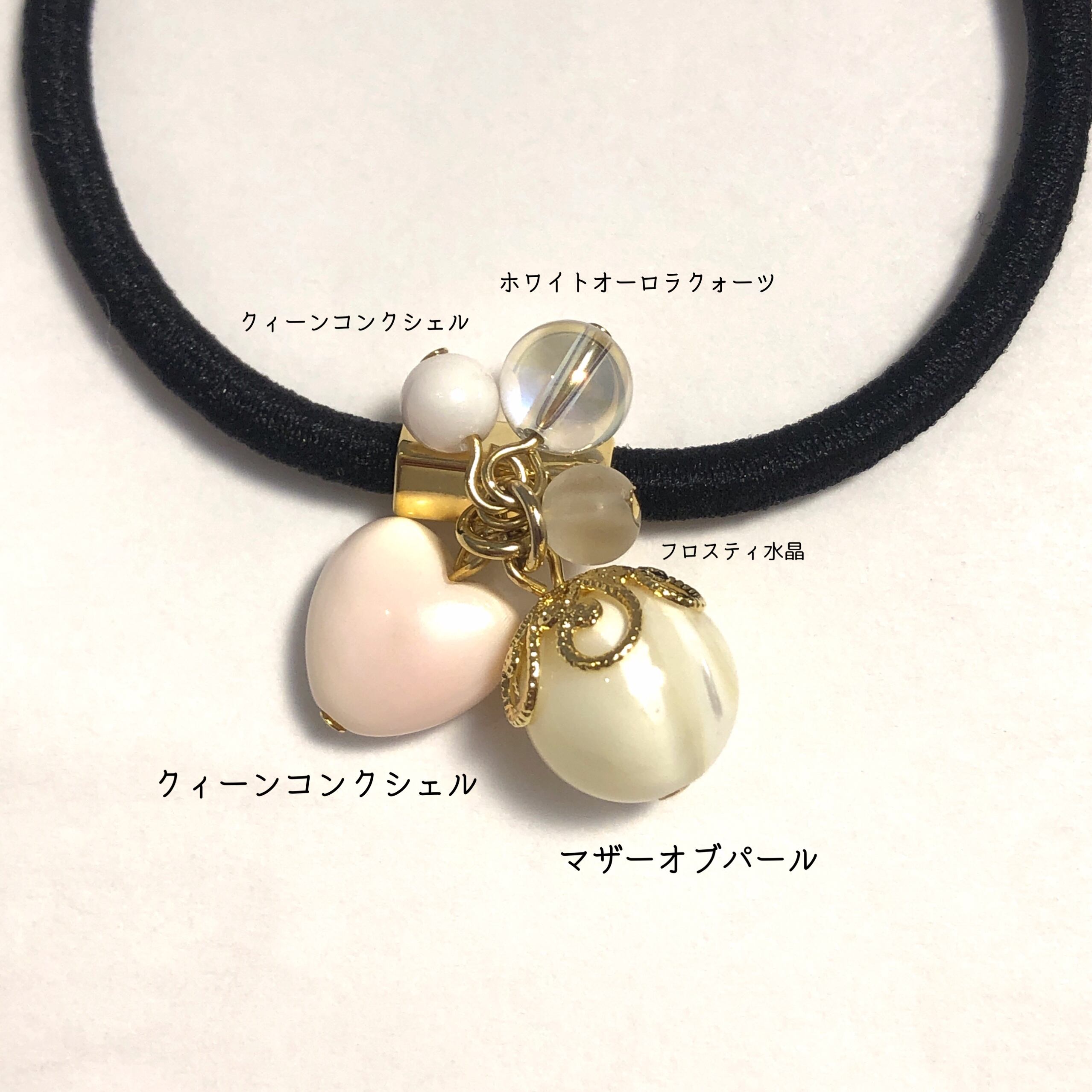 クィーンコンクシェルのハートと、沢山の天然石が付いたヘアゴムです。