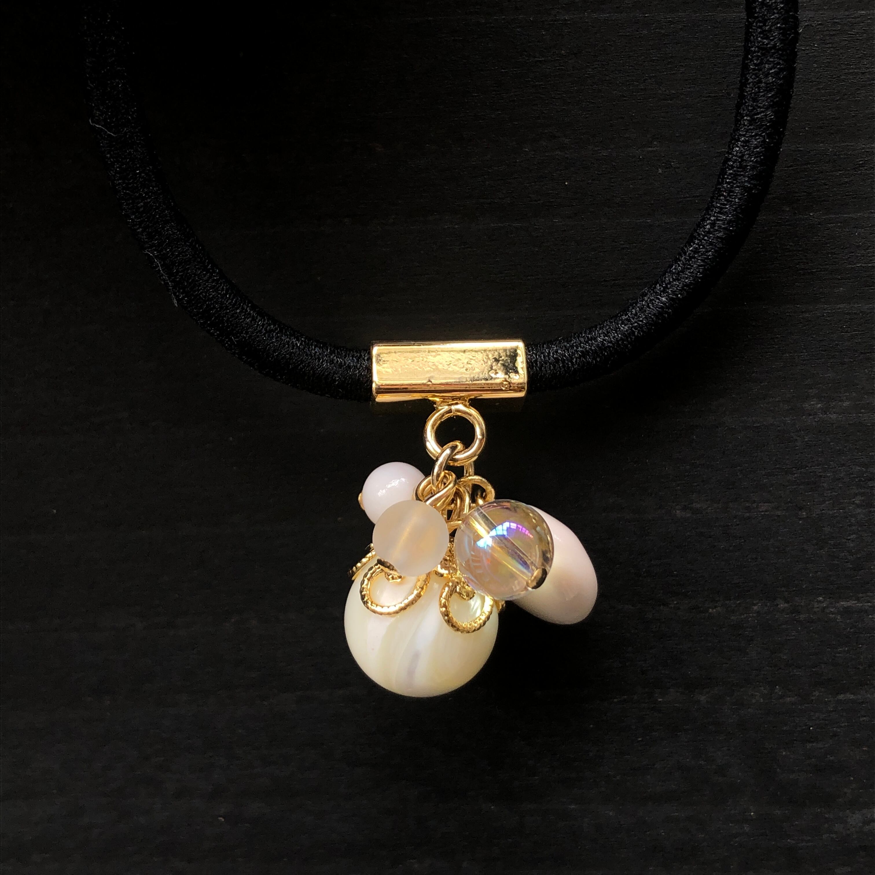 ■使用している石 クィーンコンクシェル(ハート)、マザーオブパール、ホワイトオーロラクォーツ、フロスティ水晶、クィーンコンクシェル