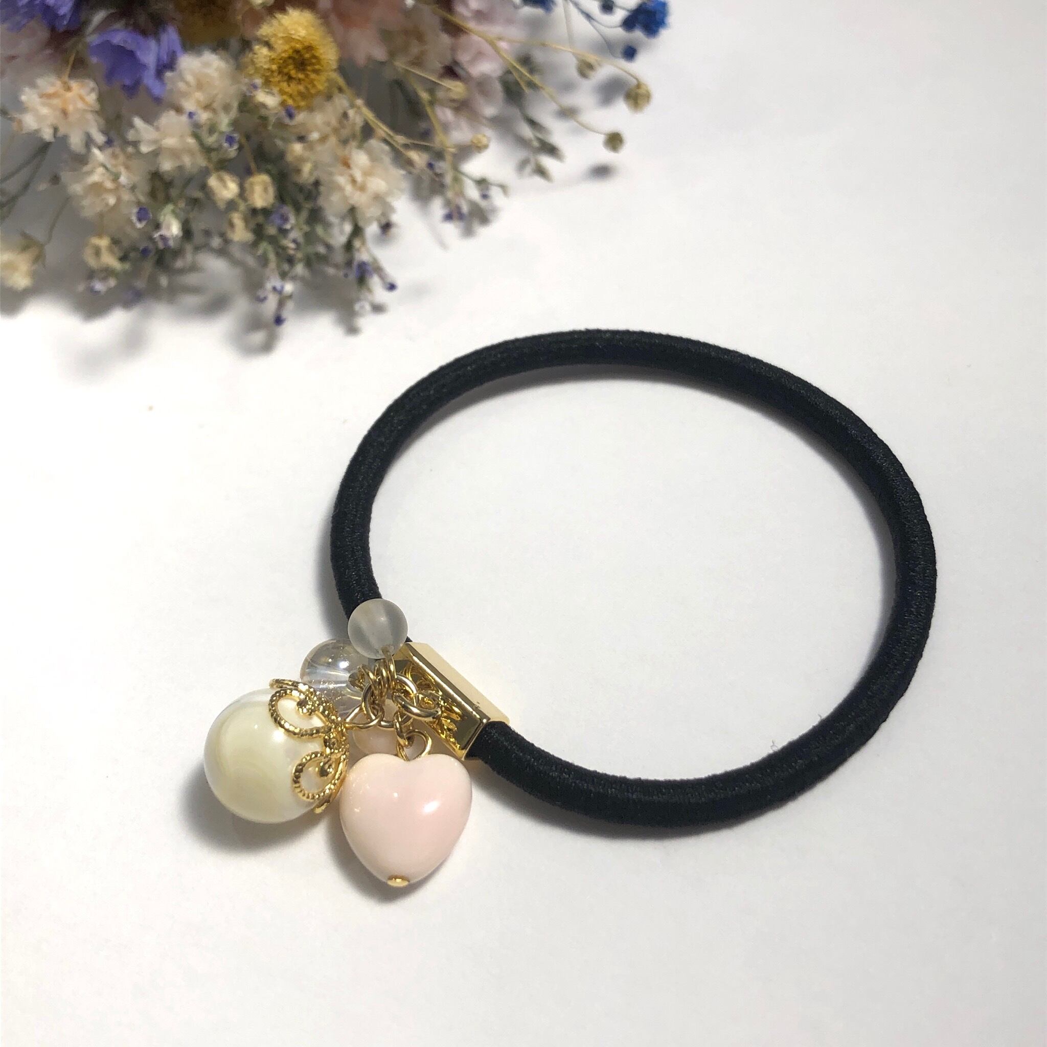 是非、可愛いハートの天然石たちが付いた当店オリジナルのヘアゴムで、運気アップしてみませんか?