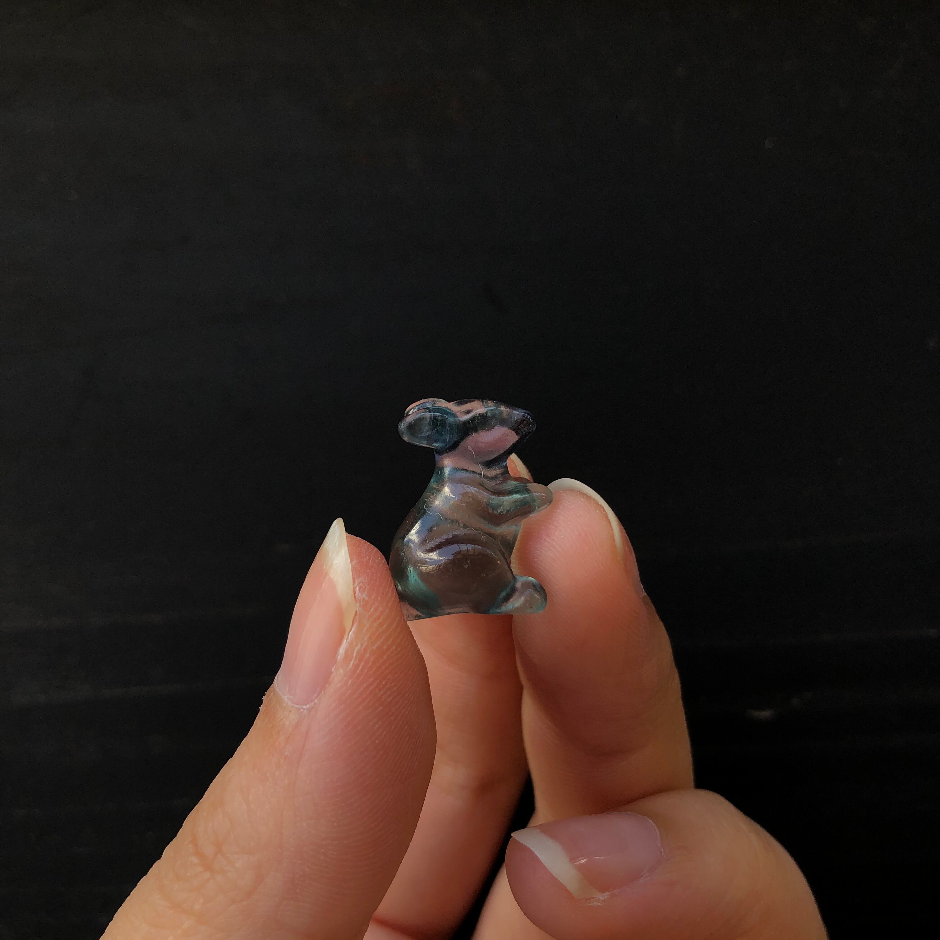 【h500d】うさぎの置き物 フローライト[青緑色]