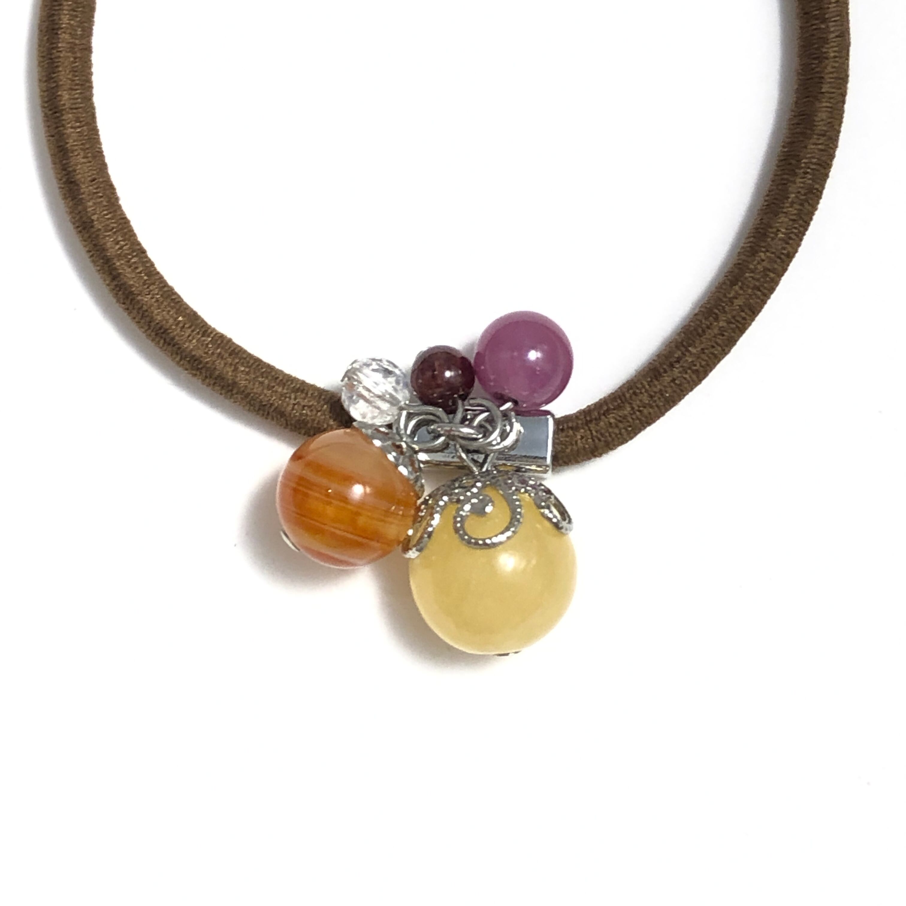 こちらは暖色系で明るく元気が出そうな色合いのヘアゴムに仕上がっています♪