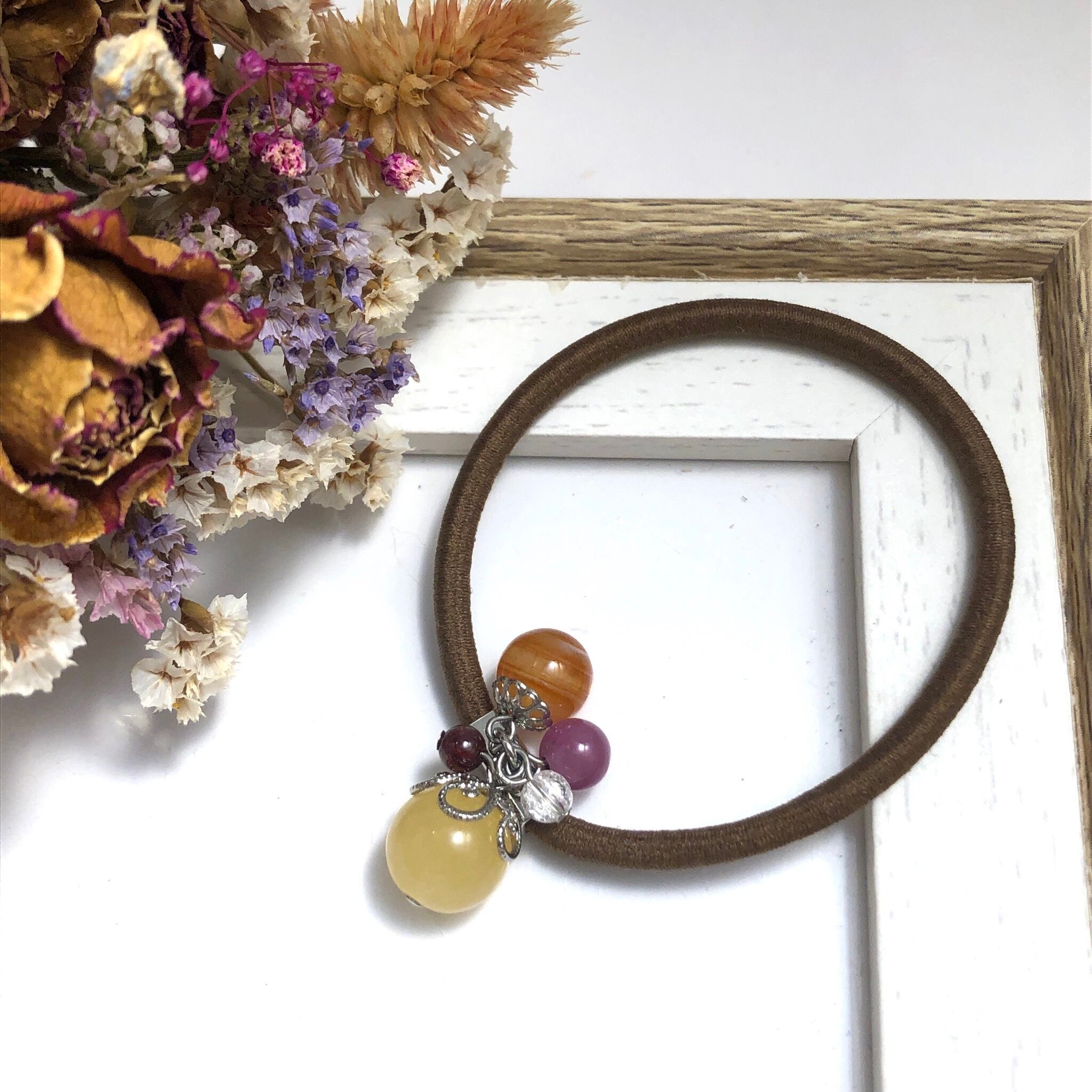 しし座(7/24〜8/23生まれ)の守護石を使用した天然石ヘアゴムです♡