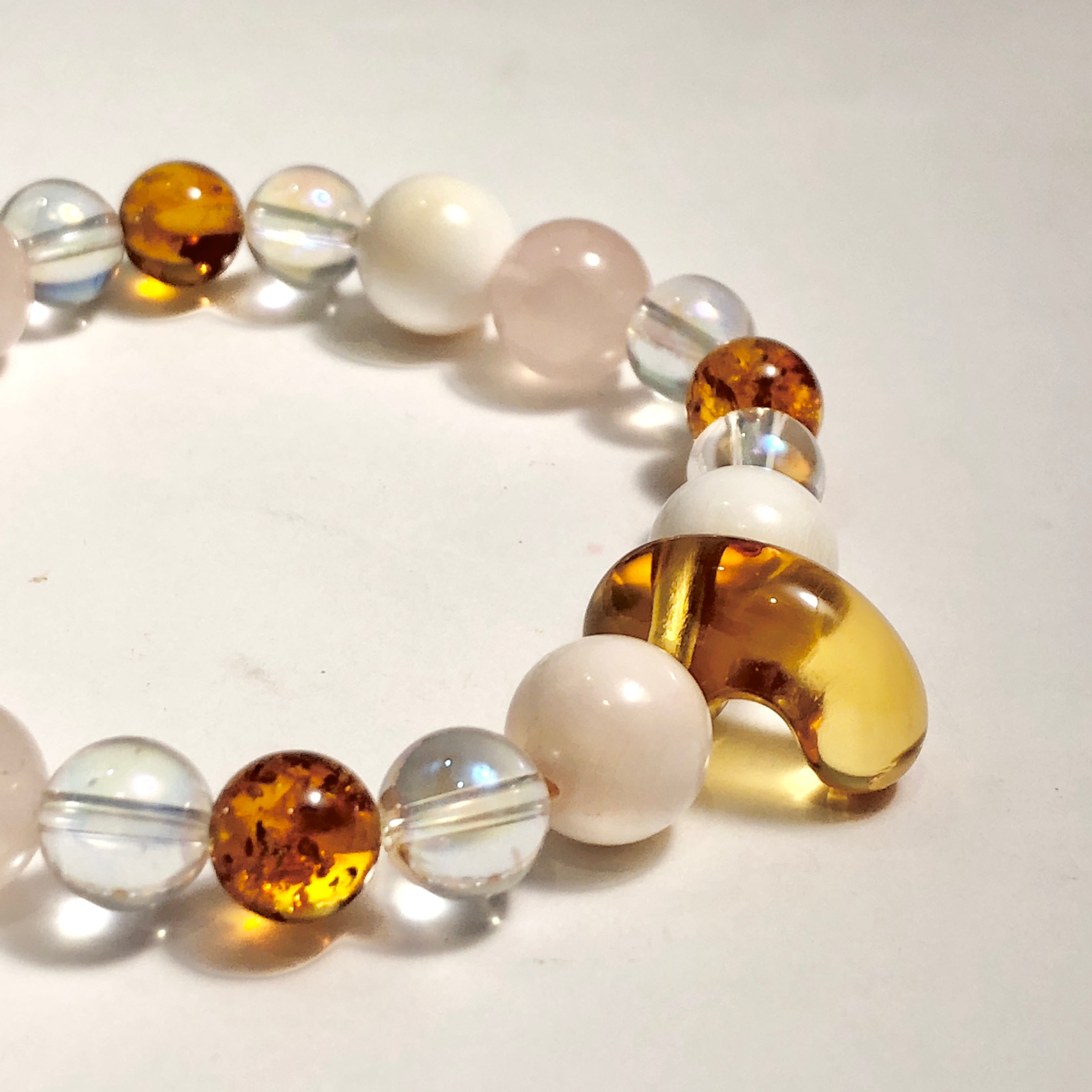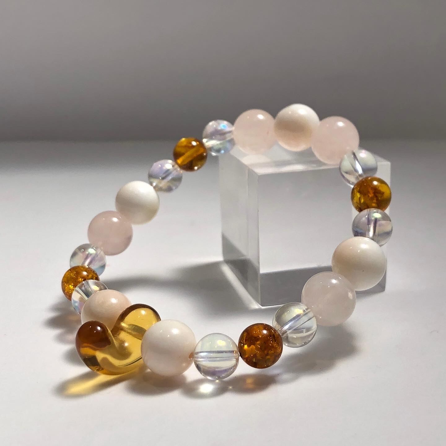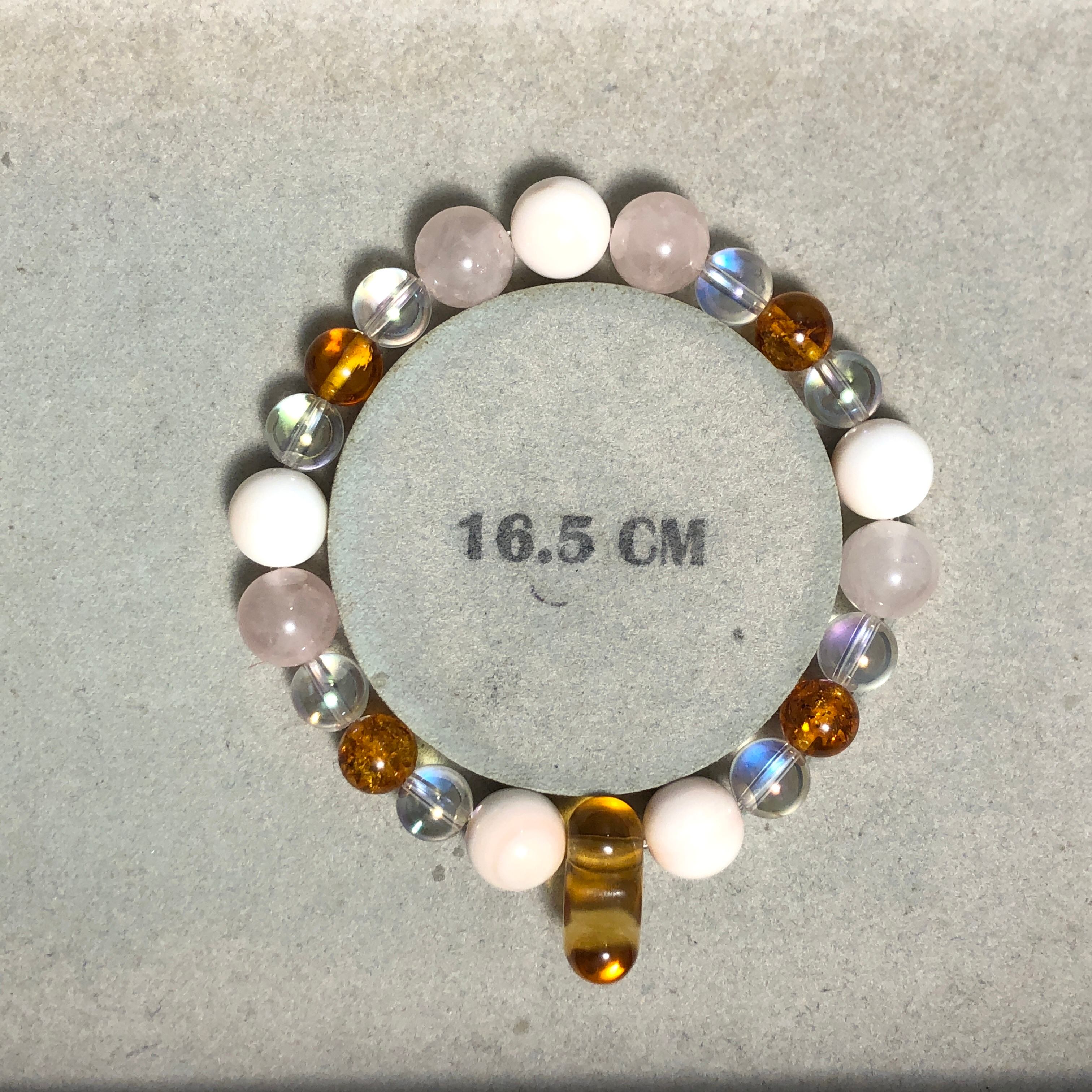 ■使用している石 シトリン(勾玉)、クィーンコンクシェル、ローズクォーツ、アンバー、ホワイトオーロラクォーツ