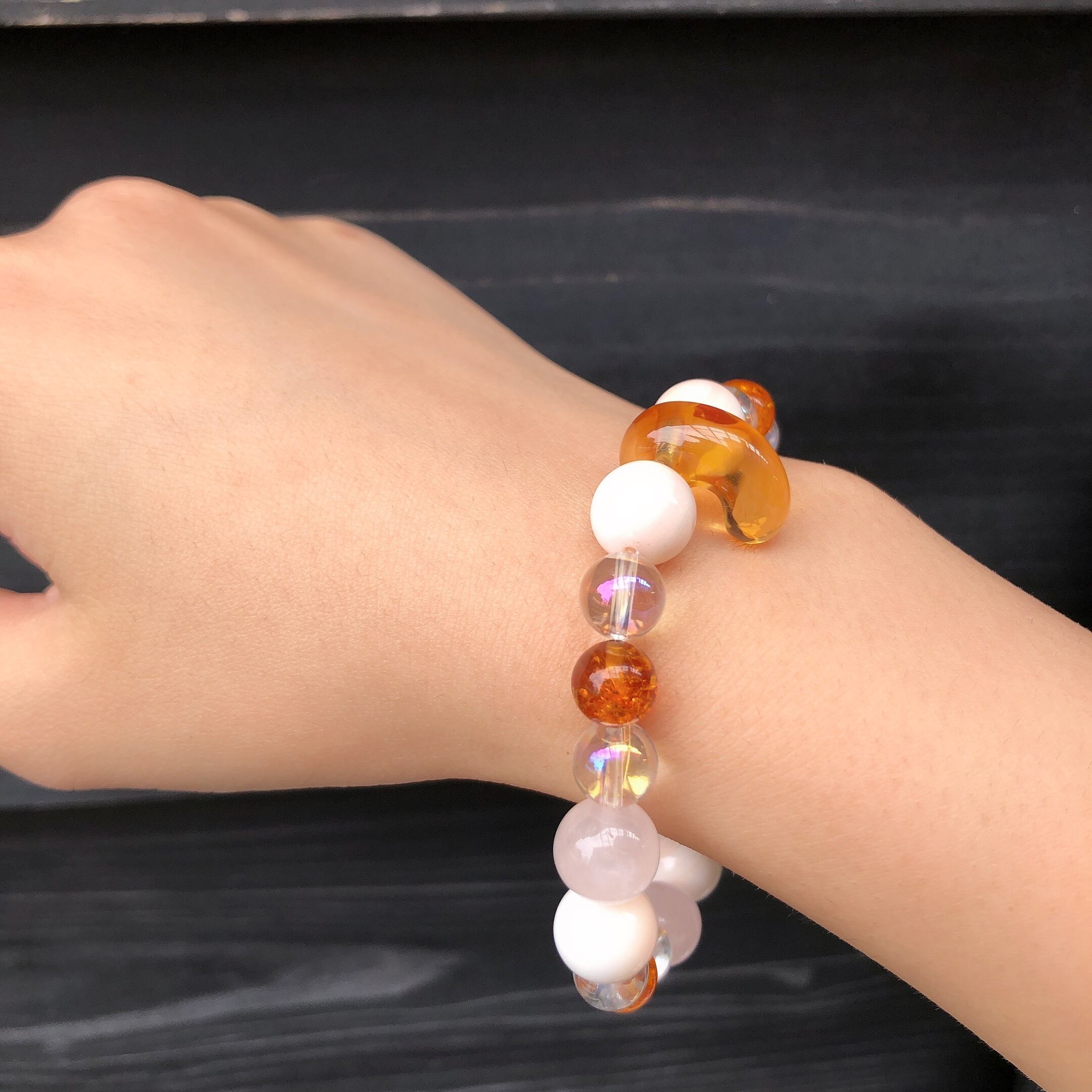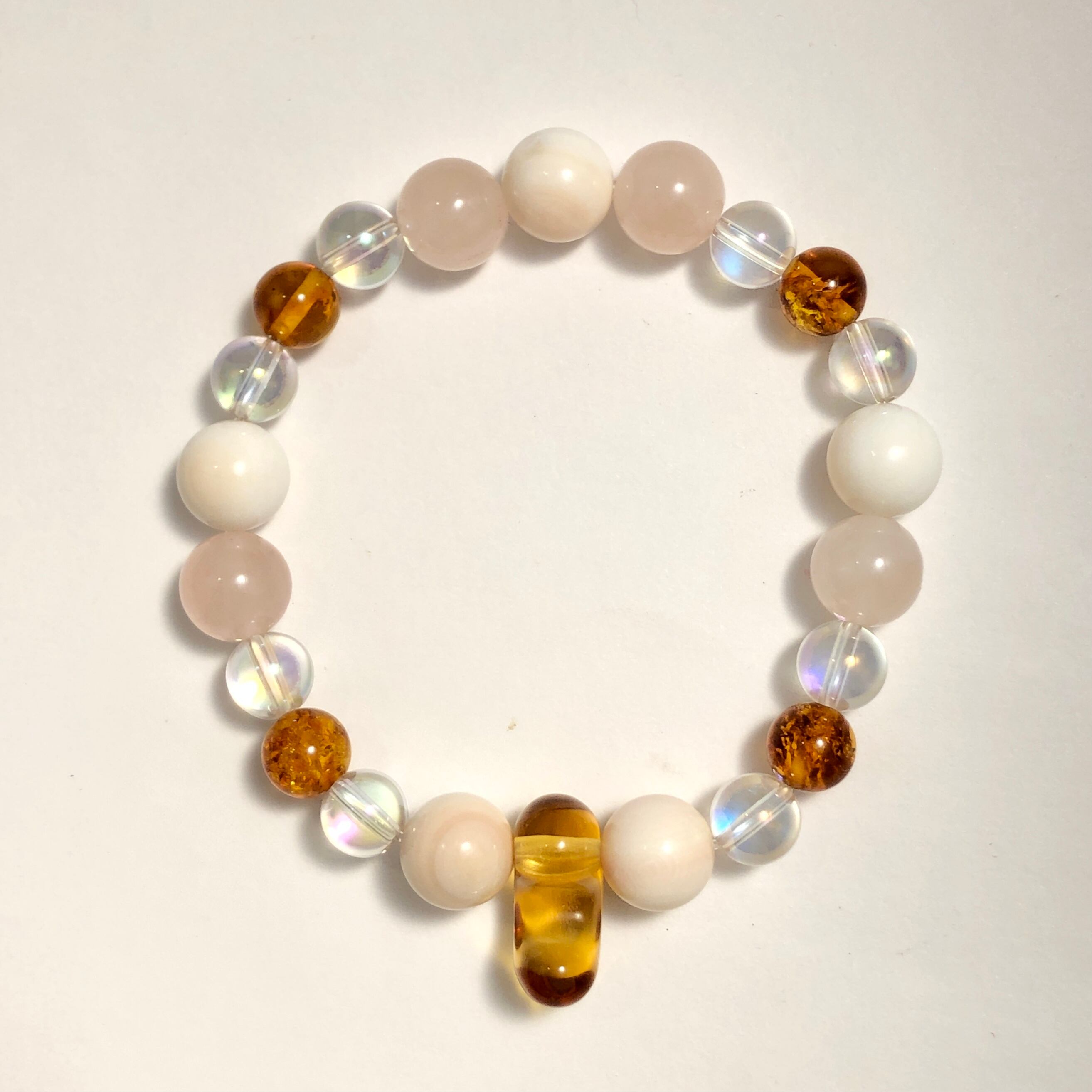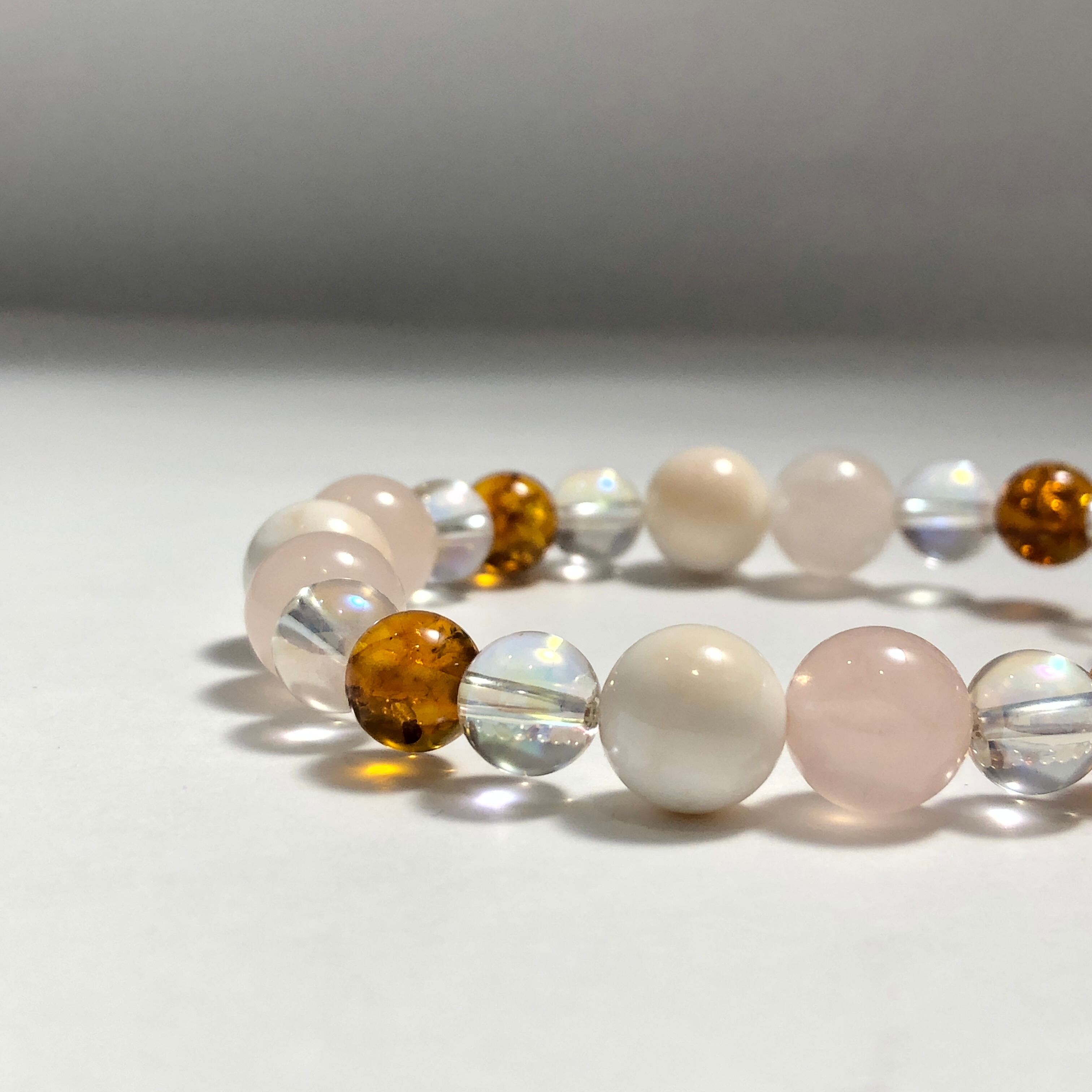 ■使用している石 シトリン(勾玉)、クィーンコンクシェル、ローズクォーツ、アンバー、ホワイトオーロラクォーツ