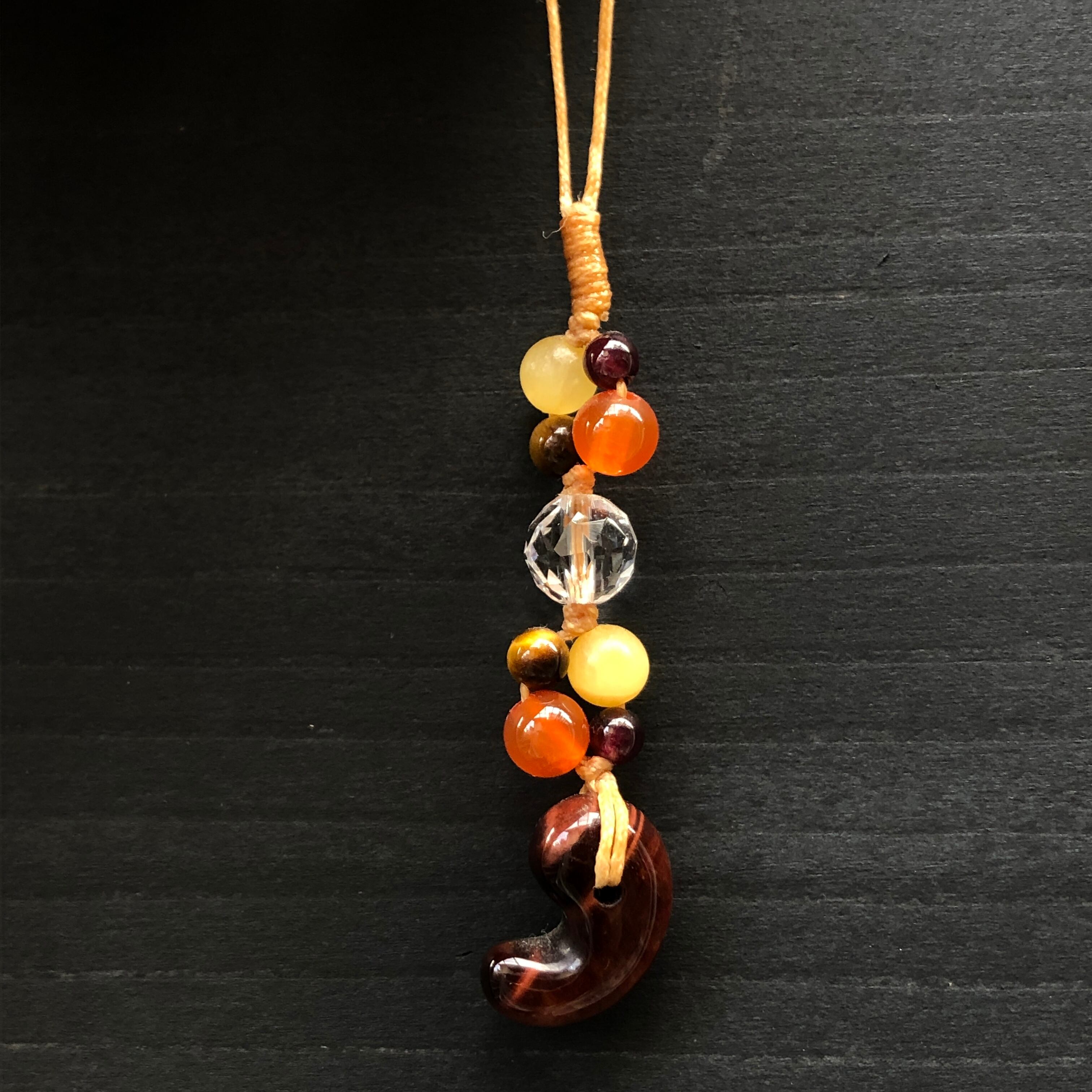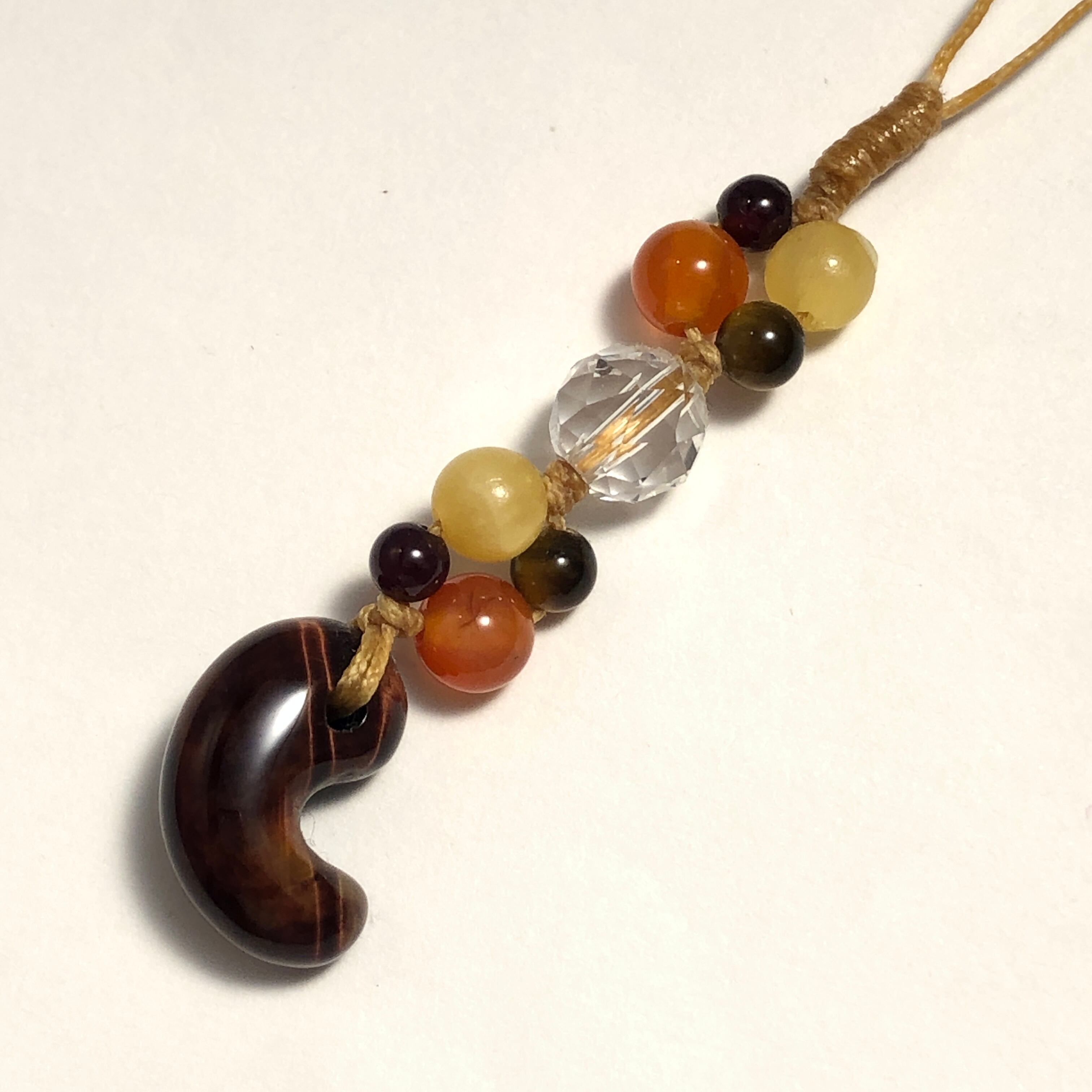レッドタイガーアイ(勾玉)、カーネリアン、タイガーアイ、アラゴナイト、ガーネット、水晶