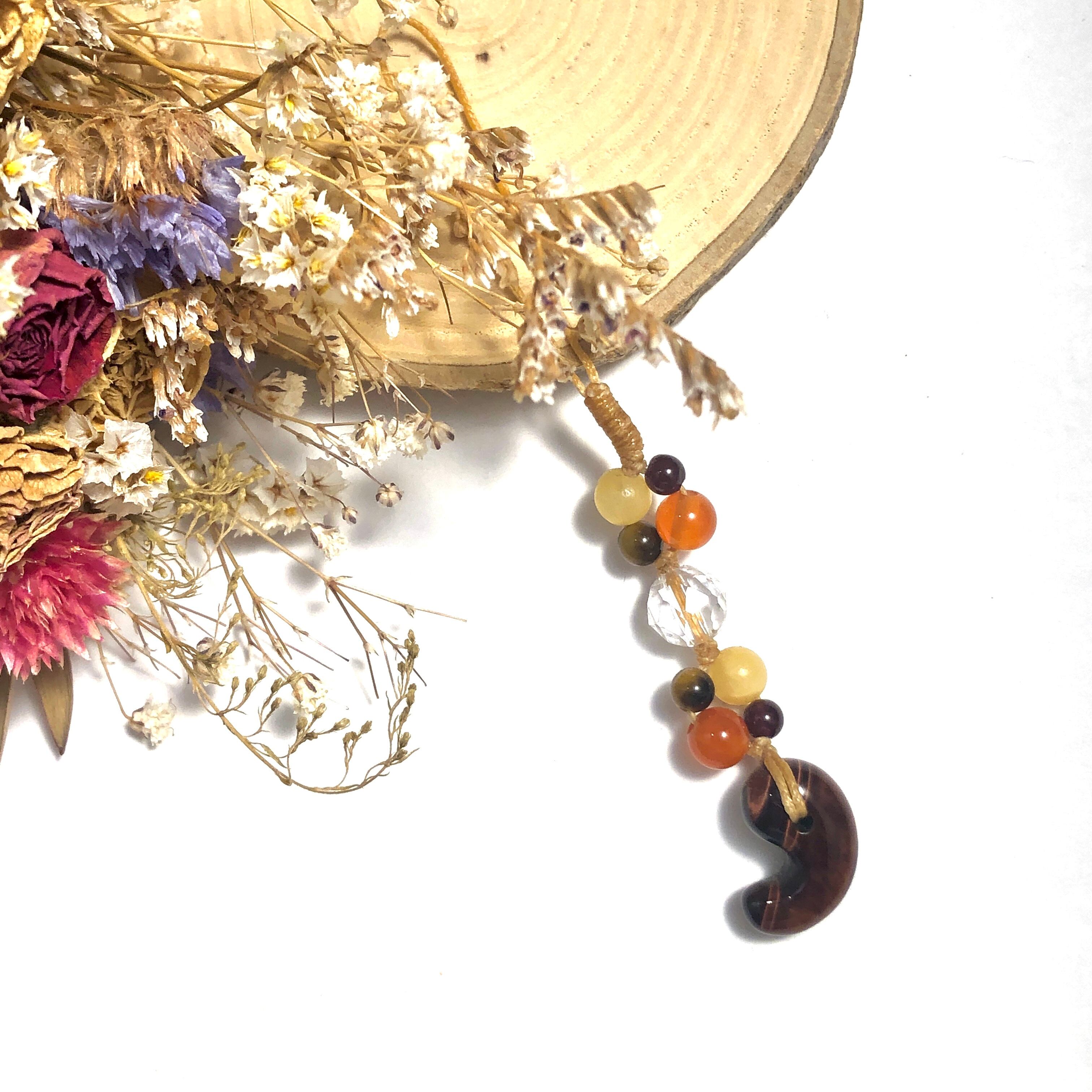そんな勾玉と様々な天然石を組み合わせた、当店スタッフ手作りのストラップとなっております!