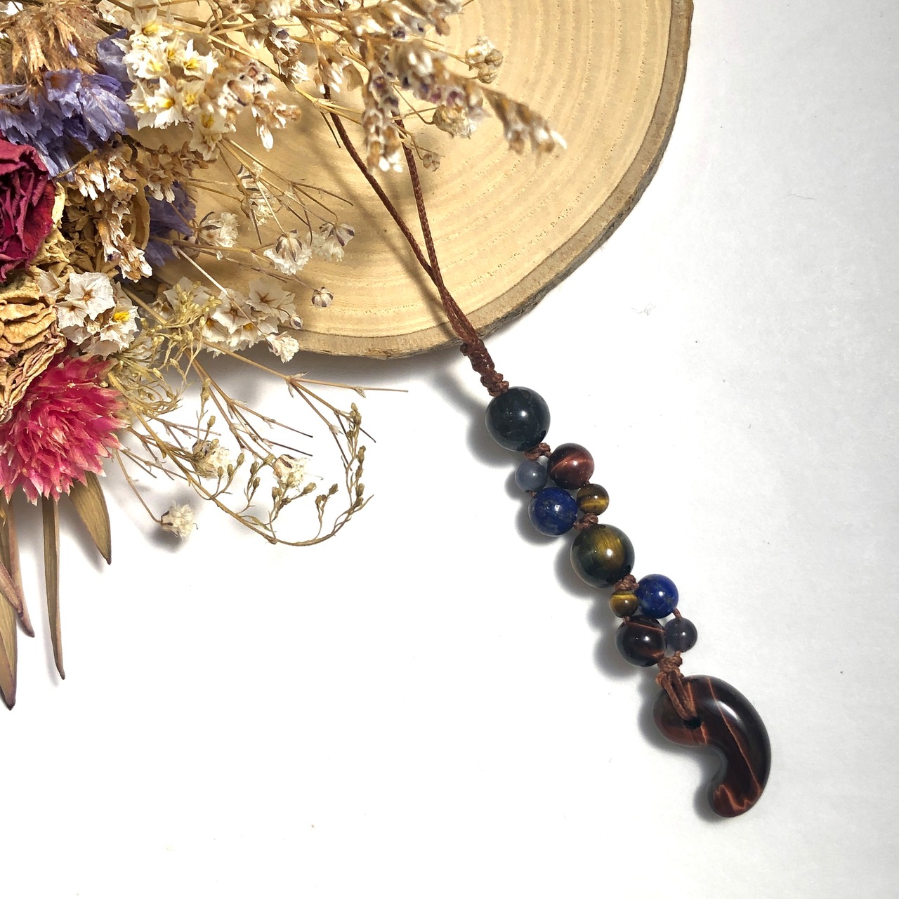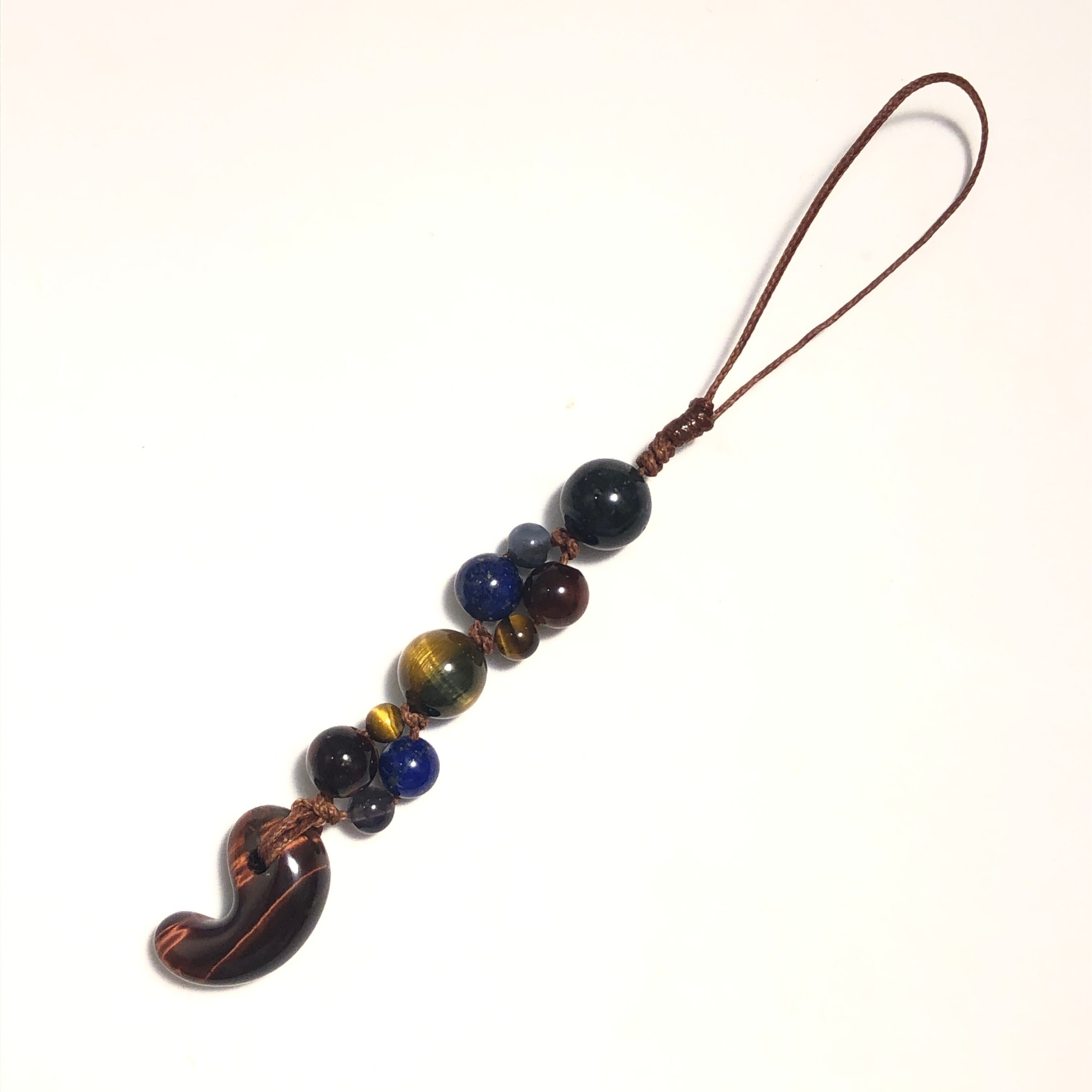 レッドタイガーアイ(勾玉)、スレイマンアゲート、ファルコンタイガー、タイガーアイ、ラピスラズリ、レッドタイガーアイ、アイオライト