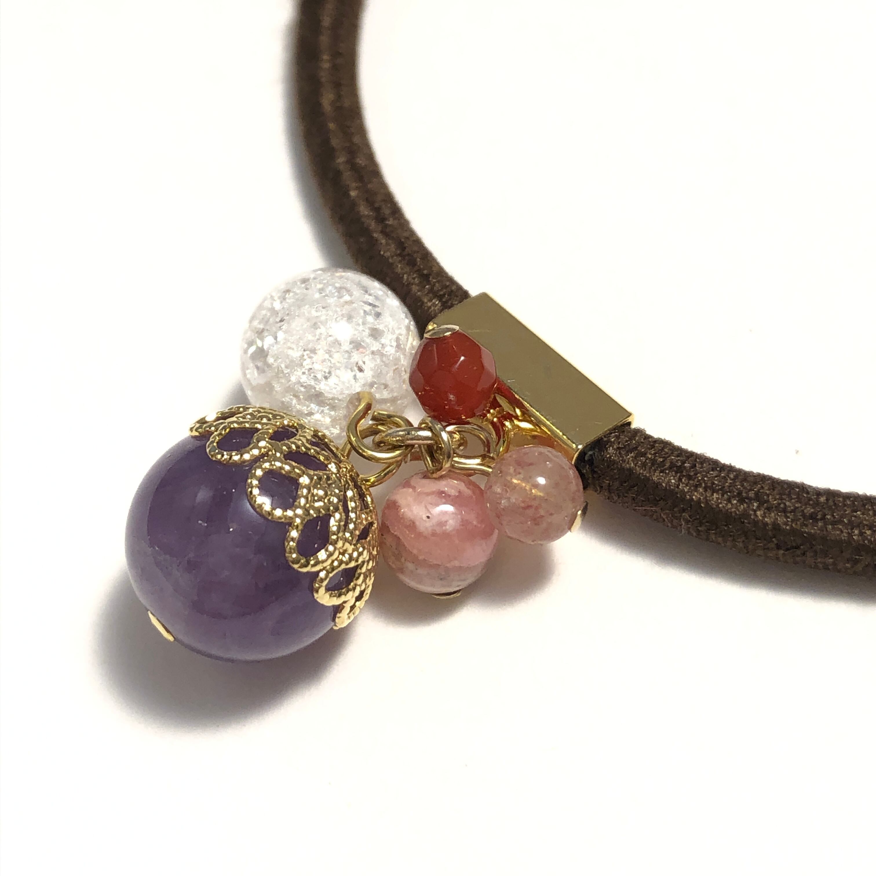 こちらのヘアゴムは大きめのアメジストをはじめ、