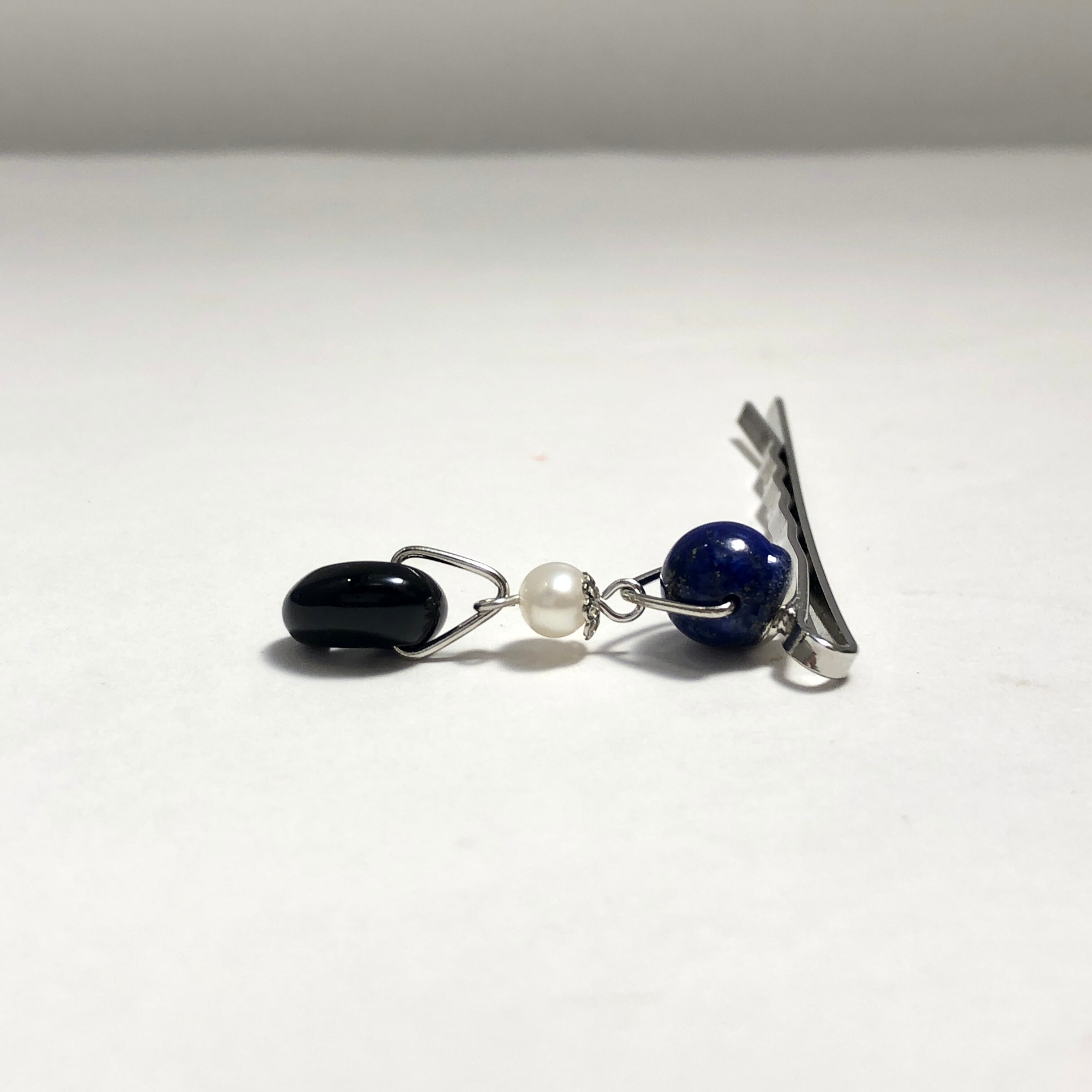 魔除けの意味を持つ天然石を組み合わせたヘアピンとなっております♪