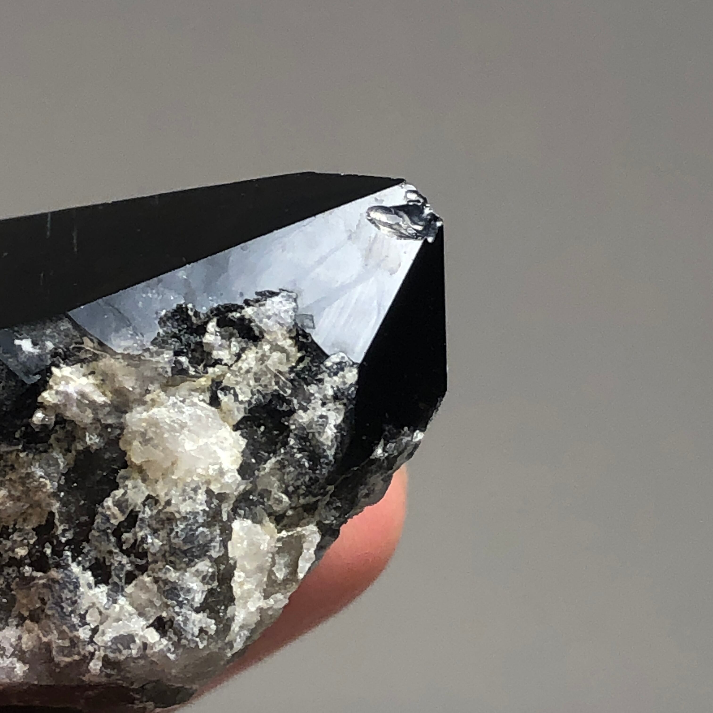 モリオンとは、微量のアルミニウムを含む水晶が自然の放射線で真っ黒に変色していったものです。