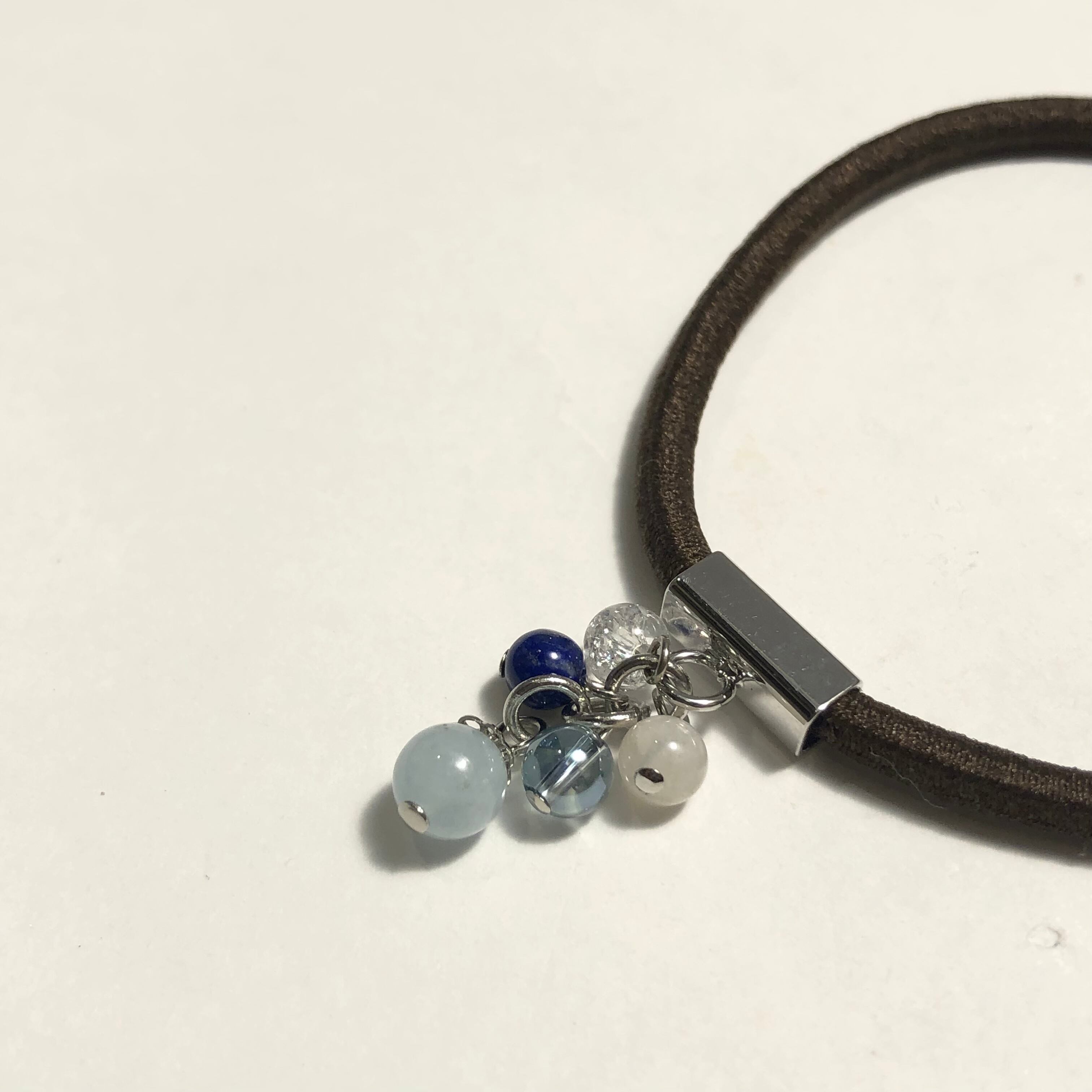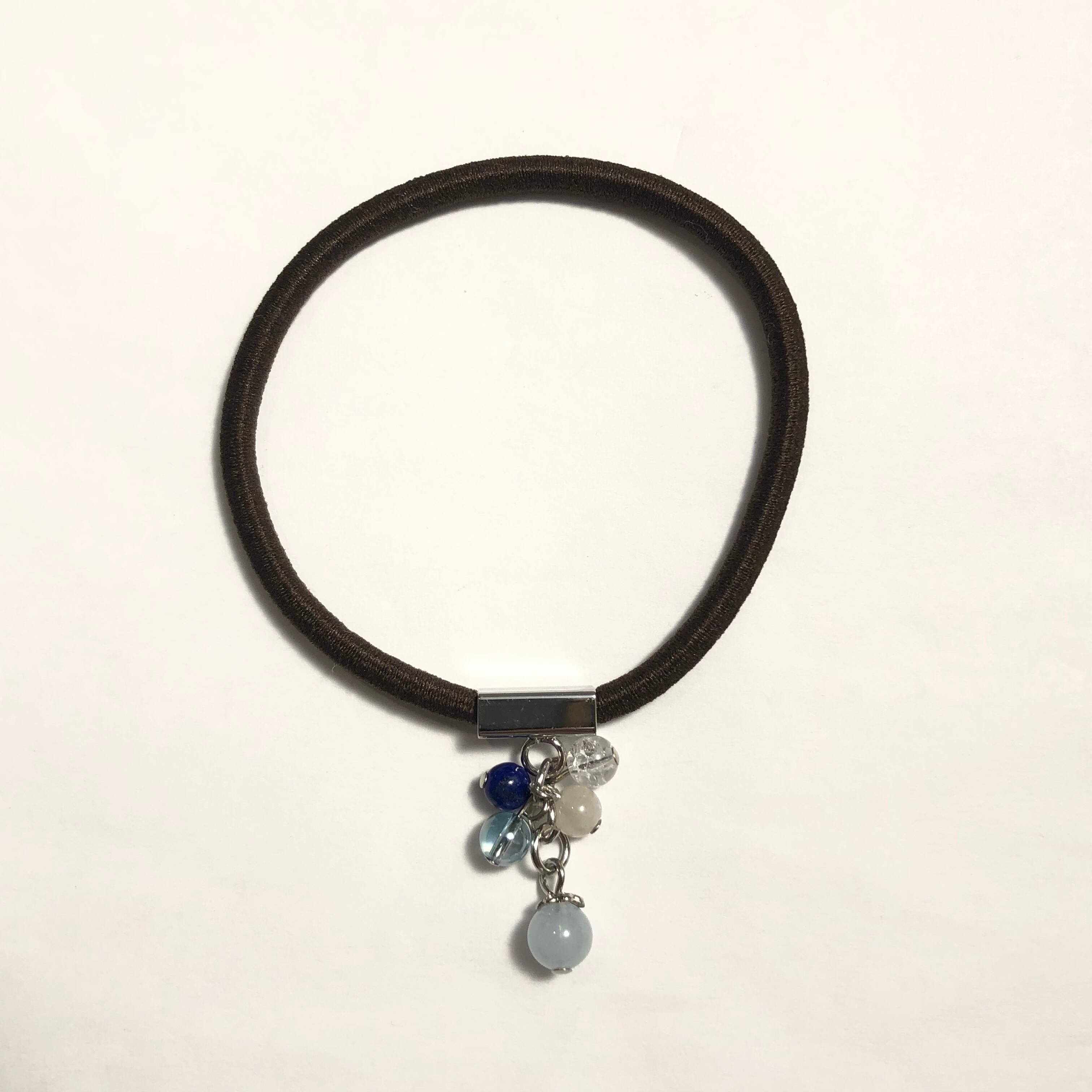 こちらは3月の誕生石を使ったヘアゴムです。
