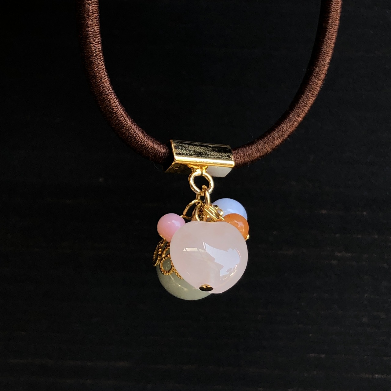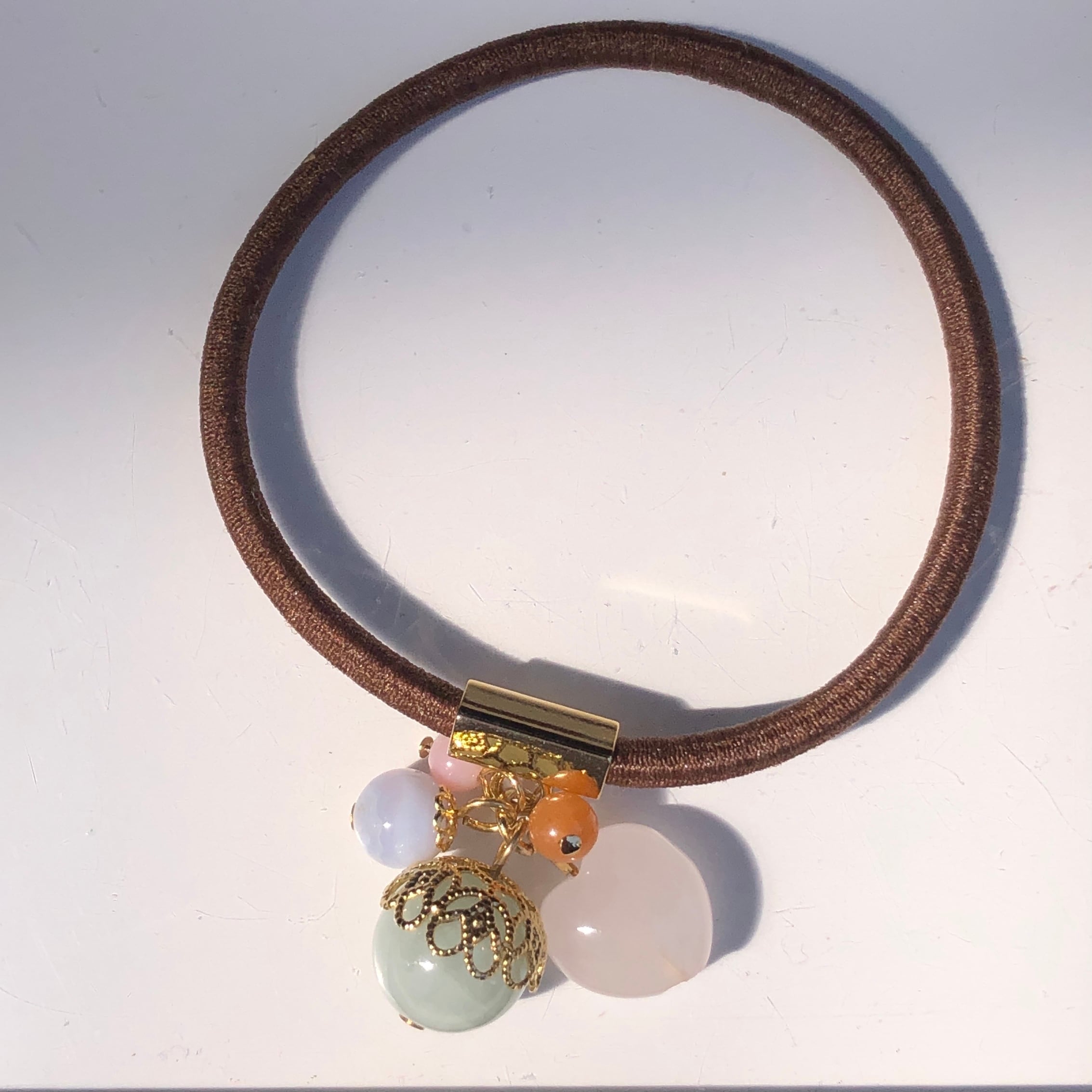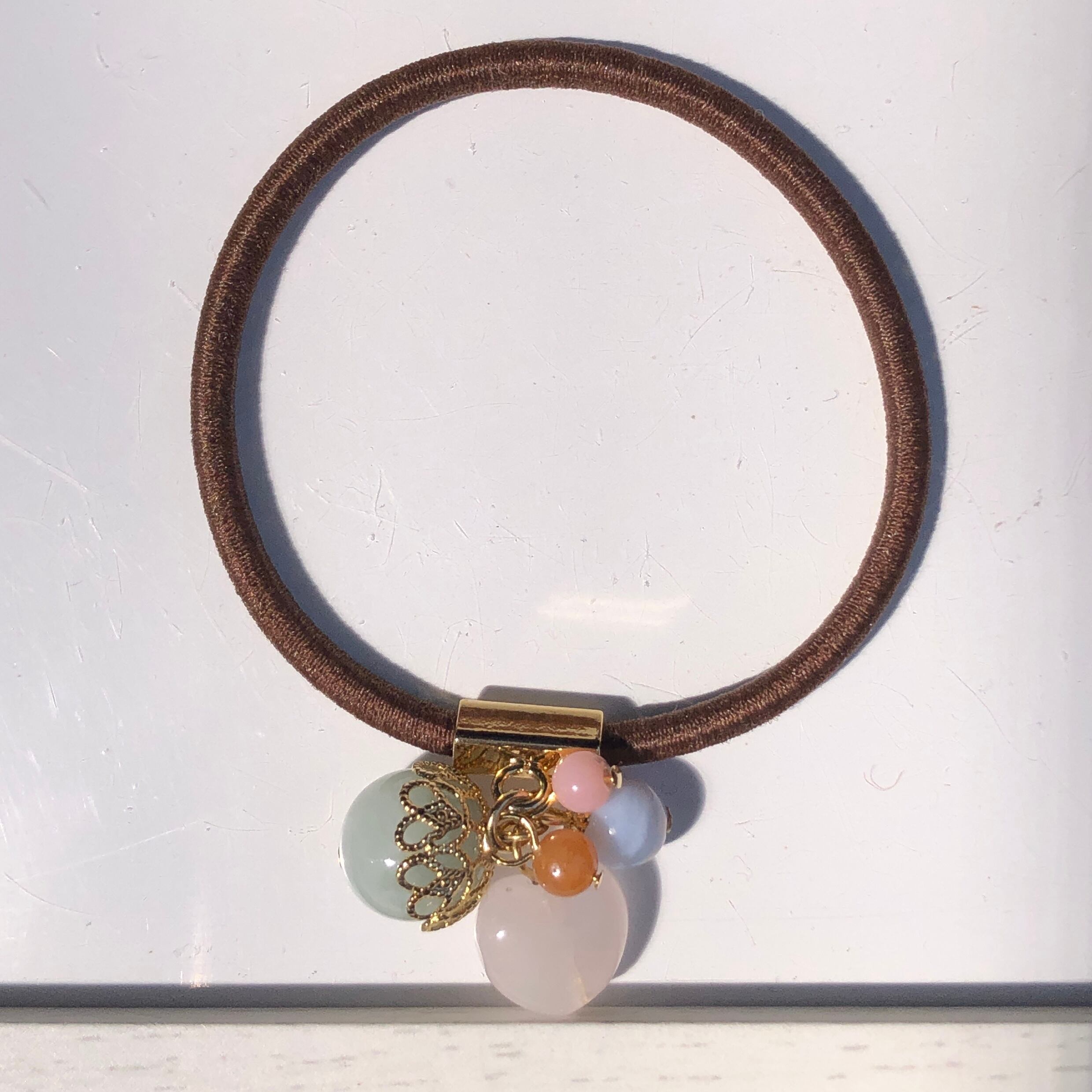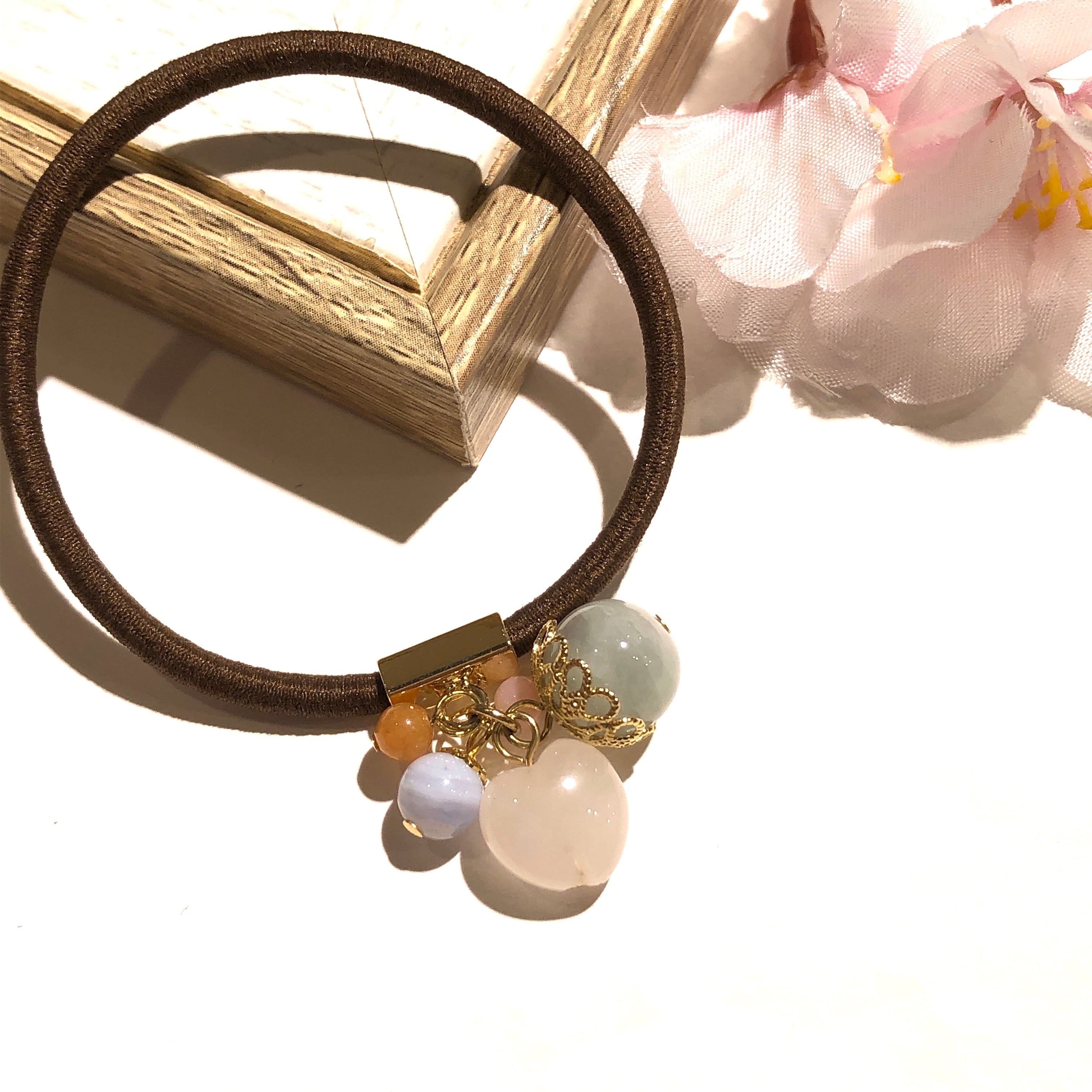 ローズクォーツのハートが付いた可愛い天然石ヘアゴムです♡